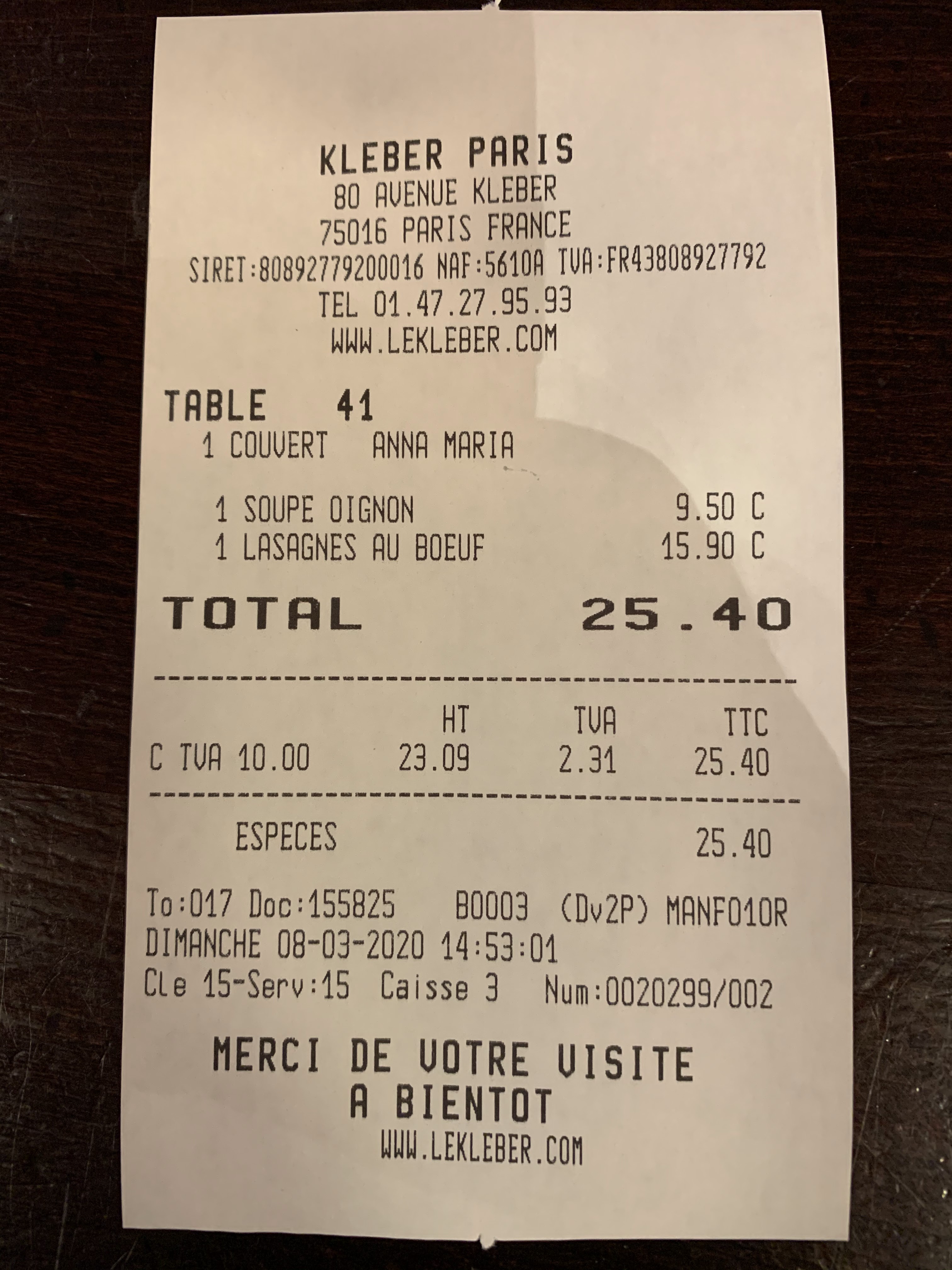 Nouvelle sur paris, je suis venue manger avec quelques copines au Kleber, nous n’avons pas été déçues : grosses portions, niveau qualité /prix top… ce que j’ai préféré, c'est l’accueil, le staff est super sympathique, en particulier Théo qui nous a fait quelques blagues et nous as donné quelques idées à faire sur Paris ! Je recommande