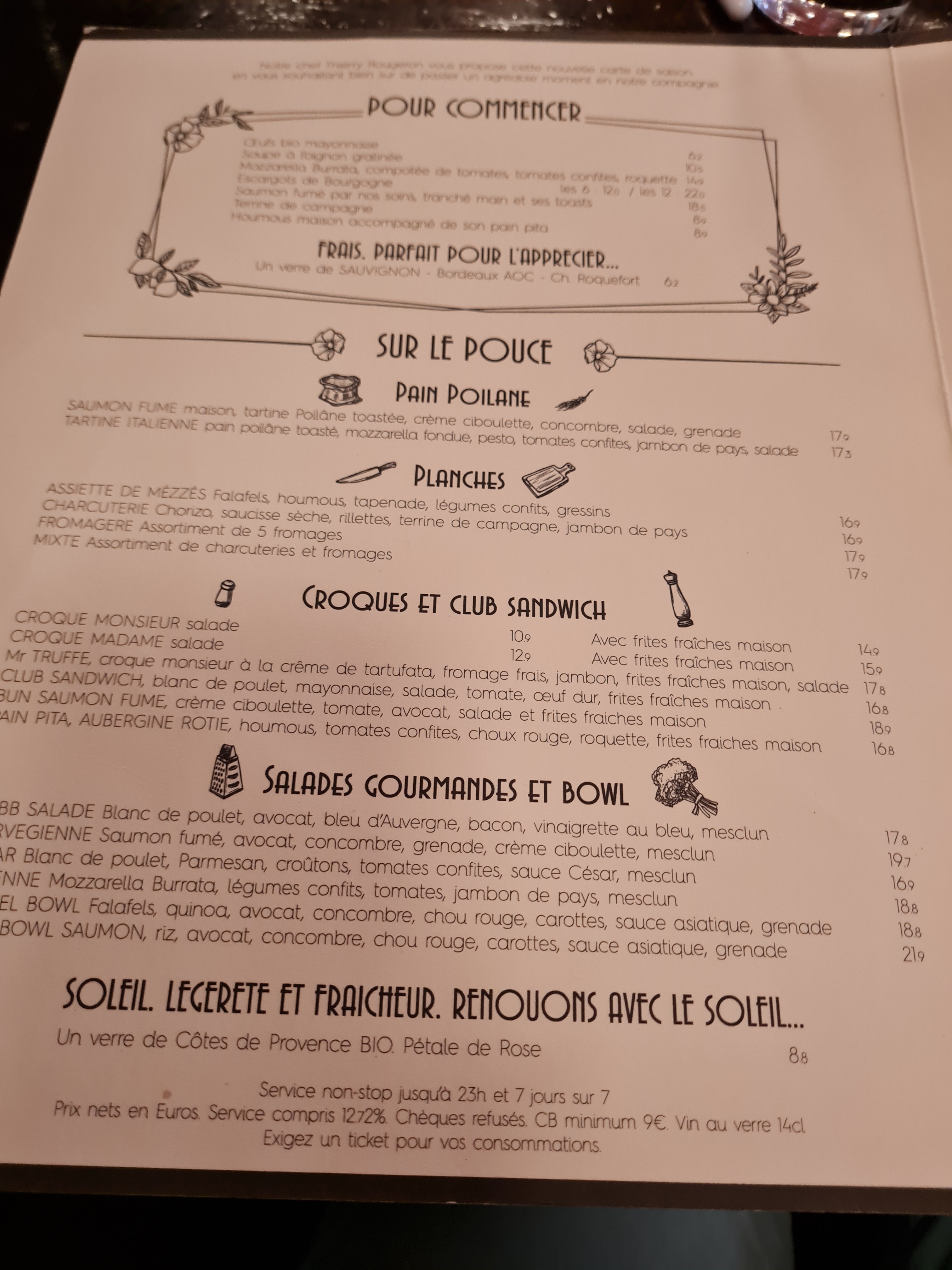 Nous avons déjeuné ce midi, accueil inexistant, c’est à peine si on derange, les salades ne sont pas garnies pour 17€ c’est juste du vol. Mon amie a pris une salade Cesar, et moi la salade avec du poulpe et du thon… il devait y avoir en tout 2 morceau de poulpe d’environ 2 cm chacun, et un morceau de thon ( plutot de la bonite selon moi) qui était à moitié snacké ou bouillie.., des morceaux de mozzarella et calamar. Bref, nous n’y retournerons pas.