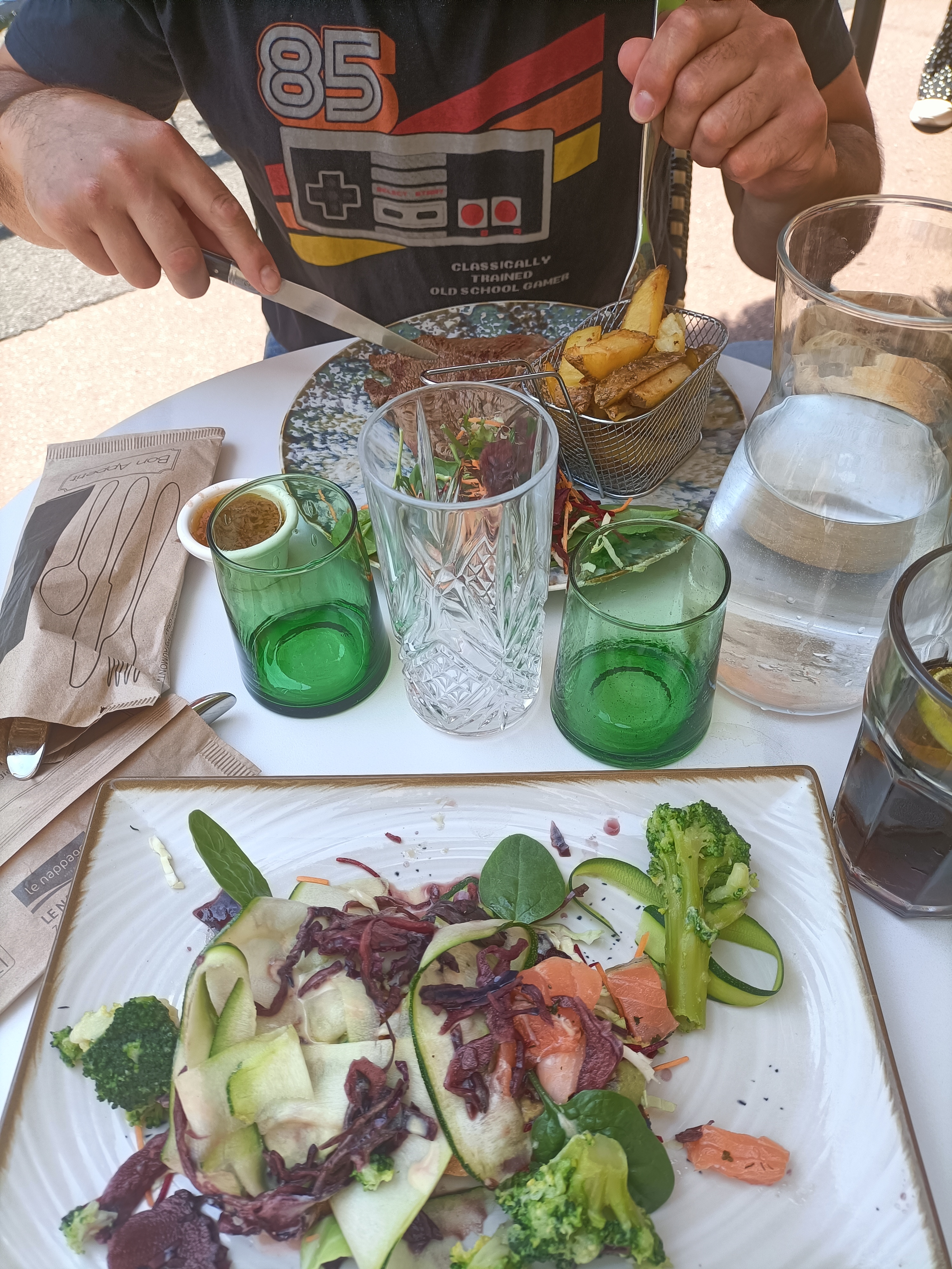 Rien a redire, et c'est plutôt rare de nos jours ! lieu et ambiance idéal, équipe agréable, souriante et sympathique, et la carte...n'en parlons pas...on ne sait que choisir, tout donne envie, plats atypiques et cela fait plaisir de ne pas retrouver la même chose qu'ailleurs, produits frais, bien présenté, quantité parfaite (rien ne sert d'en avoir trop, les gens gaspillent) service rapide (pour une table de 4 un midi en terrasse) je recommande les yeux fermés, j'y retourne dès que possible