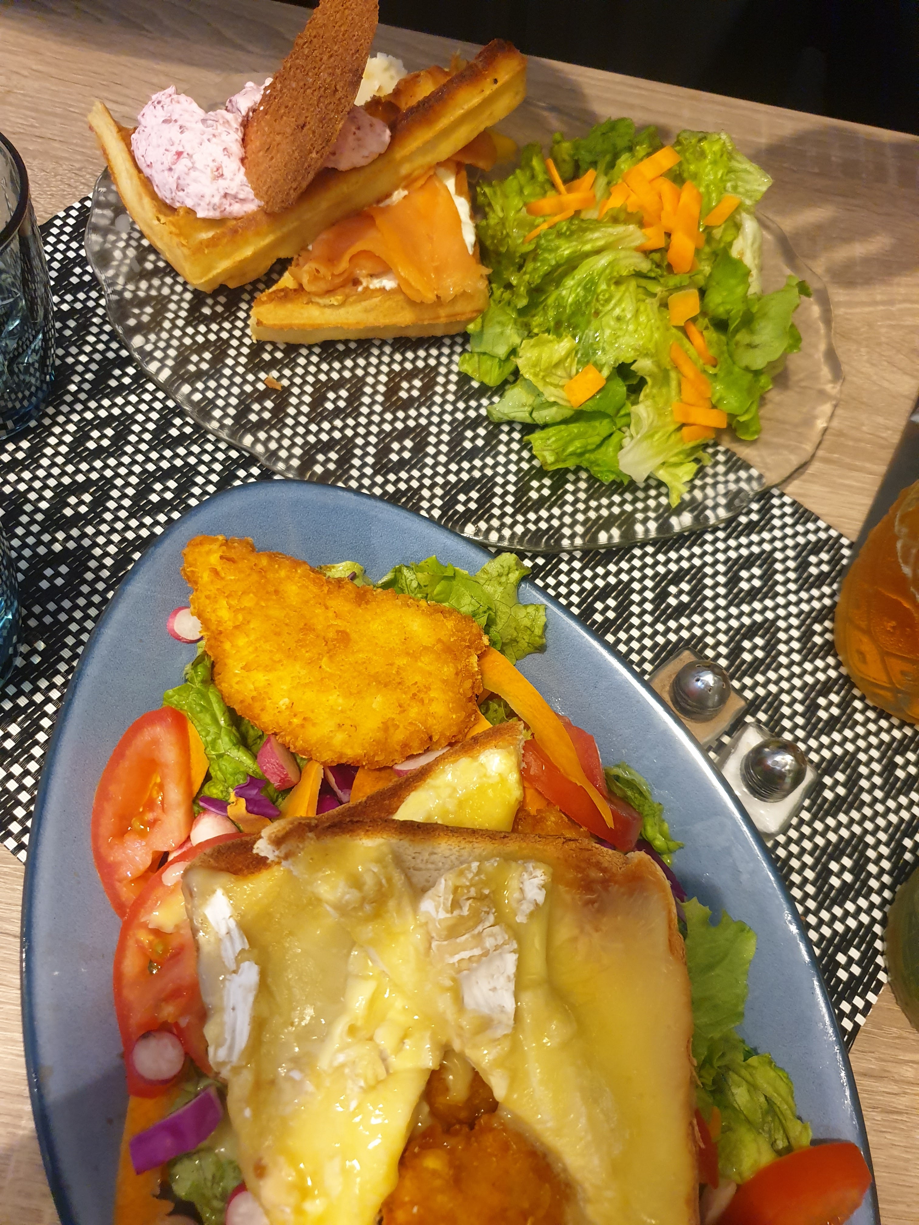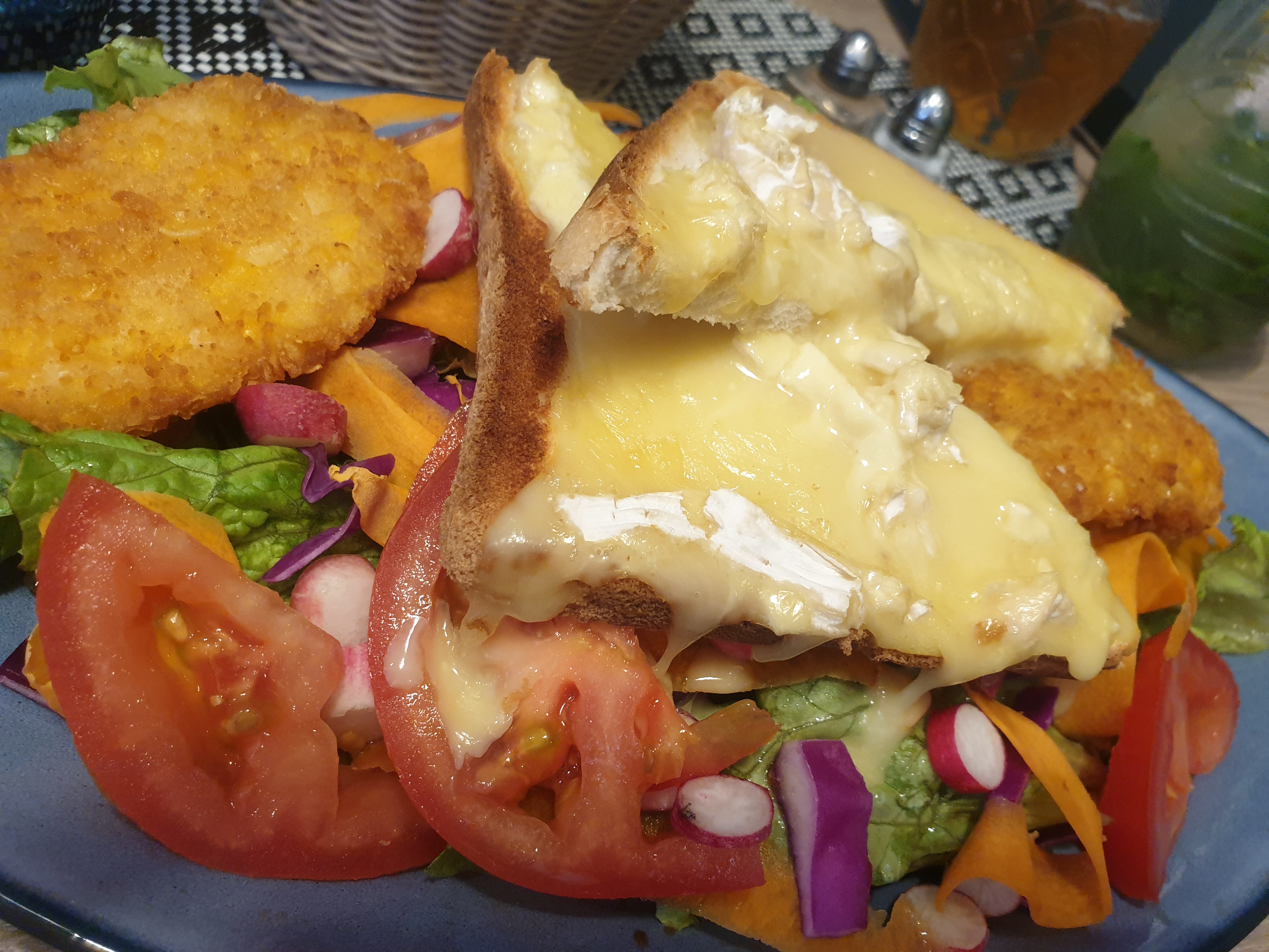 Accueil, cadre et service agréables. Très déçu de la tartine... Prix excessif au vue de la qualité et quantité. Par contre le poulet pané cajun était bon.