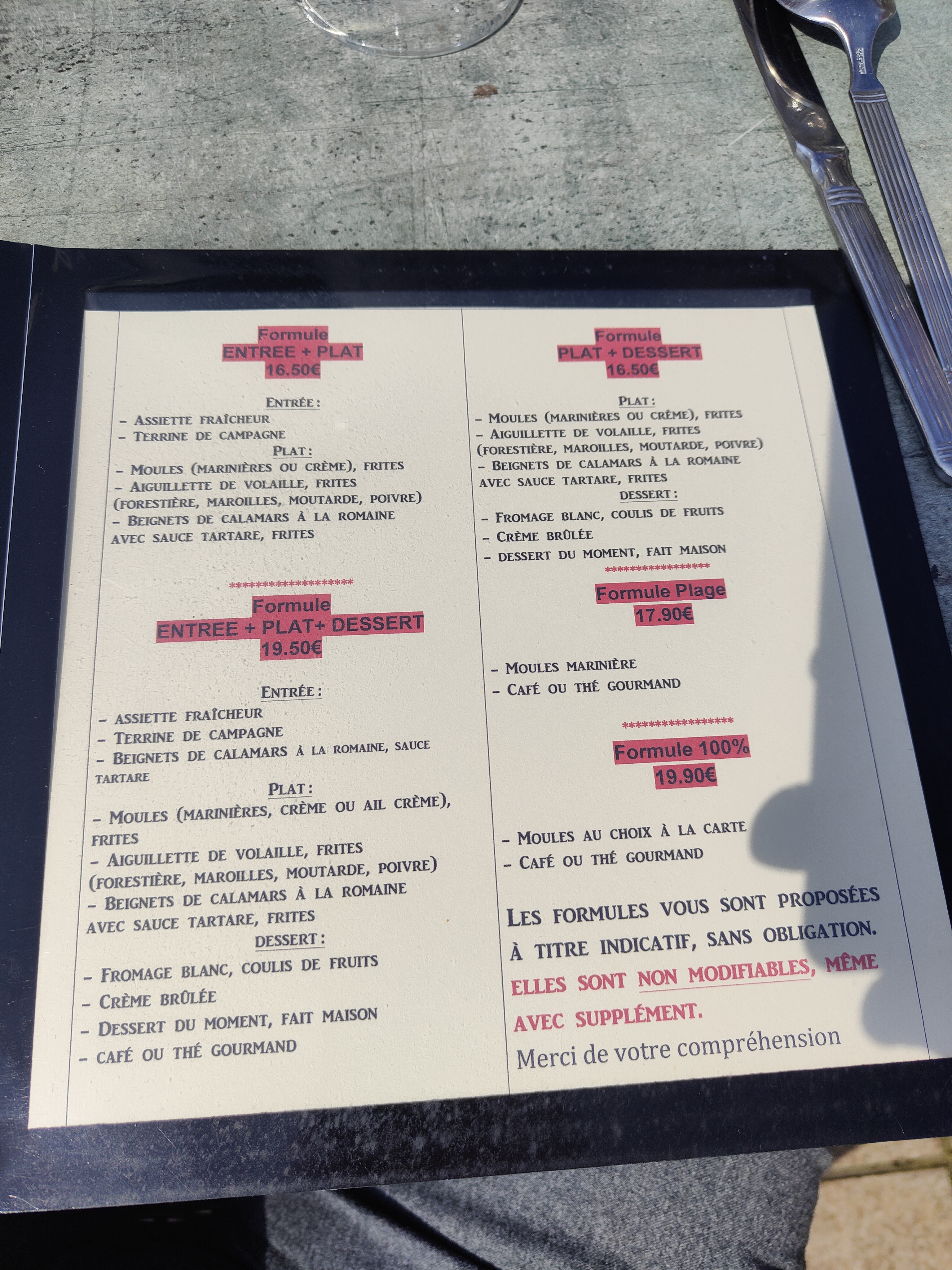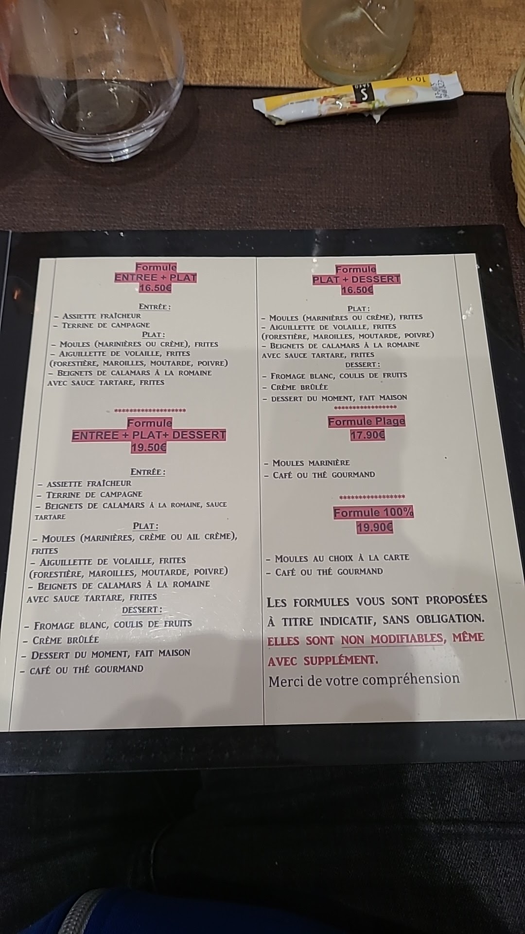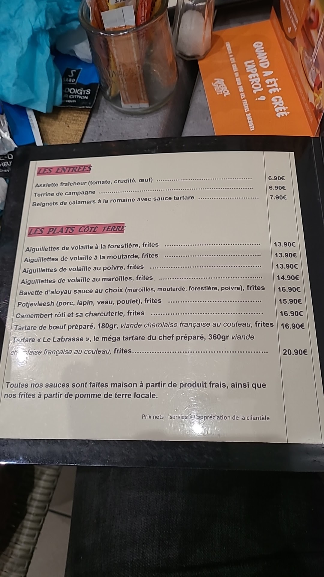 Rapport qualité prix parfait. Les moules étaient délicieuse et copieuse. Je recommande