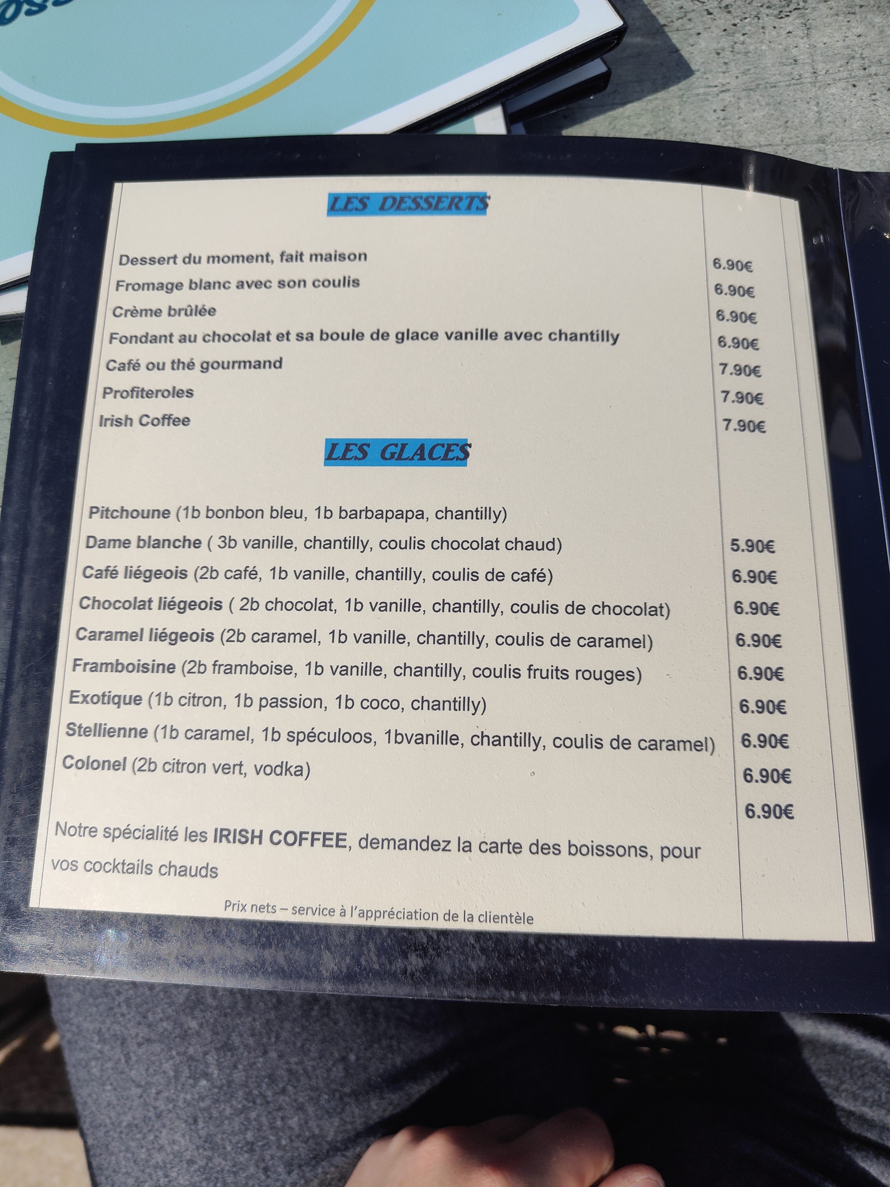 Moules très savoureuses, excellentes, rarement consommées ainsi. Frites ,Desserts tout aussi bons et des Irish superbes! Bravo. Adresse à retenir!!!