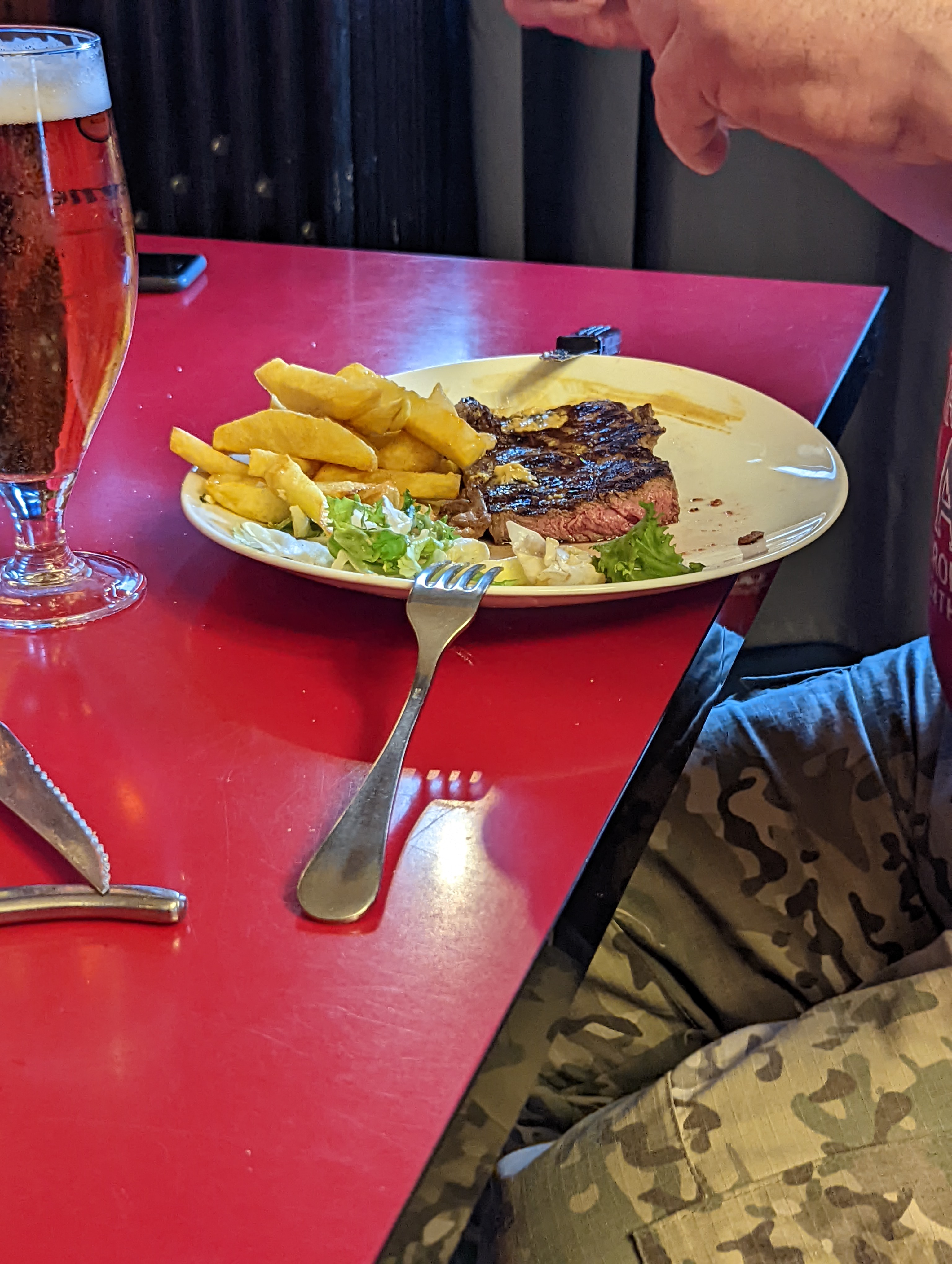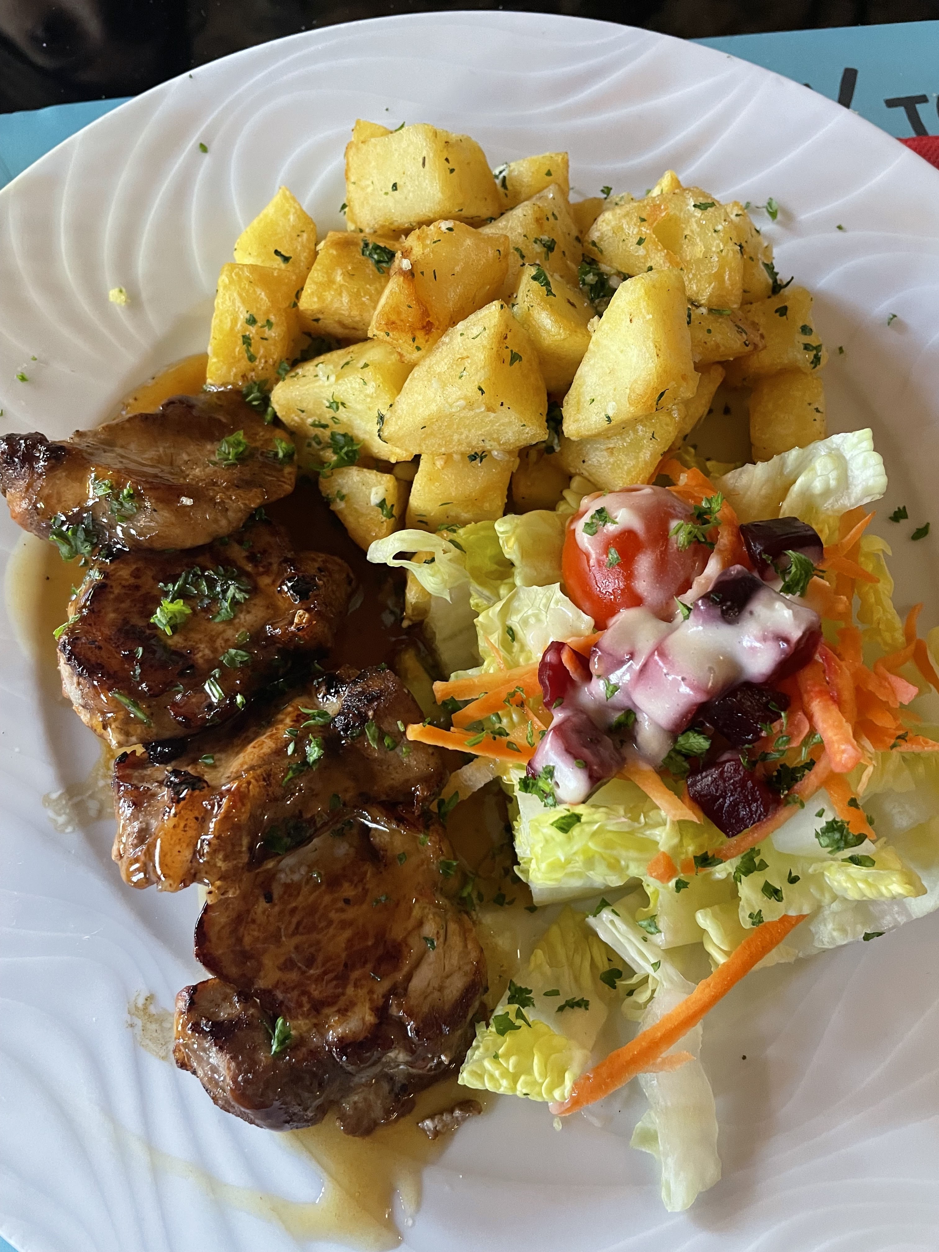 Nous nous sommes promenés dans cet endroit et avons pris un merveilleux déjeuner, le menu est un tableau donc changé tous les jours, nous avons mangé un steak & chips et une pizza, qui était délicieuse et le service était excellent, le personnel était très sympathique. La qualité de la nourriture était vraiment bonne et le prix du repas avec boissons était très raisonnable. Hautement recommandé.
