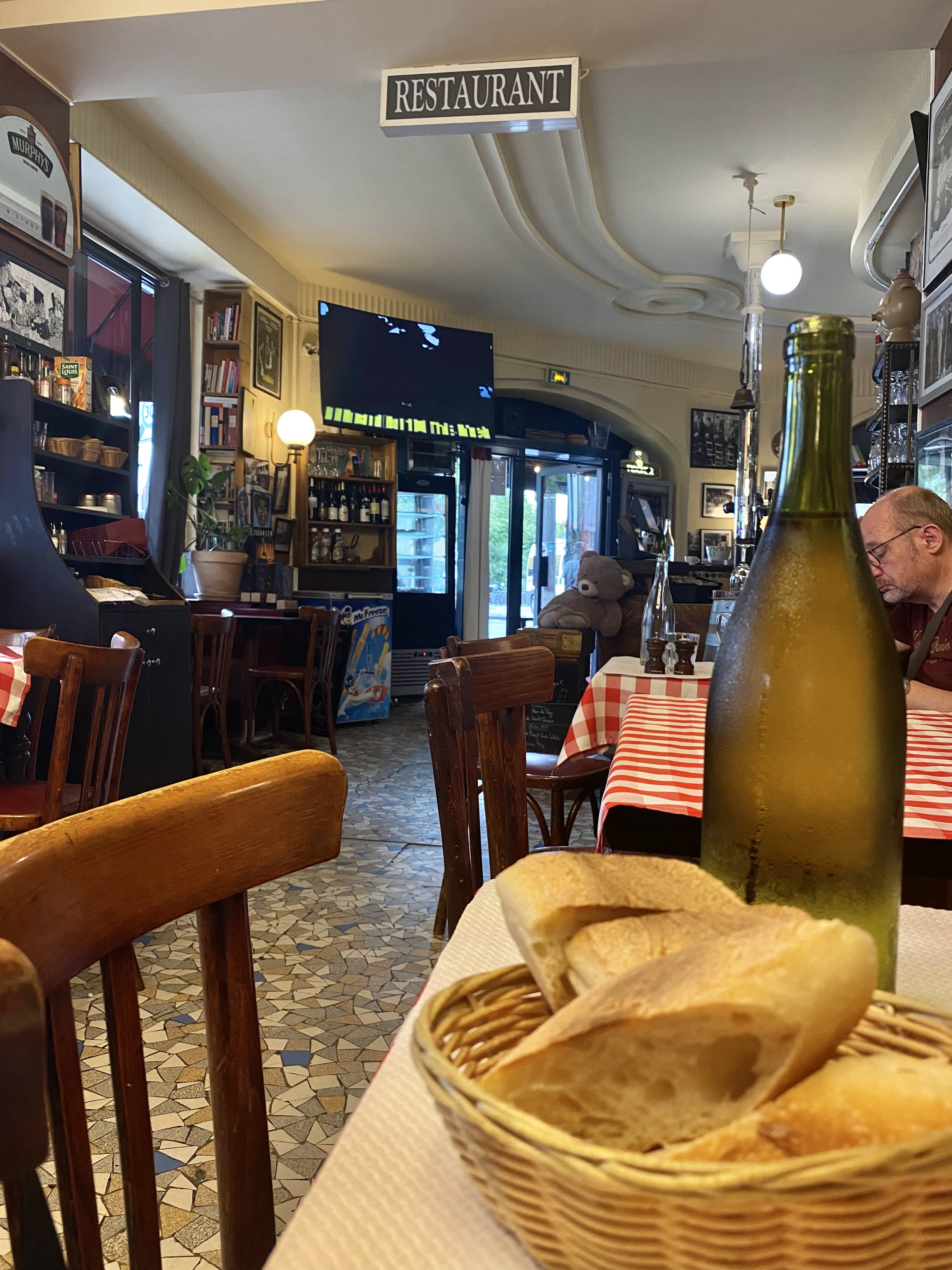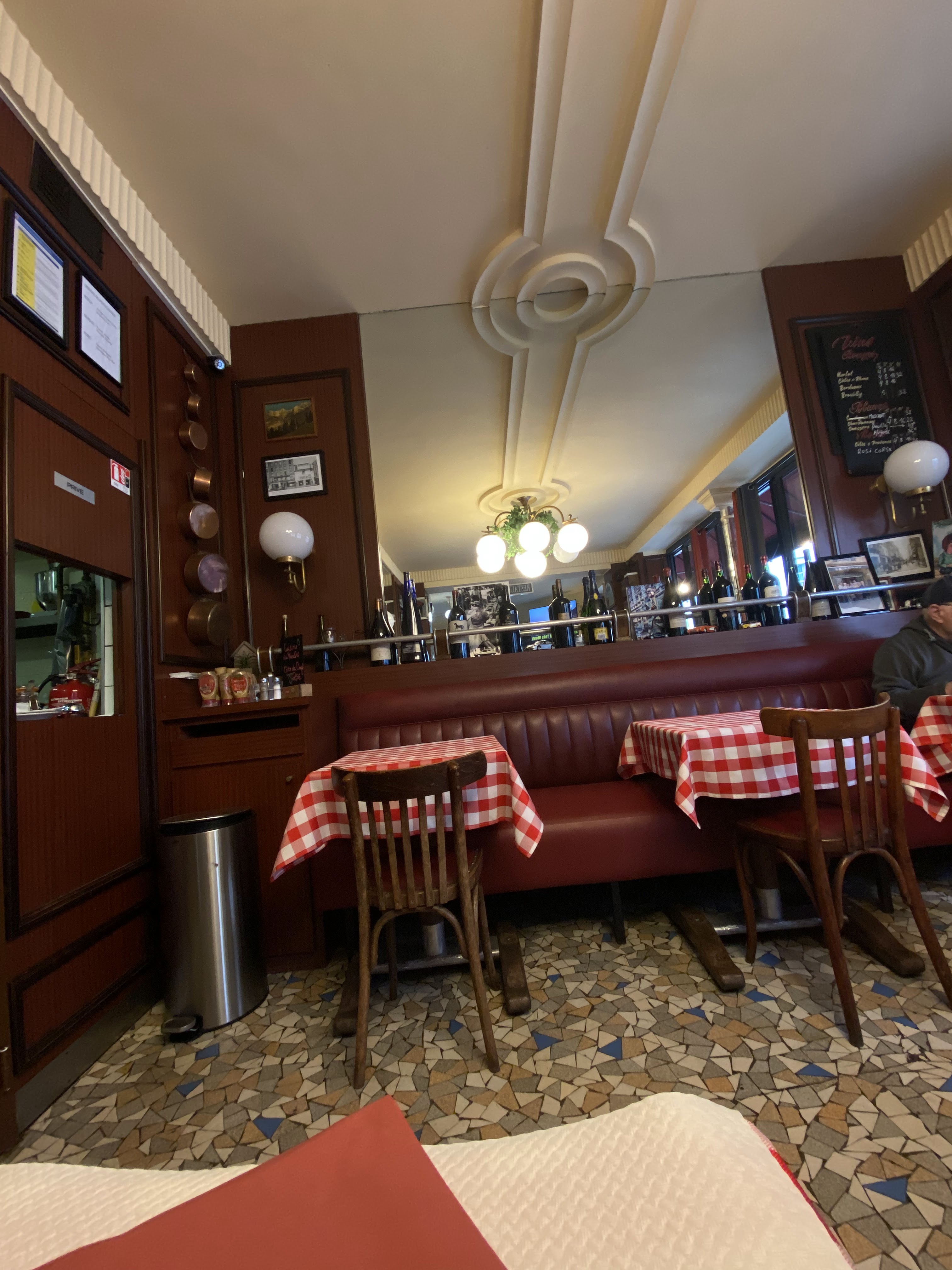 soutien-gorge incroyablement charmant et confortable avec une cuisine délicieuse et une atmosphère décontractée. Je suis venu déjeuner avec ma mère, un peu en décalage horaire et avec très peu de français dans notre vocabulaire. Heureusement, les employés du Lagny ont été très patients avec nous, ont réussi à comprendre mon français atroce et nous ont accueillis avec leur nourriture et leur service merveilleux, ce qui était tout simplement parfait pour deux nouveaux visiteurs à Paris. essayez le confit de canard et dégustez une coupe de champagne ici, et vous vous sentirez comme chez vous. De plus, il y avait là un homme plus âgé qui travaillait dans la cuisine et qui semblait prendre les devants - il ne pouvait pas dire s'il était le chef ou le propriétaire ou les deux - mais, même si nous ne pouvions pas communiquer dans une langue commune, il était tellement serviable et gentil, il nous a sorti ces grands menus et les a posés sur des chaises à côté de nous, et il était tout simplement merveilleux et avait clairement une attitude très sympathique avec les clients francophones là-bas ! J'aimerais seulement pouvoir emporter cet endroit avec moi à Philadelphie… whomp whomp.