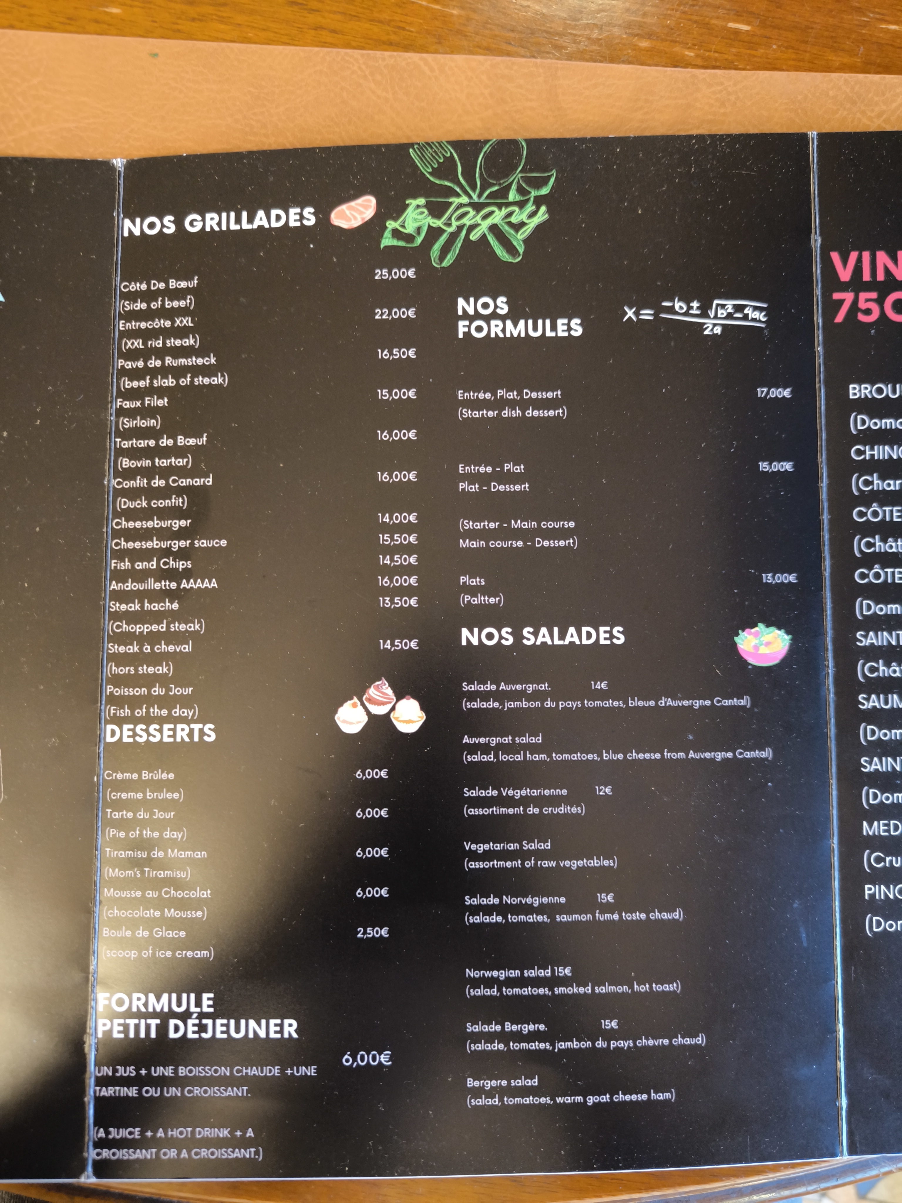 Déjeuner ce midi avec ma fille. Soupe délicieuse. Navarin d’agneau à tomber et que dire de la mousse au chocolat… un régal. Service chaleureux et agréable. Cuisine délicieuse dans un cadre nappe à carreaux. Le top. Merci pour cet agréable moment. Nous reviendrons avec ma fille (votre voisine 😉)