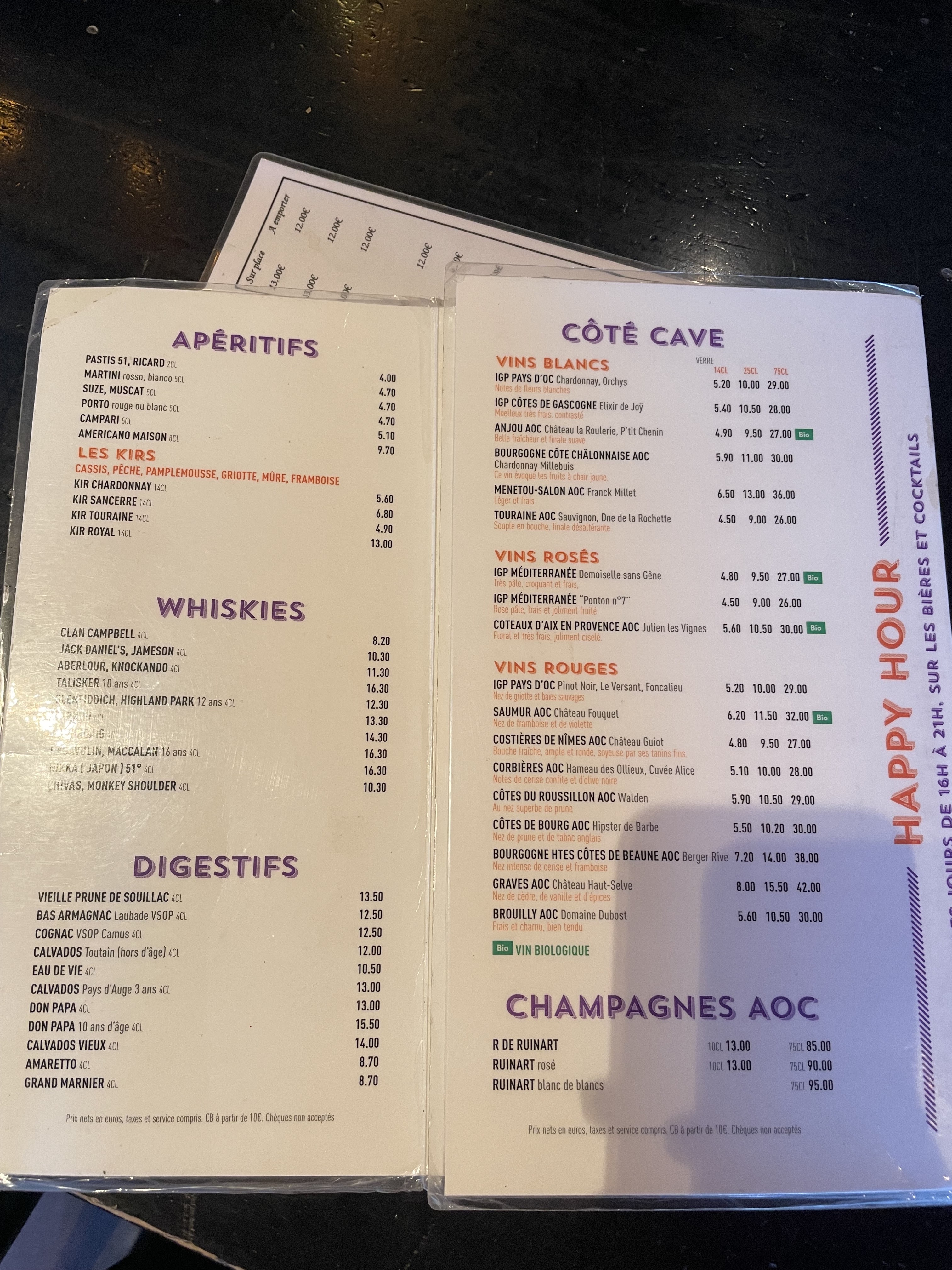 Pour moi happy hour, c’est quand tu bois deux fois la même conso pour le prix d’une seule. Ici, c’est un malentendu ou tu finis par payer deux fois pour mettre fin à un dialogue qui n’en est pas un. Bien triste, pour une happy hour.