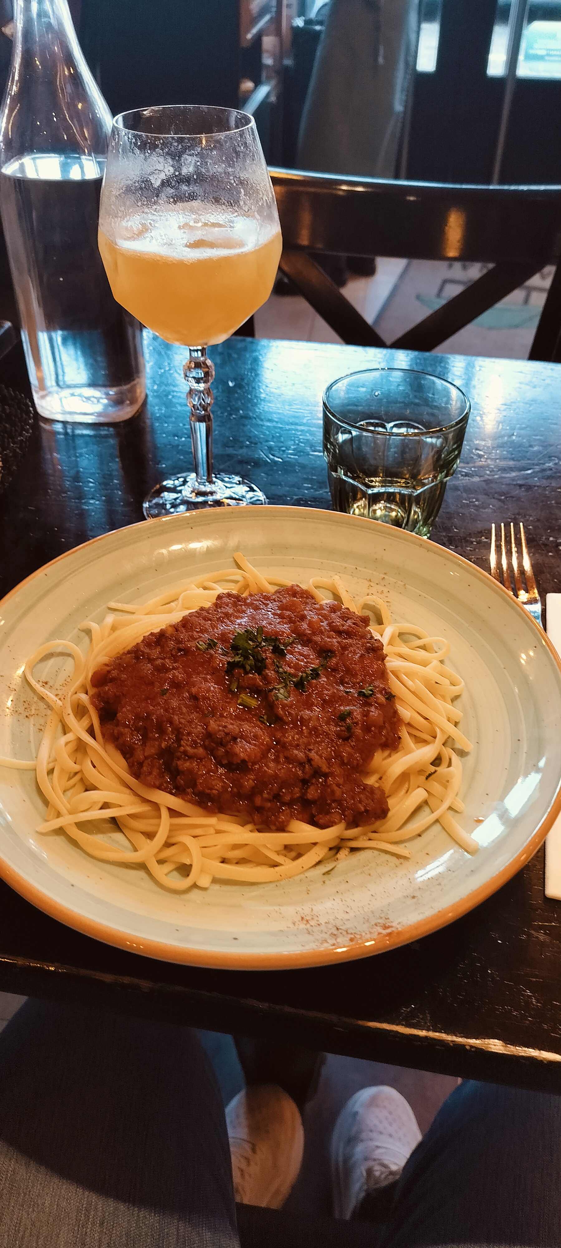 Super endroit si vous voulez une atmosphère bruyante et une intoxication alimentaire. Nous étions quatre personnes à manger là-bas et nous avons tous eu des problèmes d'estomac par la suite. Nous avons commandé la soupe à l'oignon en entrée, ce qui était bien. Le plat principal était une entrecôte caoutchouteuse servie avec des couteaux à beurre, ce qui rendait encore plus impossible à manger. Nous avons également commandé des aperol spritz qui étaient présentés dans des gobelets en verre plutôt que dans des verres à vin.
