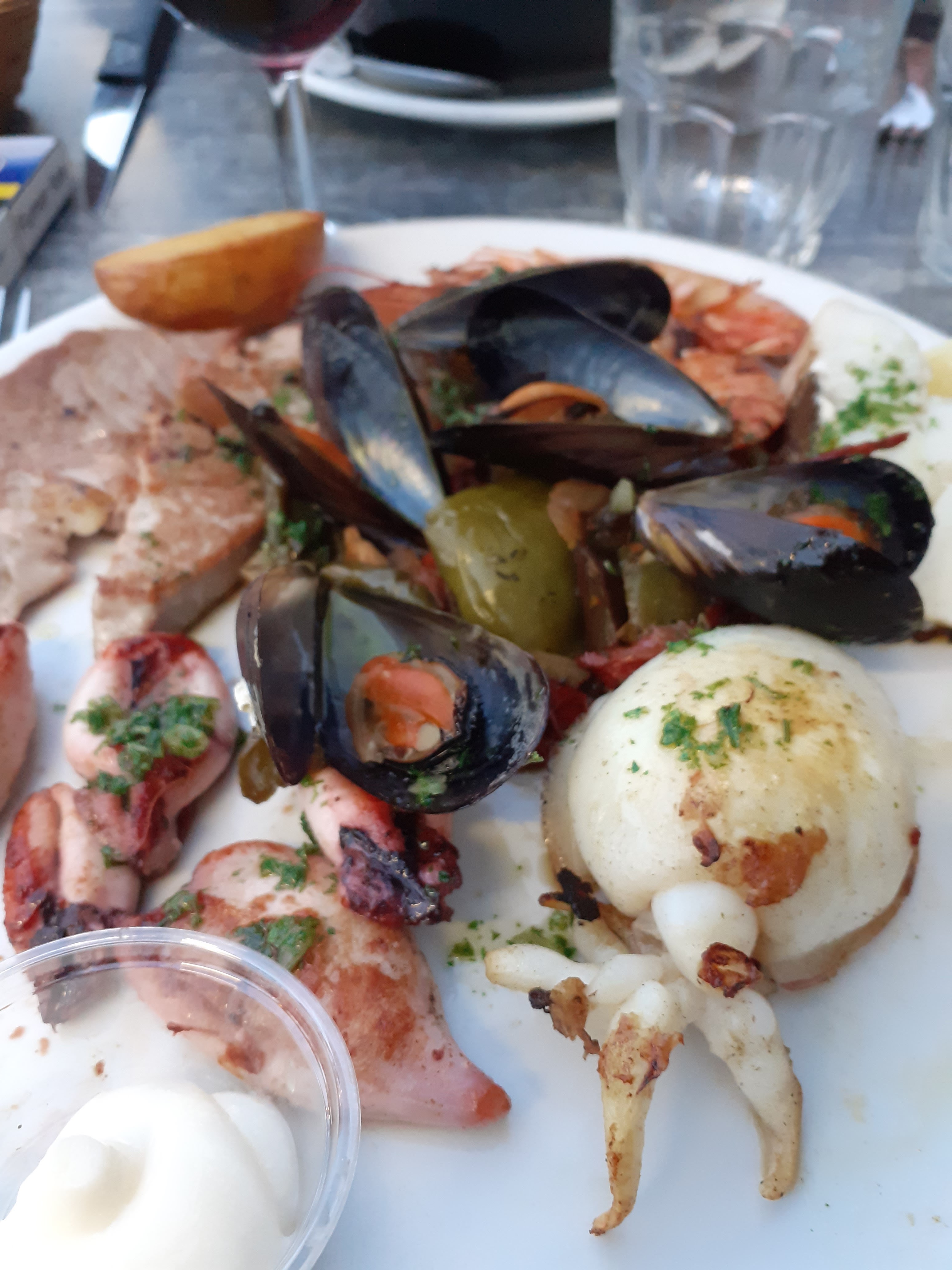 Service très proche avec un masque approximatif. Moules frites avec plus de coquilles vides que de moules. Sauce provençale se résumant à un concentré de tomates déposé au dessus. Pas un régal. Reste la vue et les sièges confortables 🙂