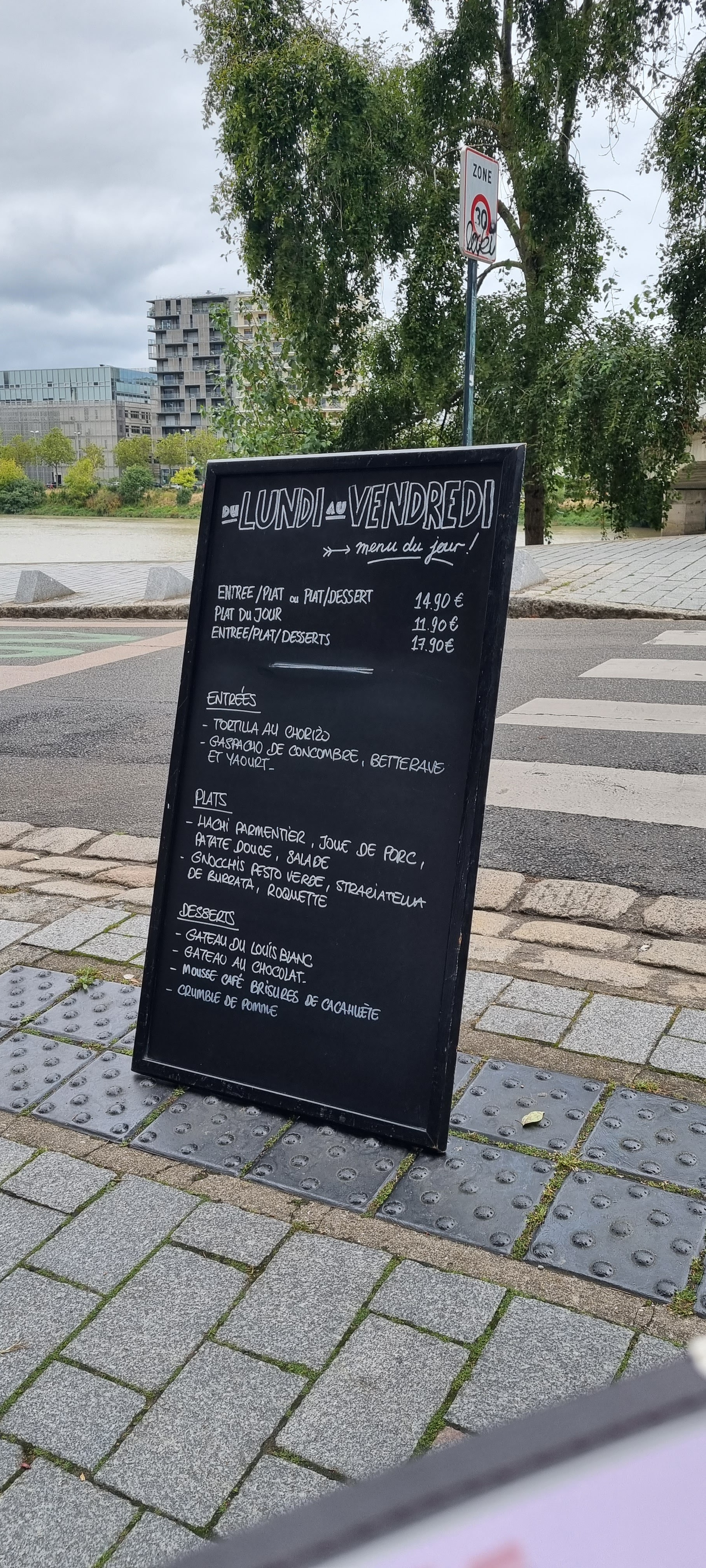 Beaucoup d’atouts pour Le Louis Blanc. Idéalement situé sur l’Ile de Nantes face à la Loire. Le midi, une carte courte avec des plats de saison et de qualité. Une décoration chaleureuse et rustique, et le soir c’est sympa aussi pour prendre un verre.