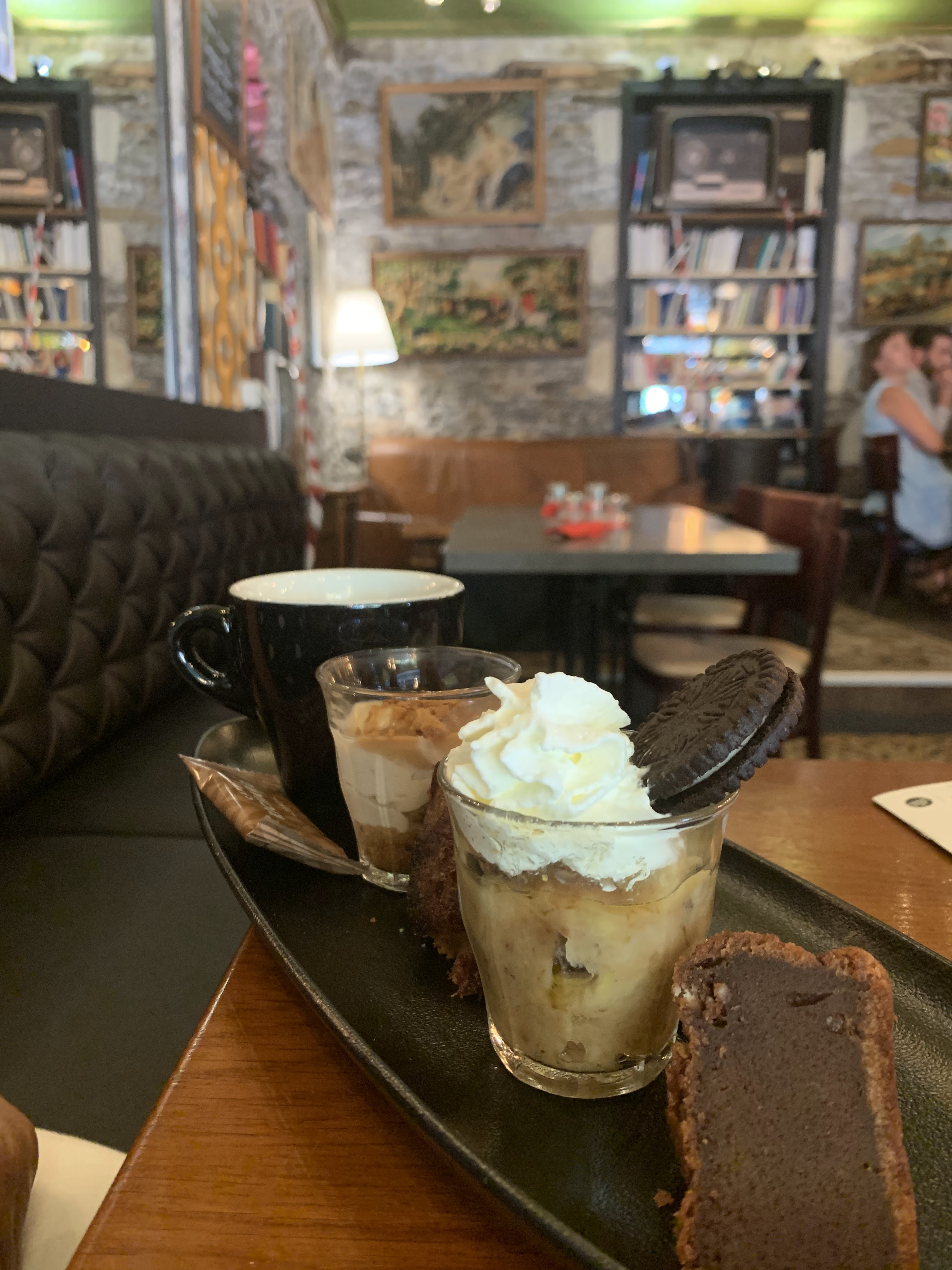 On y est allé pour un ptit dej, le café est très bien et le choco est encore mieux, franchement niveau prix ça vas et l'ambiance est très seventy et ça c'est hyper intéressant sans compter les ptits canap du fond de la salle et les livres à dispo et les vieux écran et vieilles platines au fond qui donne du charme au lieu, quant au serveurs sont bien sympa (a la conversation sur l'été que nous n'avons pas eu cette année)