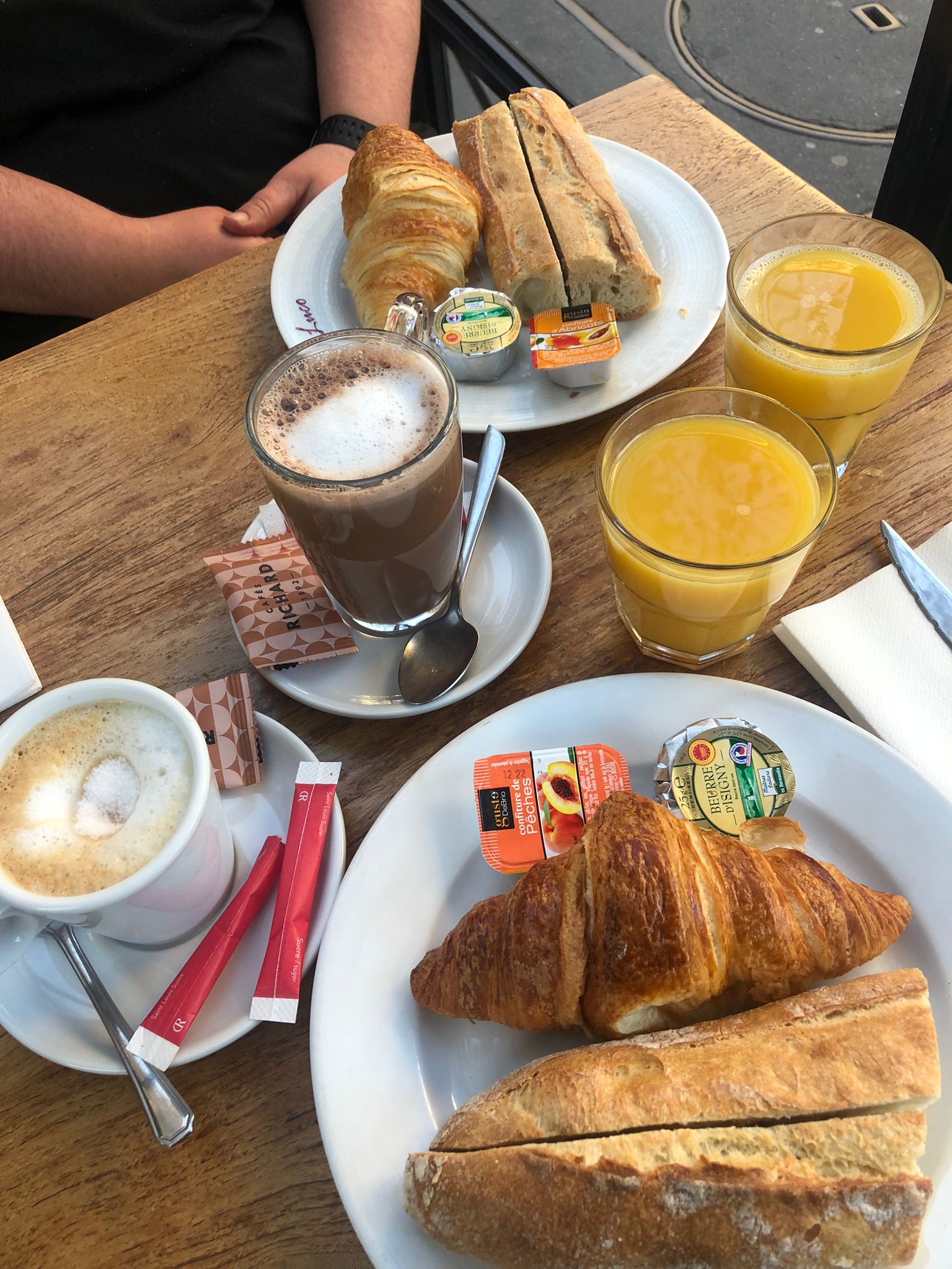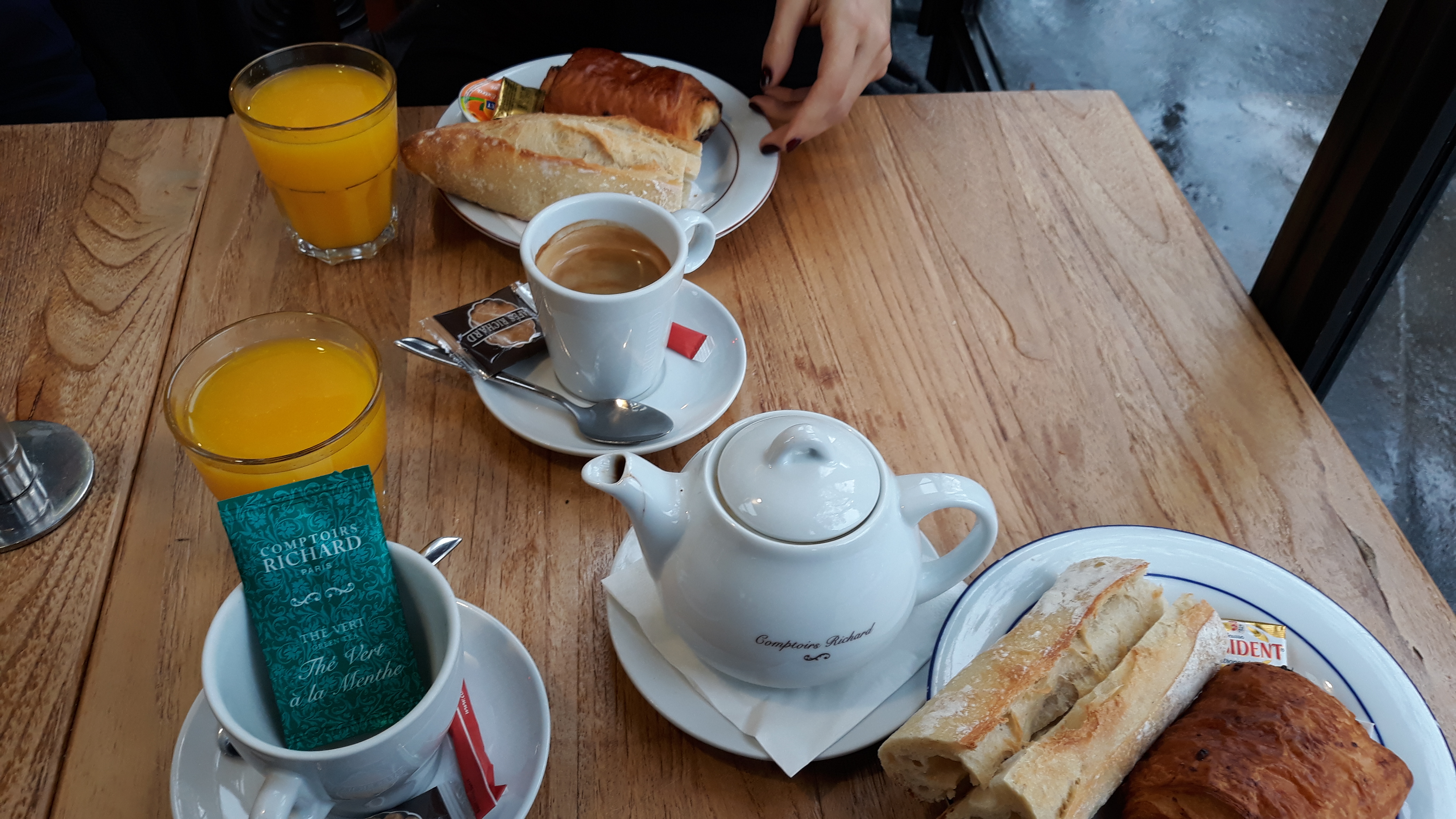 Excellent endroit pour le petit déjeuner. Très bon chocolat chaud et cappuccino, et pain frais servi avec beurre et confiture. Très bon service également, en plus de l'excellent emplacement.