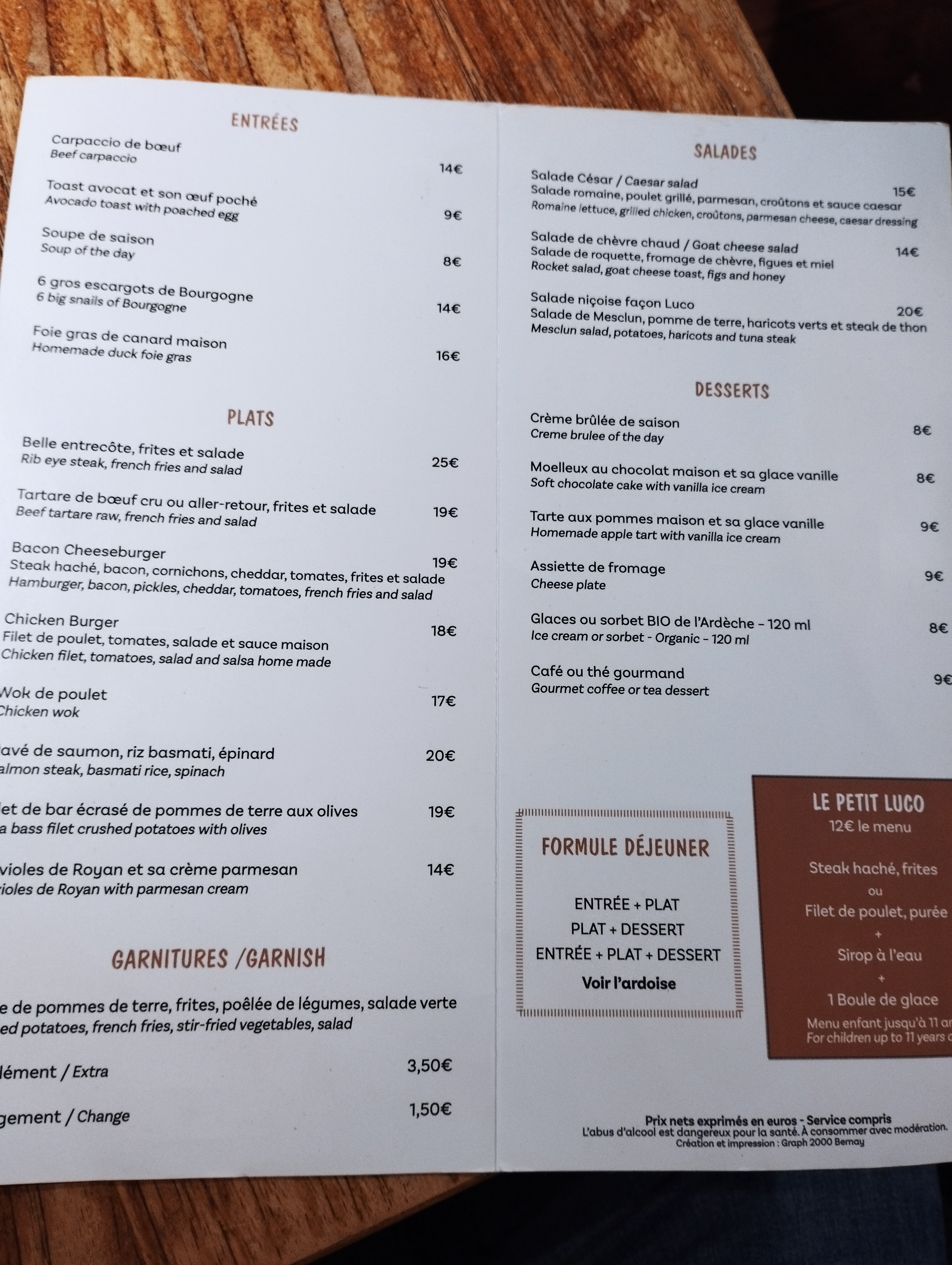 Cuisine correcte Attention à l’accueil et au service (café demandé et oublié). Tarification de suppléments, sans en avertir le client, car nous demandons une autre garniture.