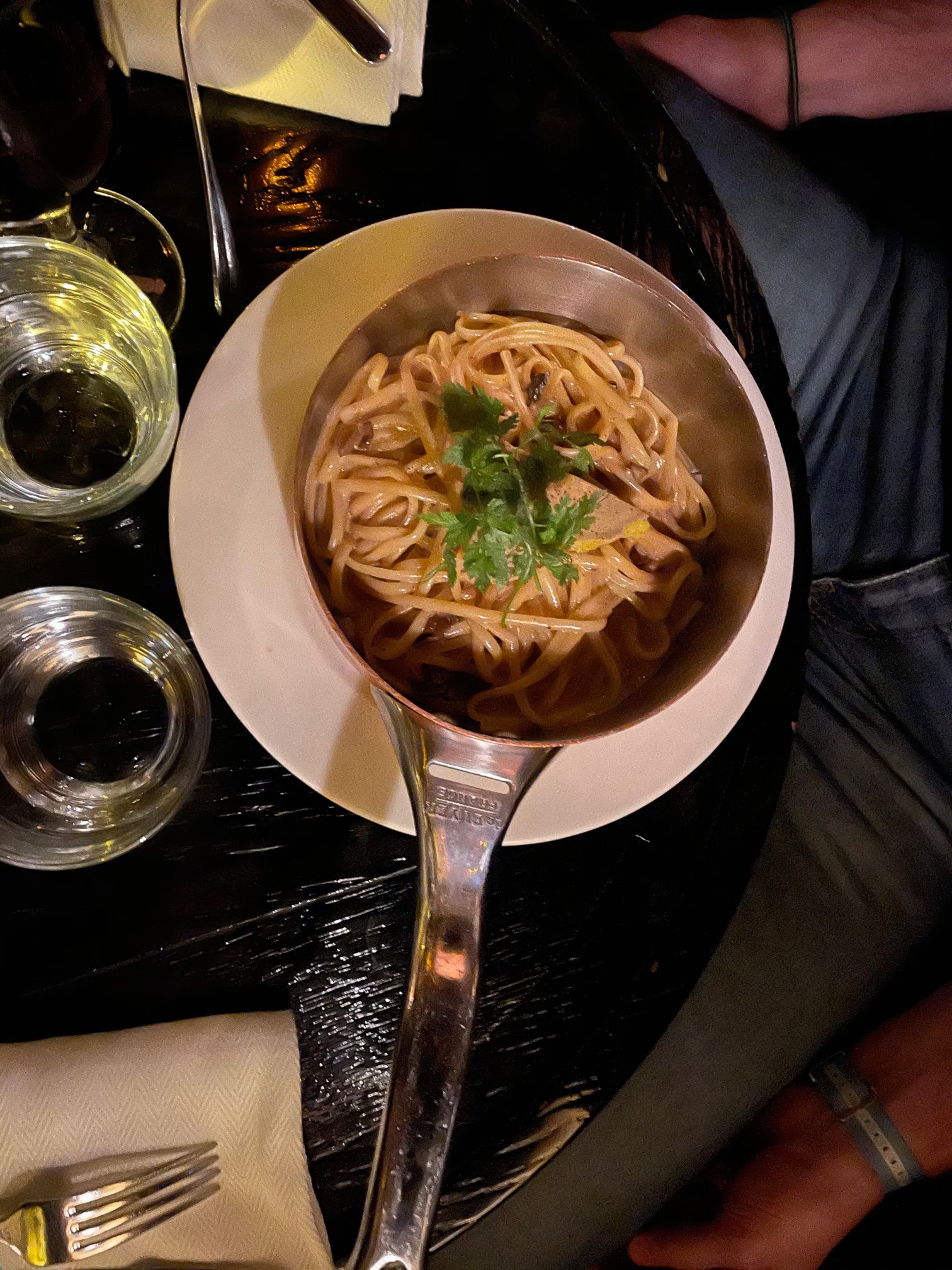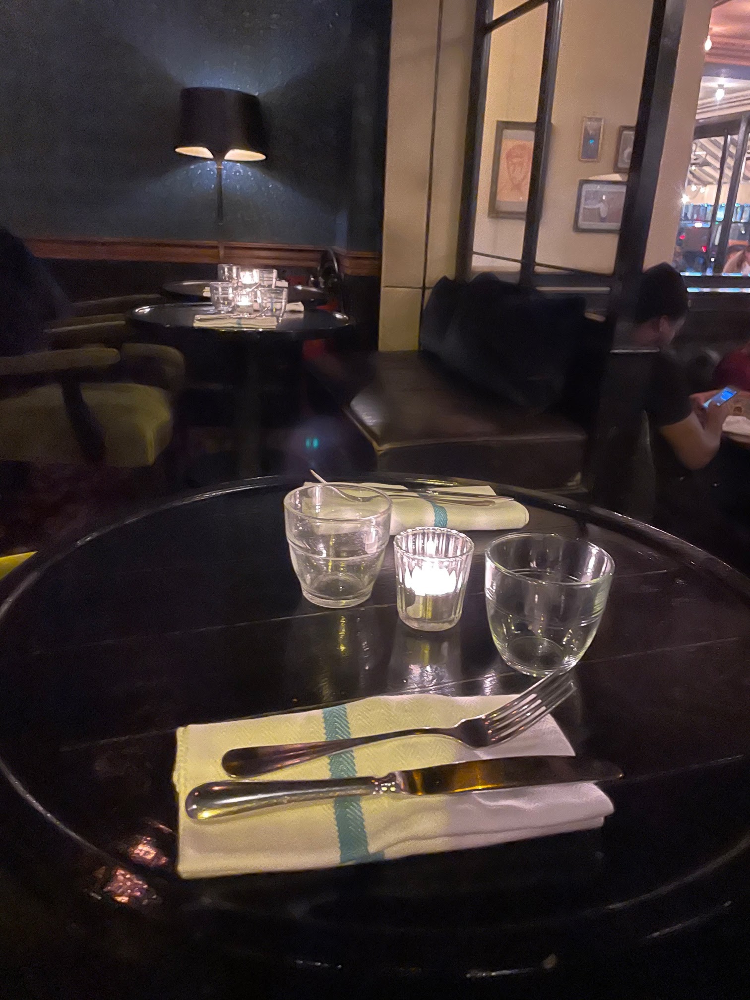 Hier soir j’ai mangé dans ce restaurant vers minuit. L’accueil est agréable, le personnel chaleureux et professionnel. J’ai aimé l’atmosphère du restaurant feutrée, lumière tamisée ,petite bougie… La carte offre un choix correct de plats. En entrée j’ai pris le saumon gravelax qui était vraiment délicieux et les morceaux choisis étaient de bonne qualité ,en plat les linguine à la morille et au foie gras qui étaient également très bonnes. Les portions sont raisonnables, c’était très bon mais je trouve que les entrées sont un peu chères. Seul point négatif mais qui n’est pas de la faute du restaurant la table à côté de nous qui parlait extrêmement fort. Je vous recommande ce restaurant surtout si vous avez envie d’un resto en pleine nuit à Paris car ils ferment très tard.
