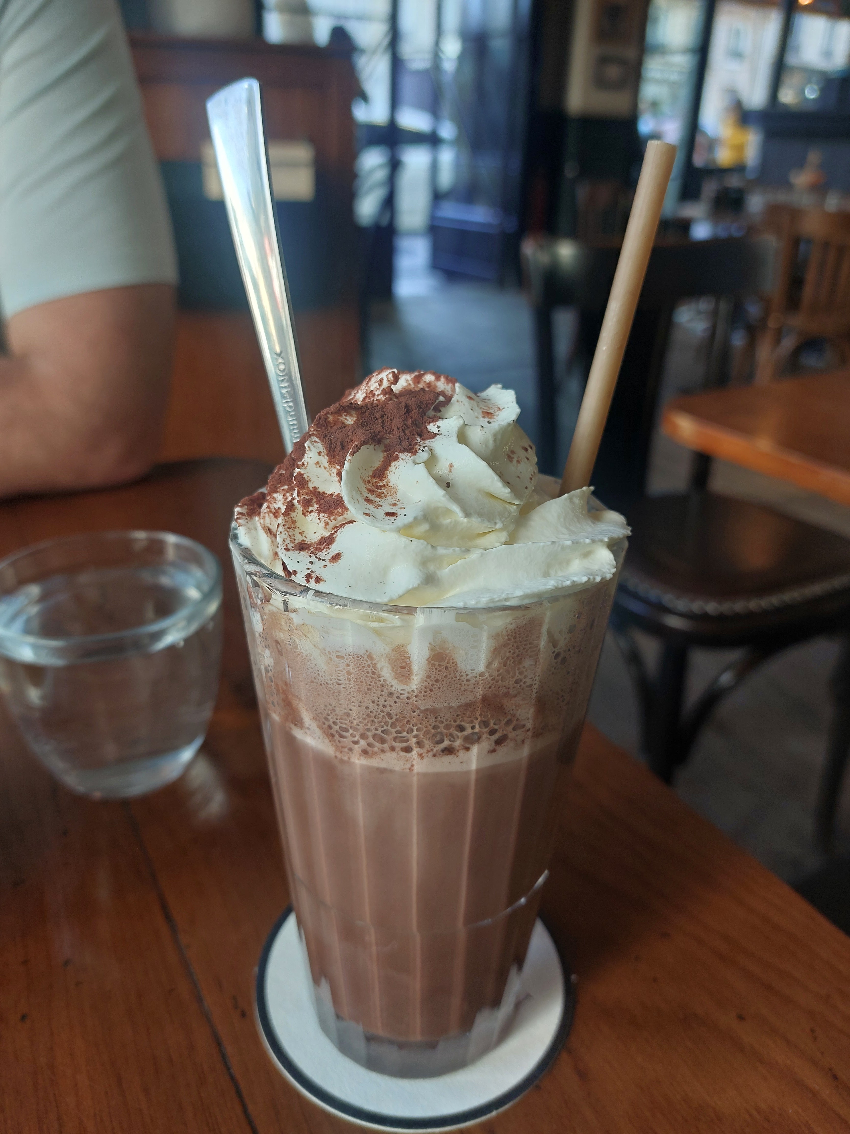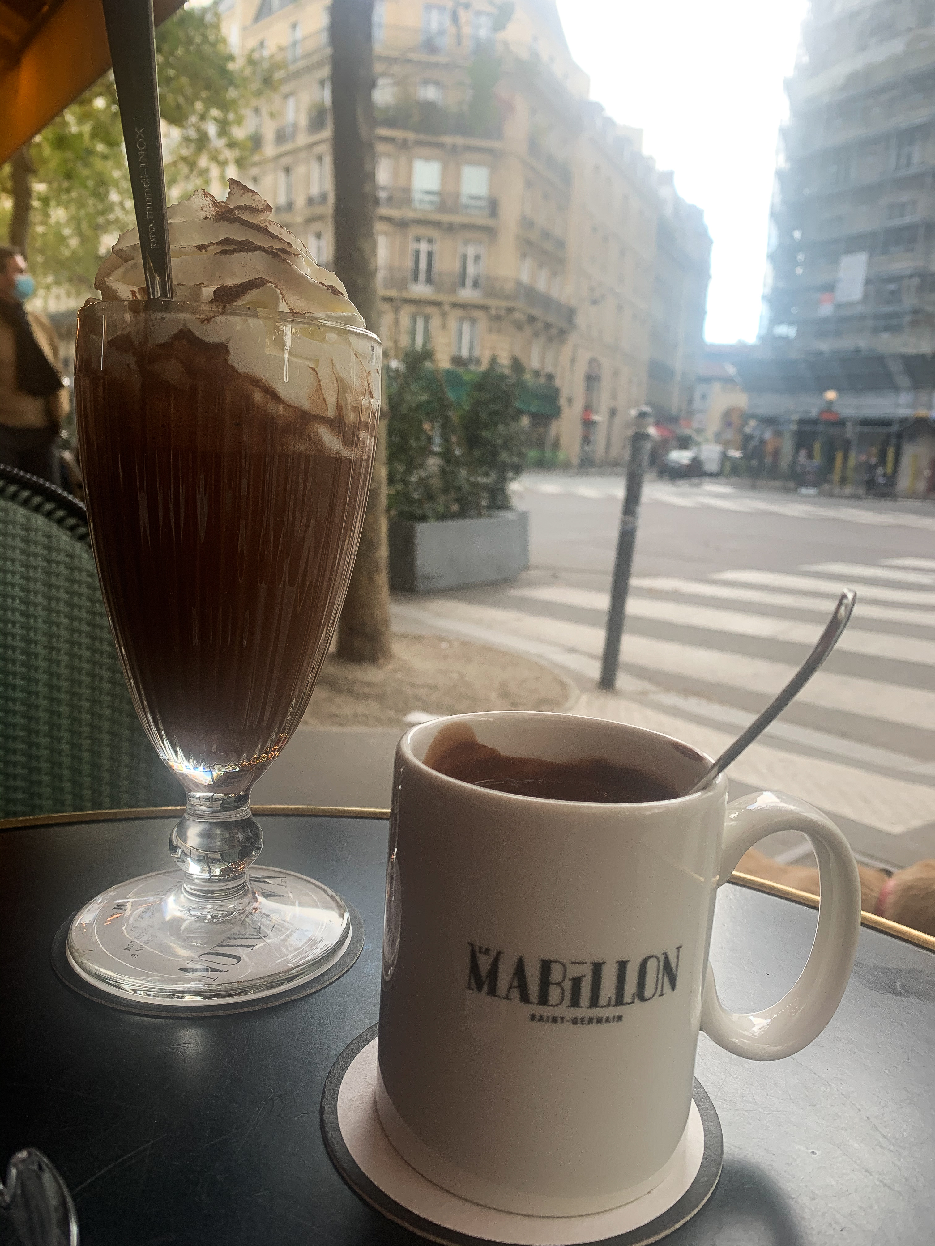 Saint-Germain est vraiment un beau quartier à Paris. Le chocolat chaud est très goûteux, un peu bruyant en terrasse à cause du trafic. L’endroit est vraiment top, la serveuse était vraiment sympathique. Visité en Octobre