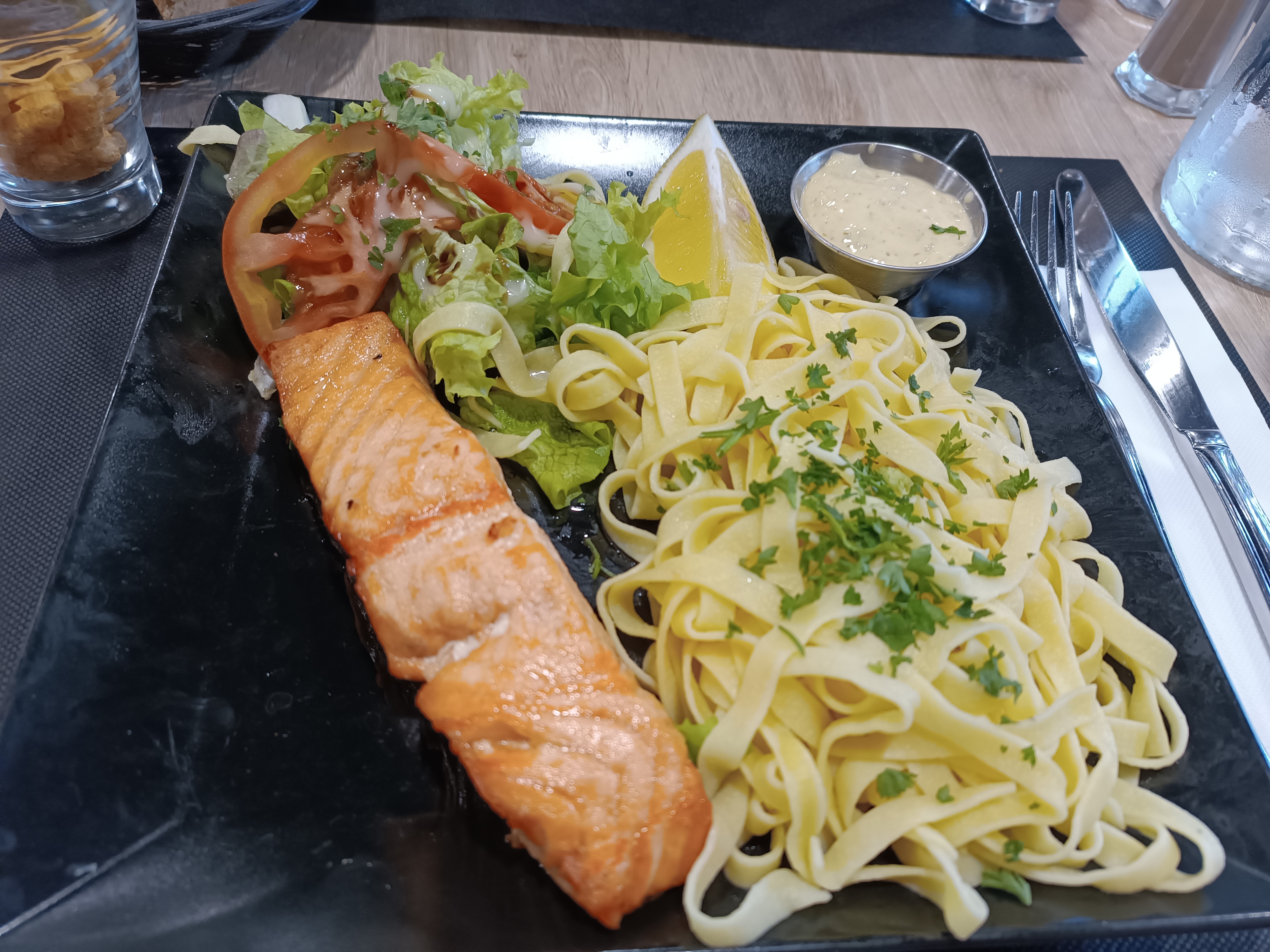 Tout est parfait : cuisine, ambiance conviviale, très bon rapport qualité-prix. Les serveurs sont forts sympathiques. En ce début d'année 2024, nous avons découvert par hasard un excellent restaurant à deux pas du château de Fontainebleau. Vendredi 5 janvier, le plat du jour était délicieux et copieux : tagliatelles aux deux saumons. Maman et moi avons dégusté le pavé de saumon sauce béarnaise : un régal pour les papilles. A bientôt dans votre restaurant Le Mansart. Bonne année 2024