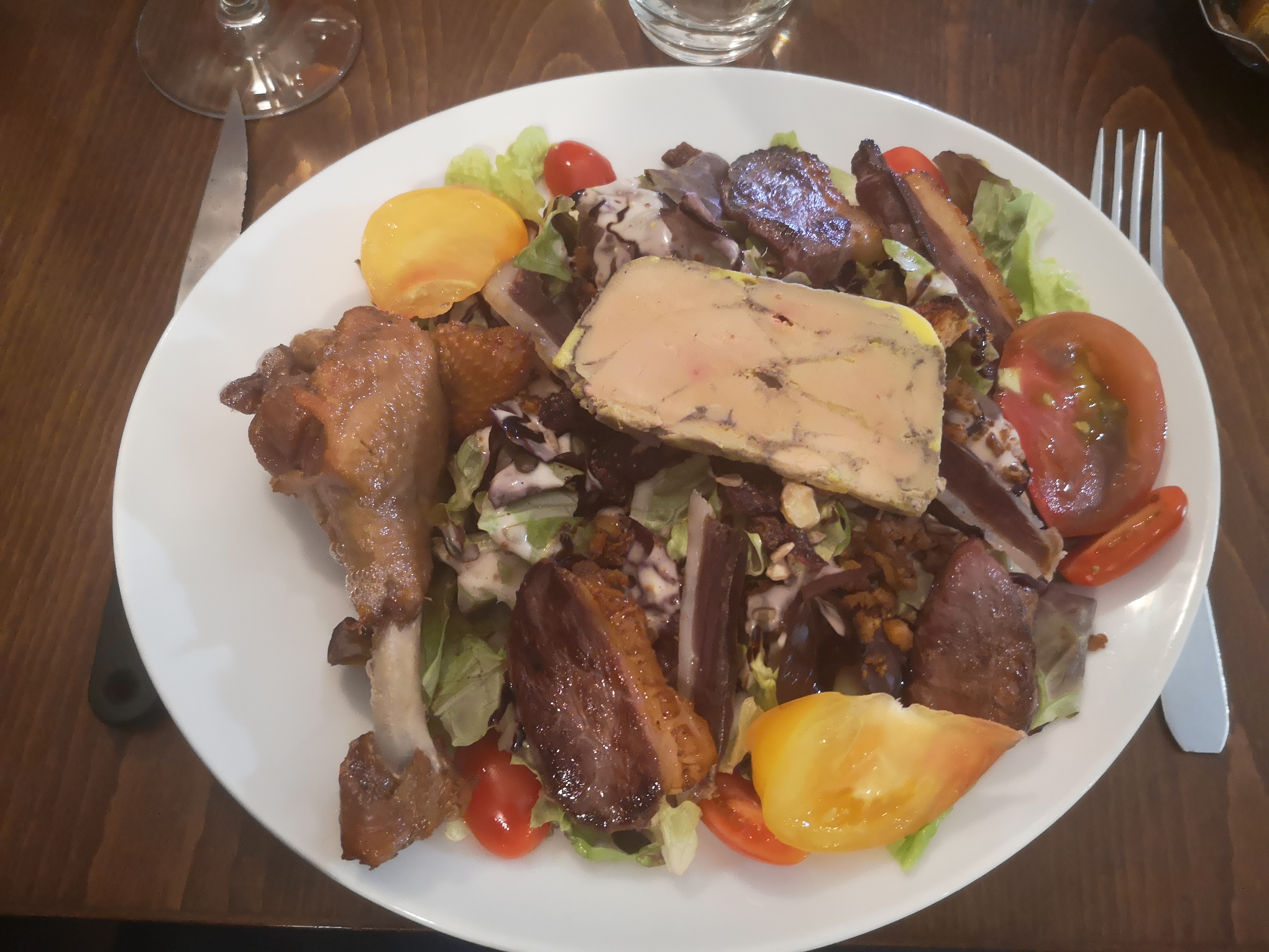 Emplacement sympa sous les arcades du village. Déco très sympa à l intérieur, vintege . A vraiment garder.... Salade gascone parfaite. Frites maison très bonnes. Proposition d une assiette de fromages en dessert serait peut être bien. Une gersoise de passage dans votre village😀🙃