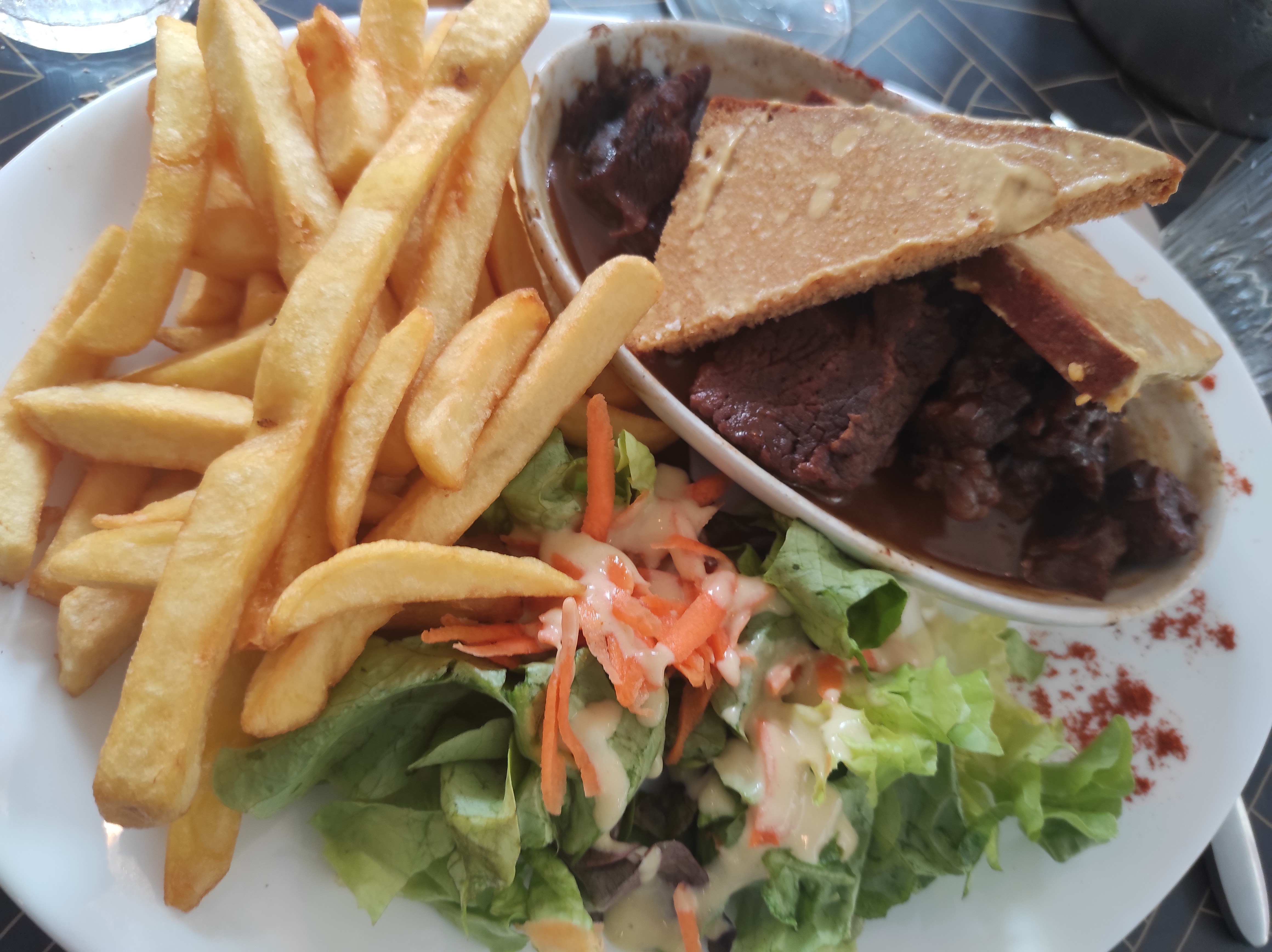 Un lieu qui ne paye pas forcément de mine, bien caché au fond de la place Jean Bart de Dunkerque mais dont l'accueil fut aussi doux et généreux que le régal de la dégustation d'une carbonade flamande maison comme on mange rarement des aussi bonnes !