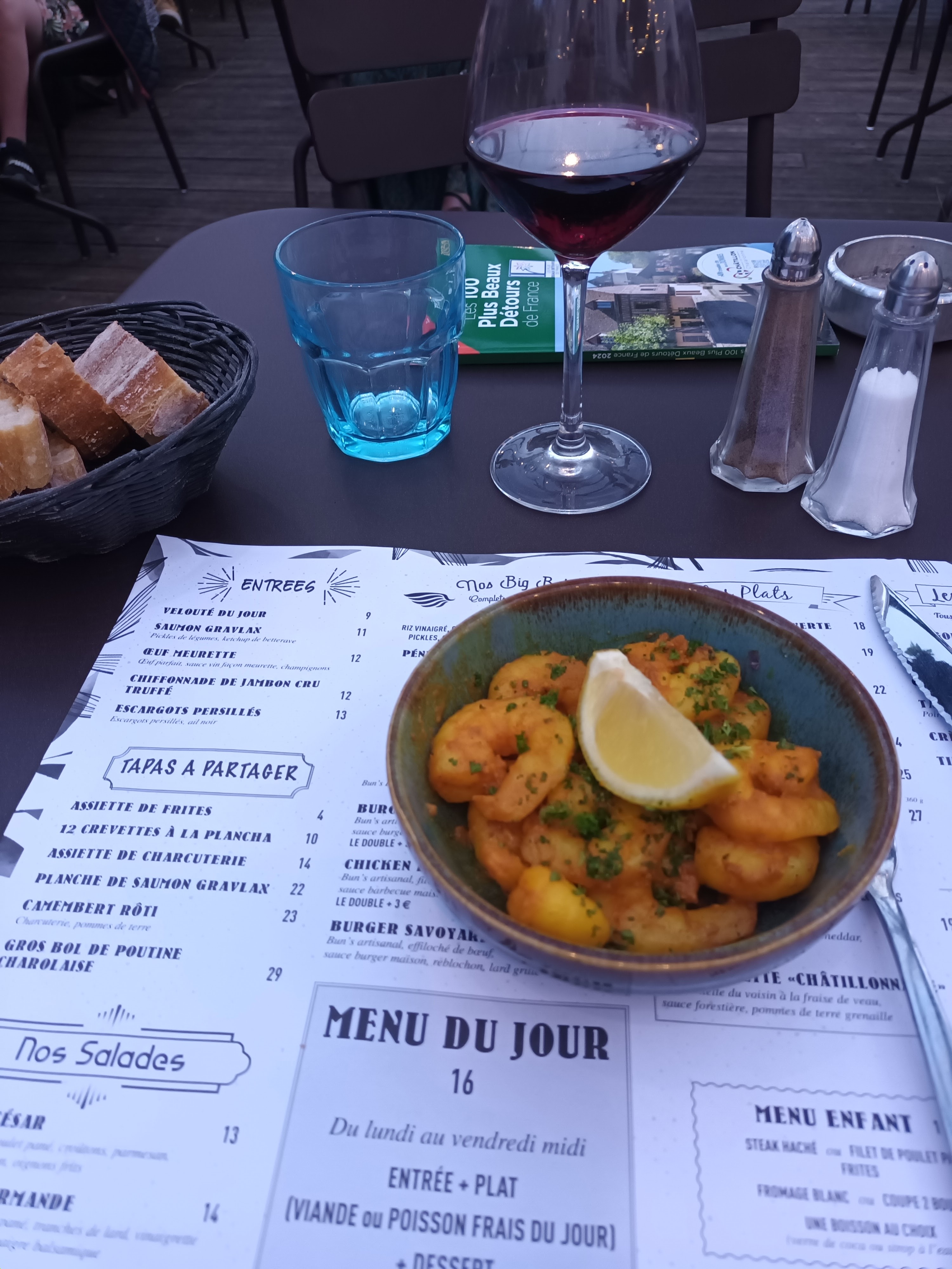 Buongiorno, 1er essai (par 1 connaissance client du coin) situé en plein centre de Châtillon-sur-C. Places parking juste à côté. Terrasse agencée et clôturée. Déco sympa éclairée sur la terrasse ext 💯❣️Un grand écran TV dehors. Sinon 2 salles intérieures ou sous véranda semi ouverte. Le service super. Pas de résa, cependant le serveur m'a fait patienter au bar où j'ai eu méga accueil des 2 barmans souriants, attentionnés &pro 👏👌.J'ai patienté 5/10 mn avec 1 vino Vaqueyras très buonissimo 😍 ...Qualitatif 💯 Ensuite installée en terrasse, ambiance autour sympa,1 fond de musica parfait ❣️En entrée j'ai pris les gambas planchas puis salade césar 🤩. C'était parfait,le prix est à la hauteur de la qualité & de la quantité ❣️ Bonne ambiance, service impeccable des serveurs attentionnés souriants pro 👏👌 Avec le mondo...👍 Super satisfaite du personnel comme du restau, + sa situation et ses plats choix boissons. Pressée de revenir 😅 Pas loin de ma nvelle résidence topissimo 😍 Bref la perfection 5* pour passer 1 bon momento. Et ballade autour également. A presto 👋 😊