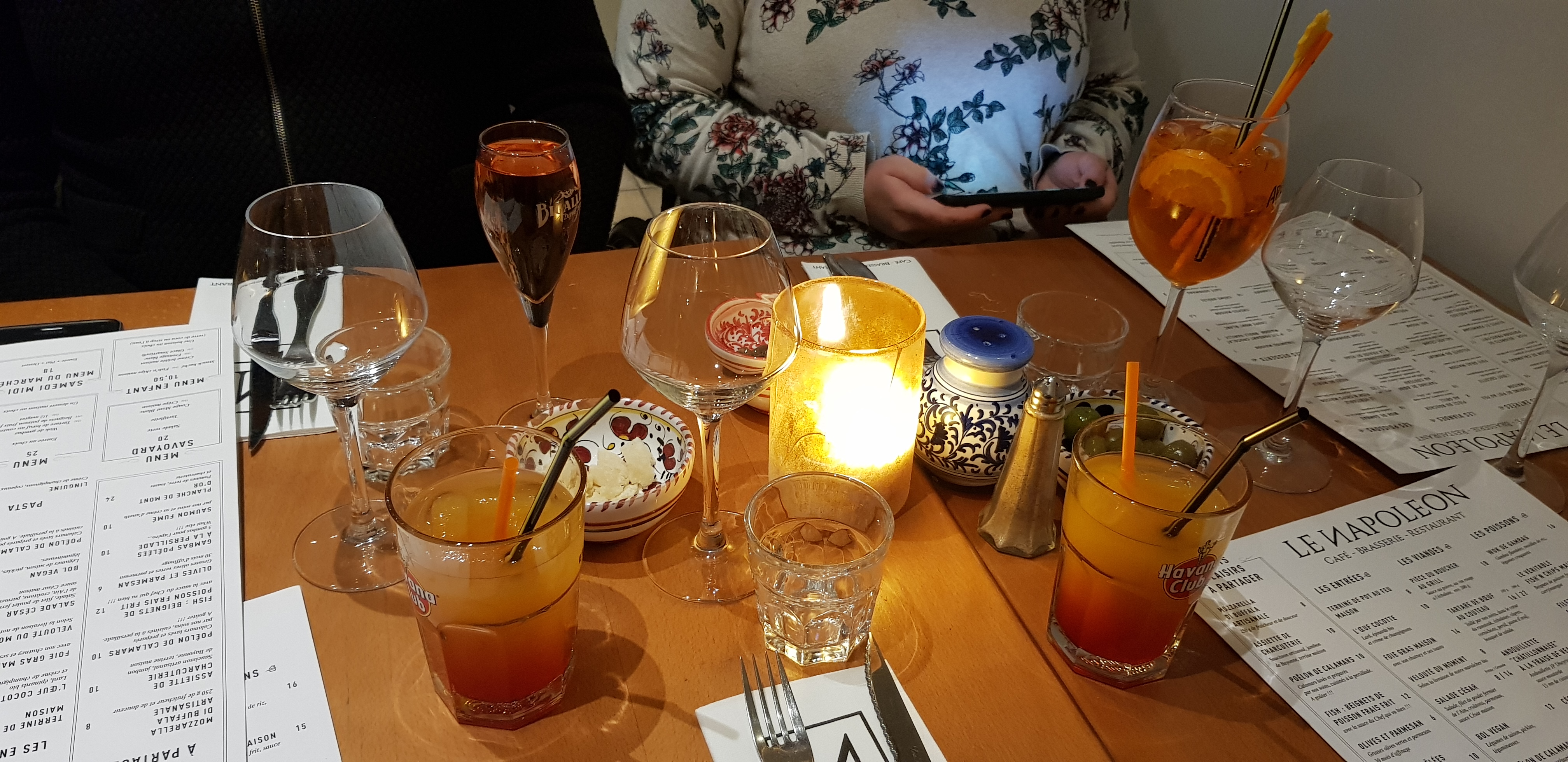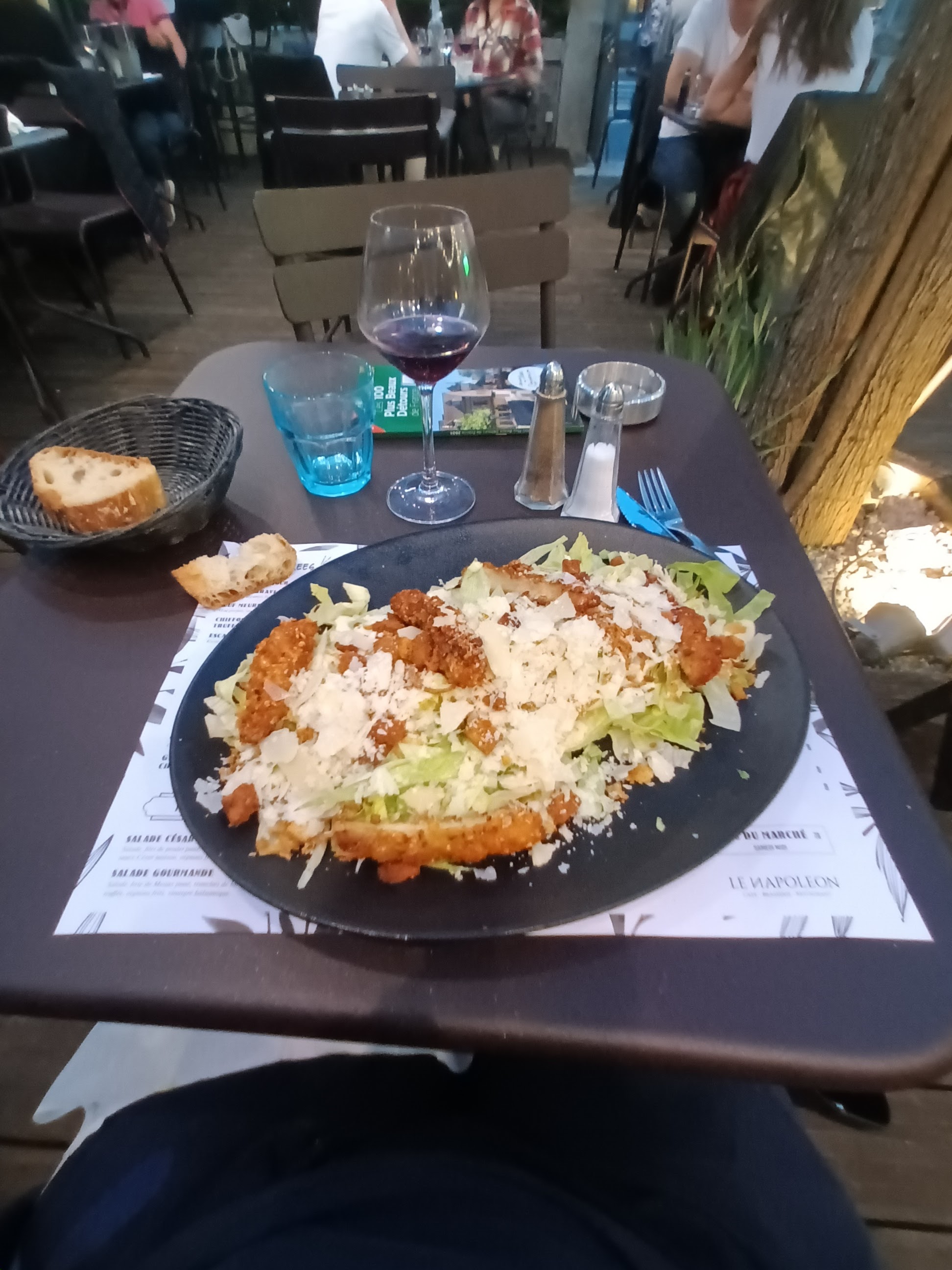 Hier soir j avais réserve un autre resto qui n avait pas ouvert sa terrasse du coup j ai atterri au napoleon Et La belle surpriseterasse sympa Carte super on ne savait que choisir Gambas , tartare , sauce maison au curry , andouillette tout était super , le petit blanc mâconnais parfait le rose de st Tropez sublime Bref un sans faute et sympathique nos hommes ont Et le droit au digestif