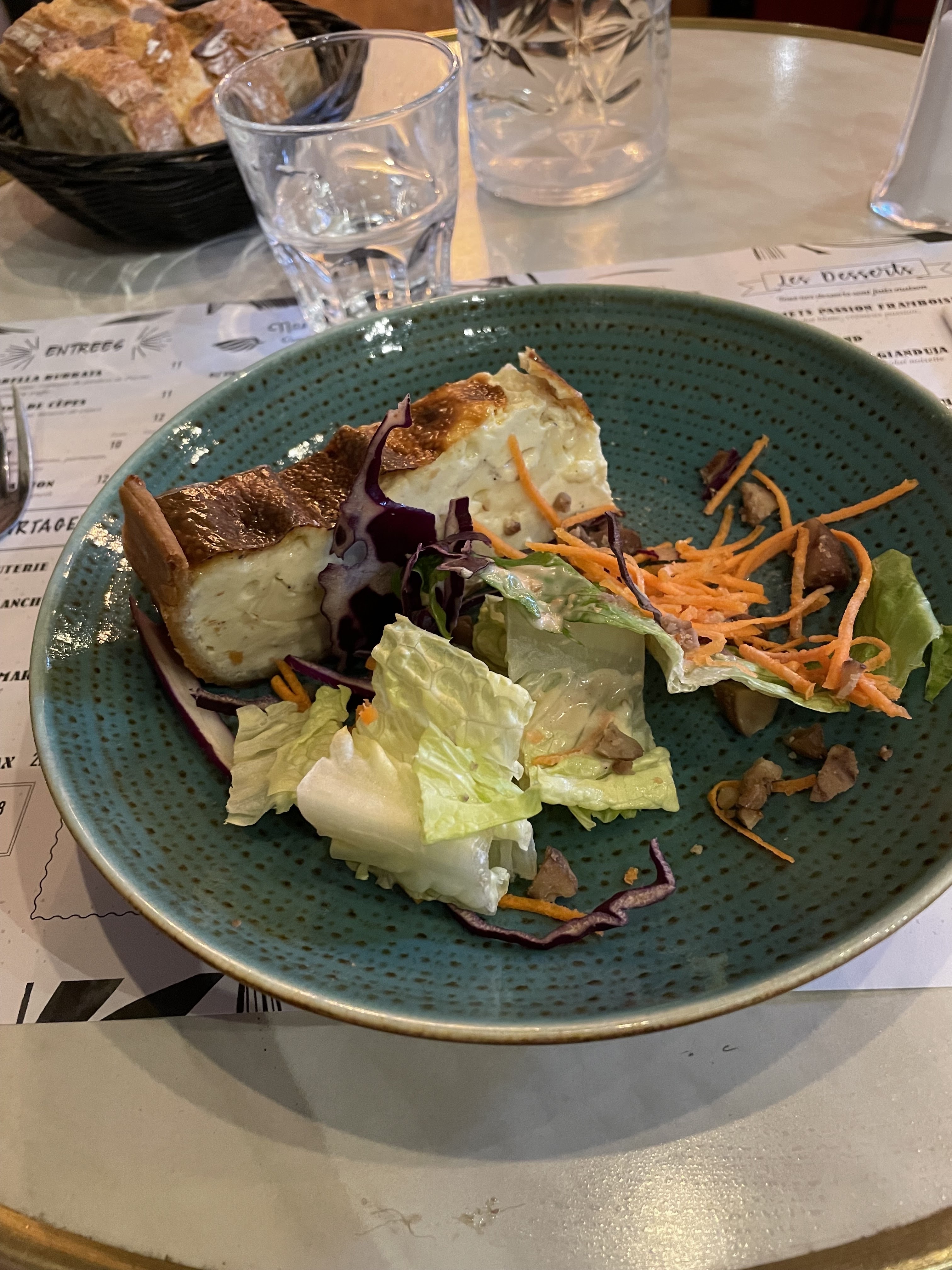 Menu du jour complet pour 15,50: quiche poireau chèvre, lingue marinière et crème brûlée pistache. Simple mais bien servi et goûtu.