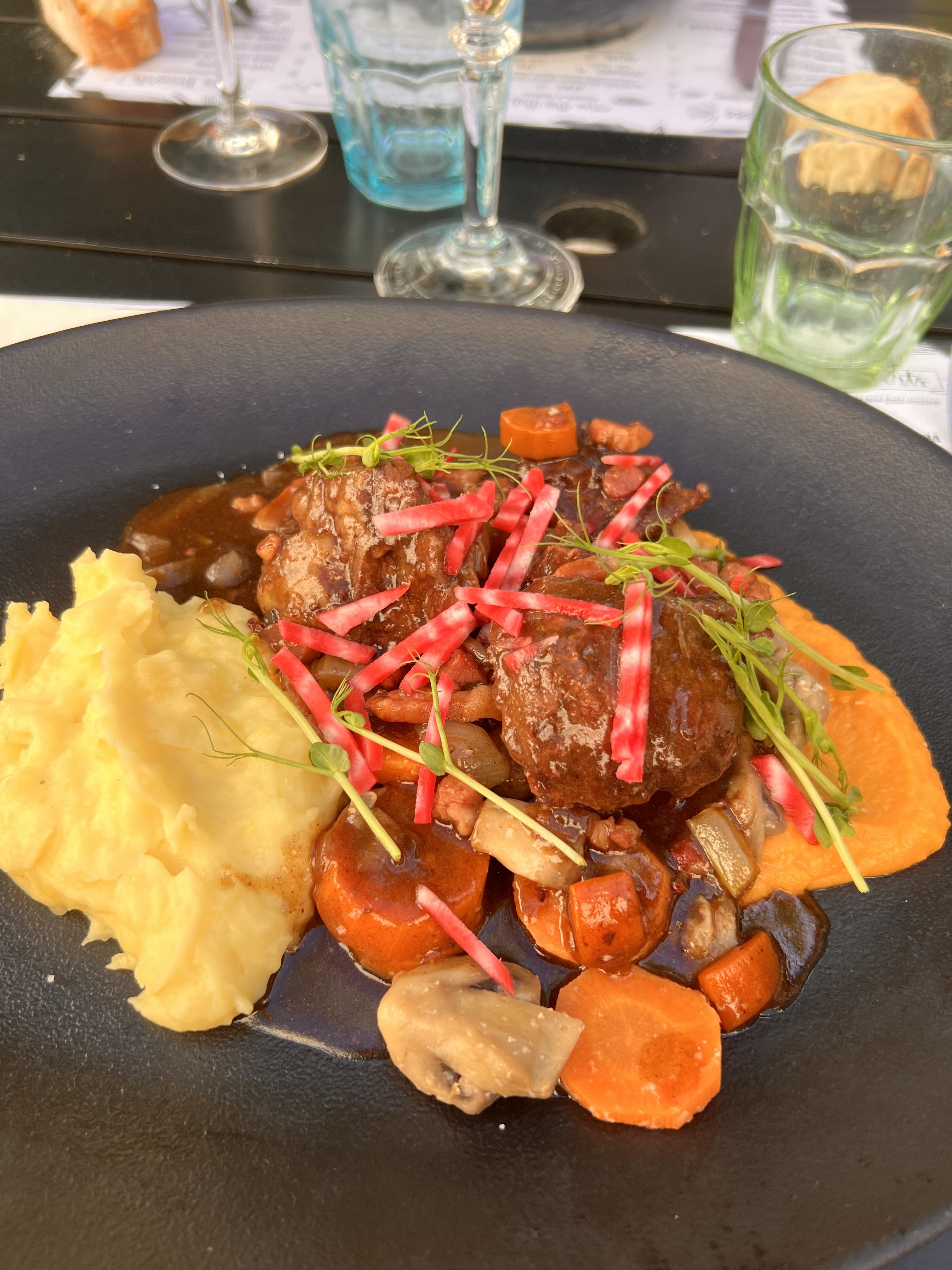 Lieu très sympa avec un personnel très professionnel et chaleureux. La cuisine est excellente. J’ai particulièrement apprécié les poireaux confis, le poisson et le bœuf bourguignon. Nous y sommes retournés le samedi mais il faut réserver à cause du marché. Deuxième visite après quatre mois et toujours satisfait de l’ accueil et de la qualité des plats: Aujourd’hui c’était Joues de bœuf : Délicieuses!