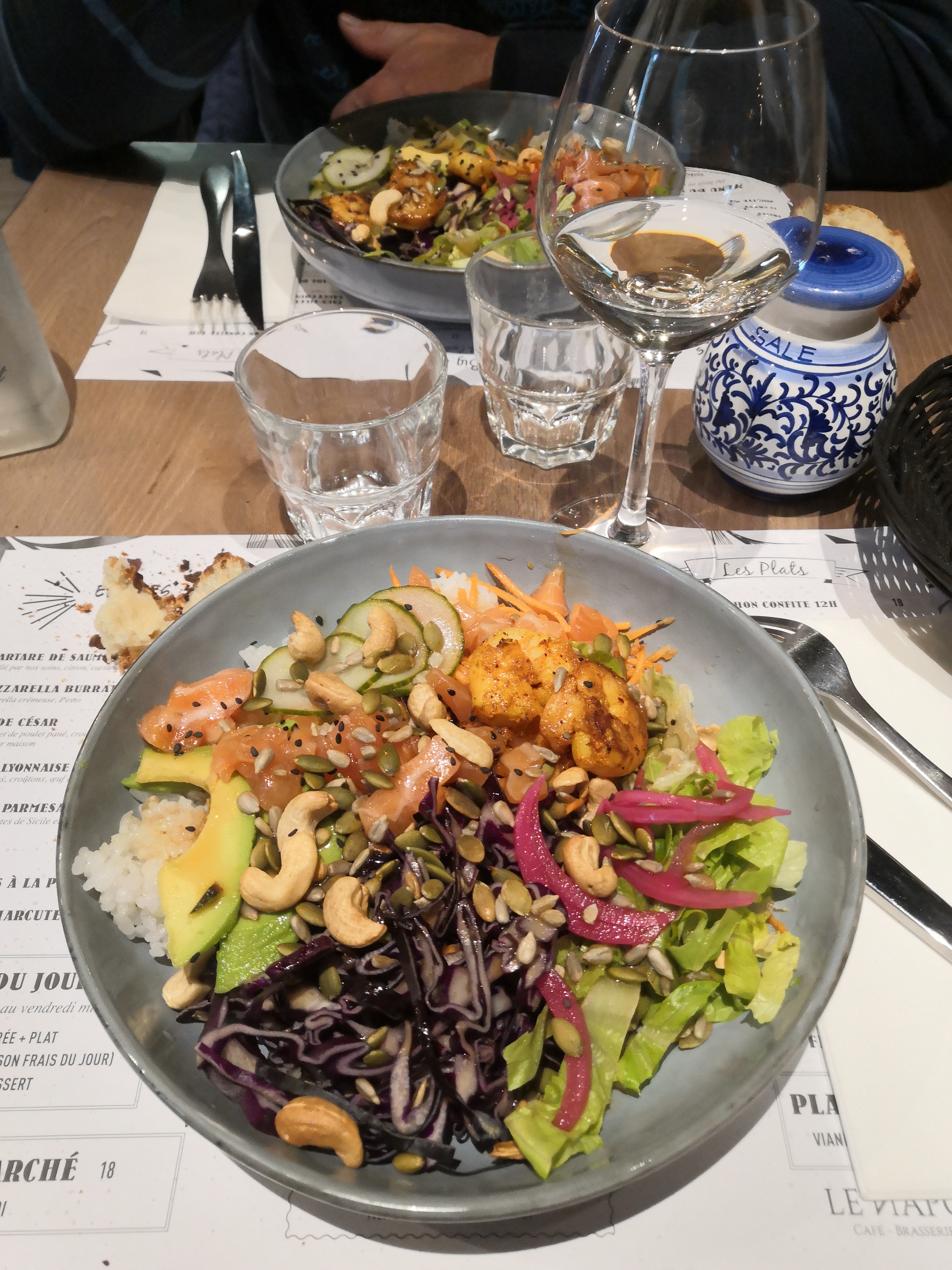 Nous y avons dîné deux fois de suite tellement l'accueil a été très sympa. Une jeune serveuse pétillante et très professionnelle, elle se reconnaîtra, je lui souhaite de bien réussir la suite de ses études en médecine. Ai testé le salad bowl et le lendemain l'épaule de cochon confite, c'est un délice !!. J'y étais pour le boulot, j'ai hâte de pouvoir y retourner ☺️. Bonne continuation à ce restaurant.👏