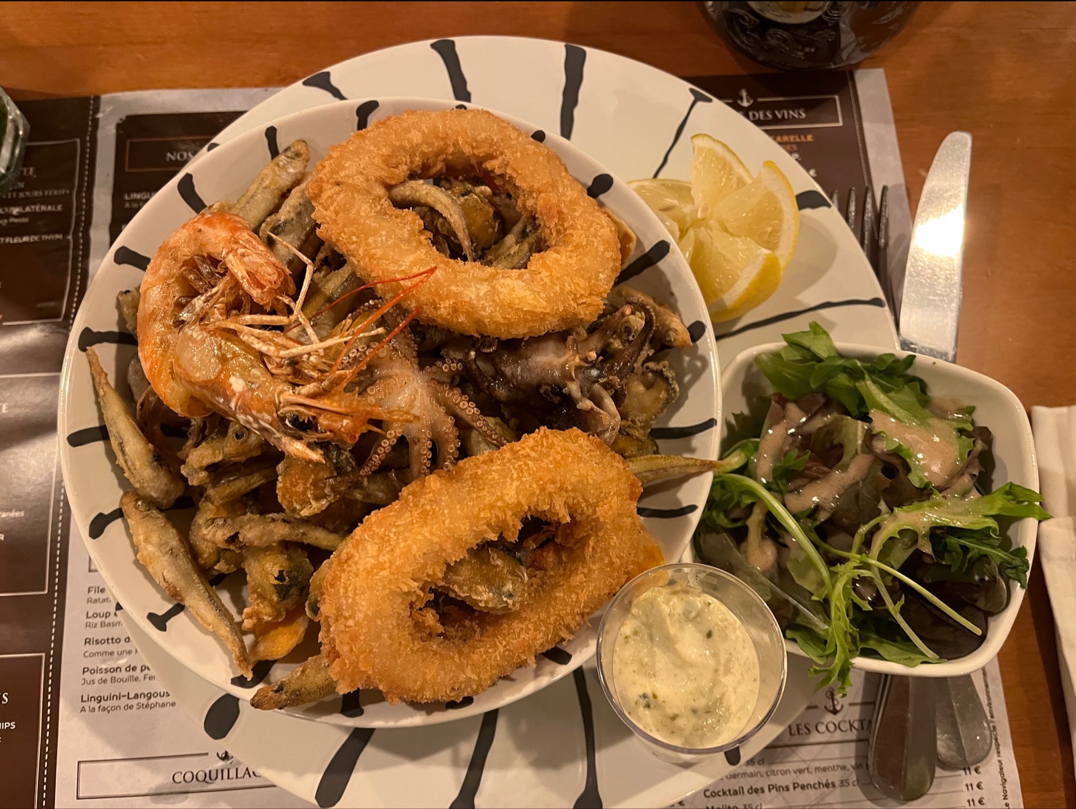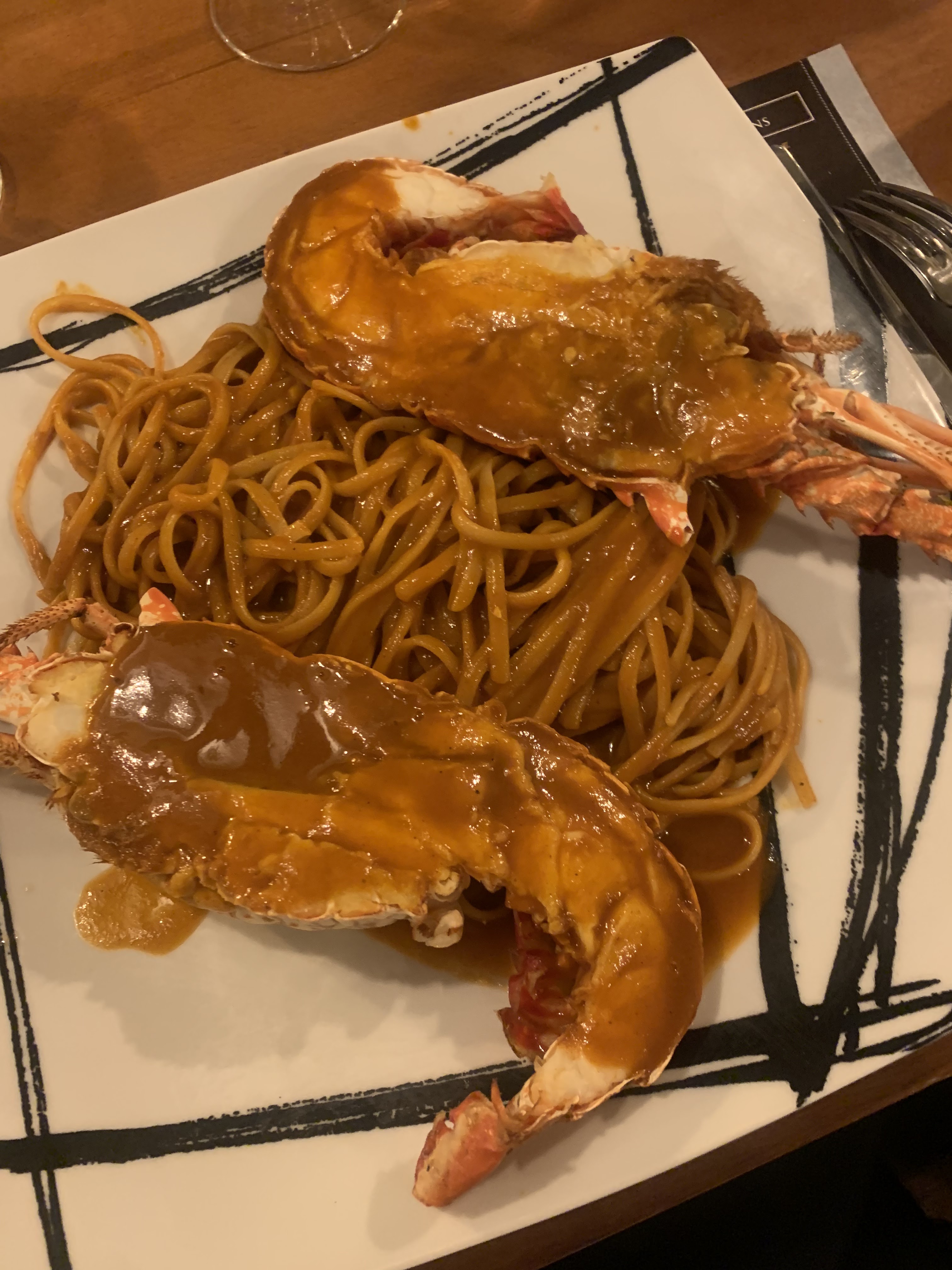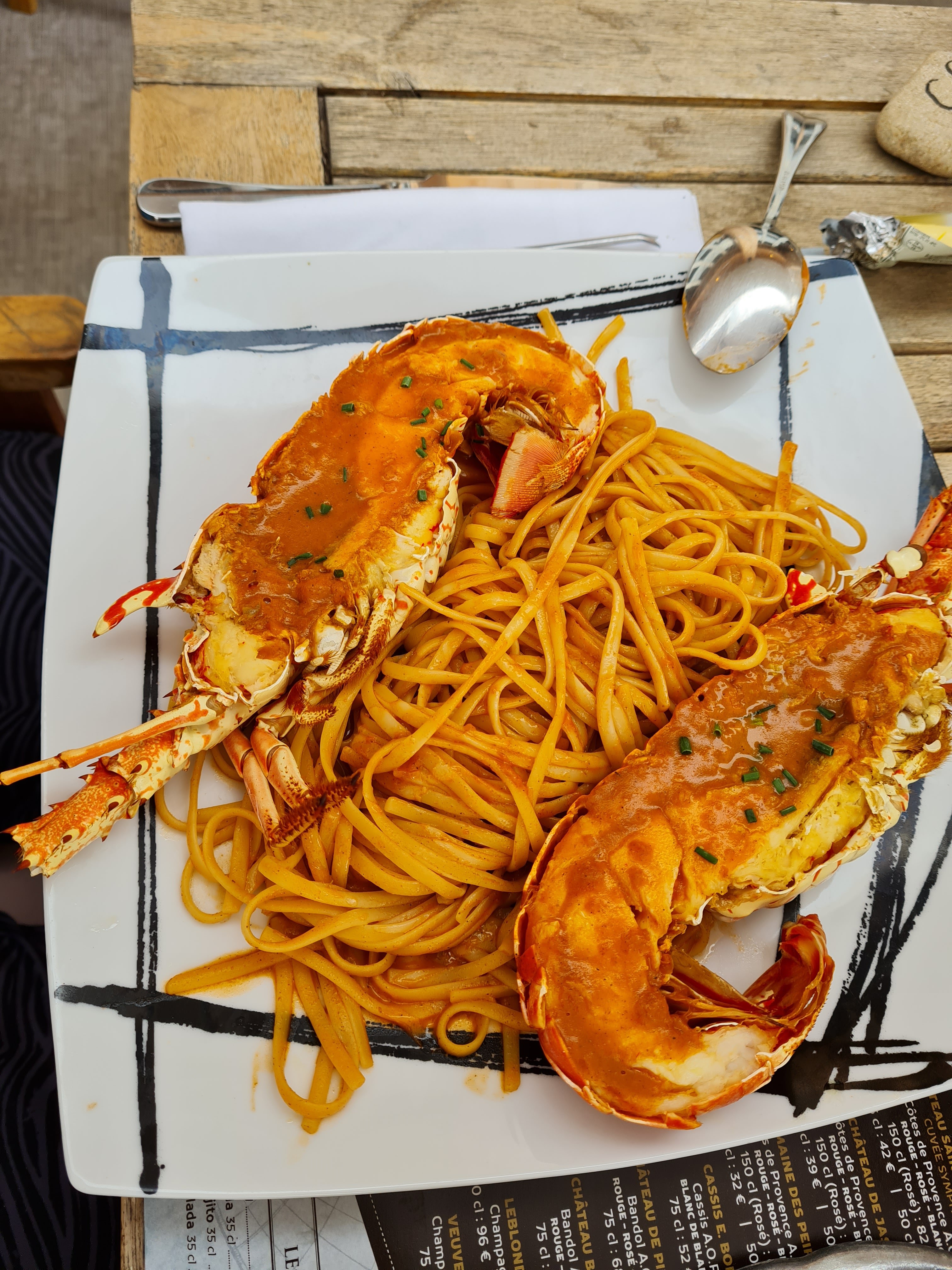 On nous a offert les pâtes aux langoustes et j avoue que nous nous sommes régalé, très bon menu avec un apero et une bouteille de vin très bon aussi .enfin voilà! nous sommes d ici et chaque fois que l on va ,nous sommes tres content.