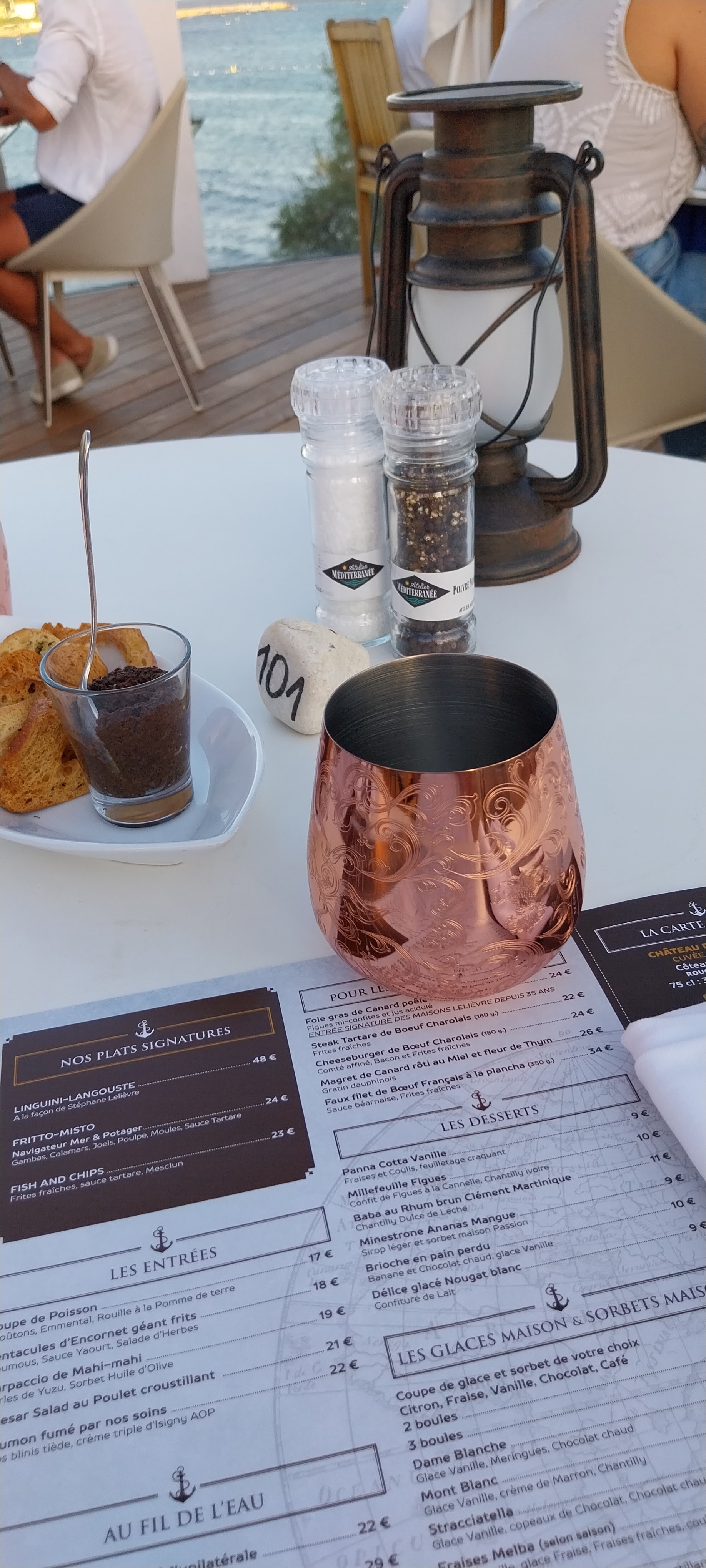 L'accueil et le service sont très bien, le cadre avec vue sur la baie très agréable. Par contre, le fish and chips était sans intérêt alors que le fritto Misti était correct. Les desserts sont bons mais cela reste assez cher et on paie plus le cadre que la qualité des plats (80€ à 2 pour apéro, plat et dessert)