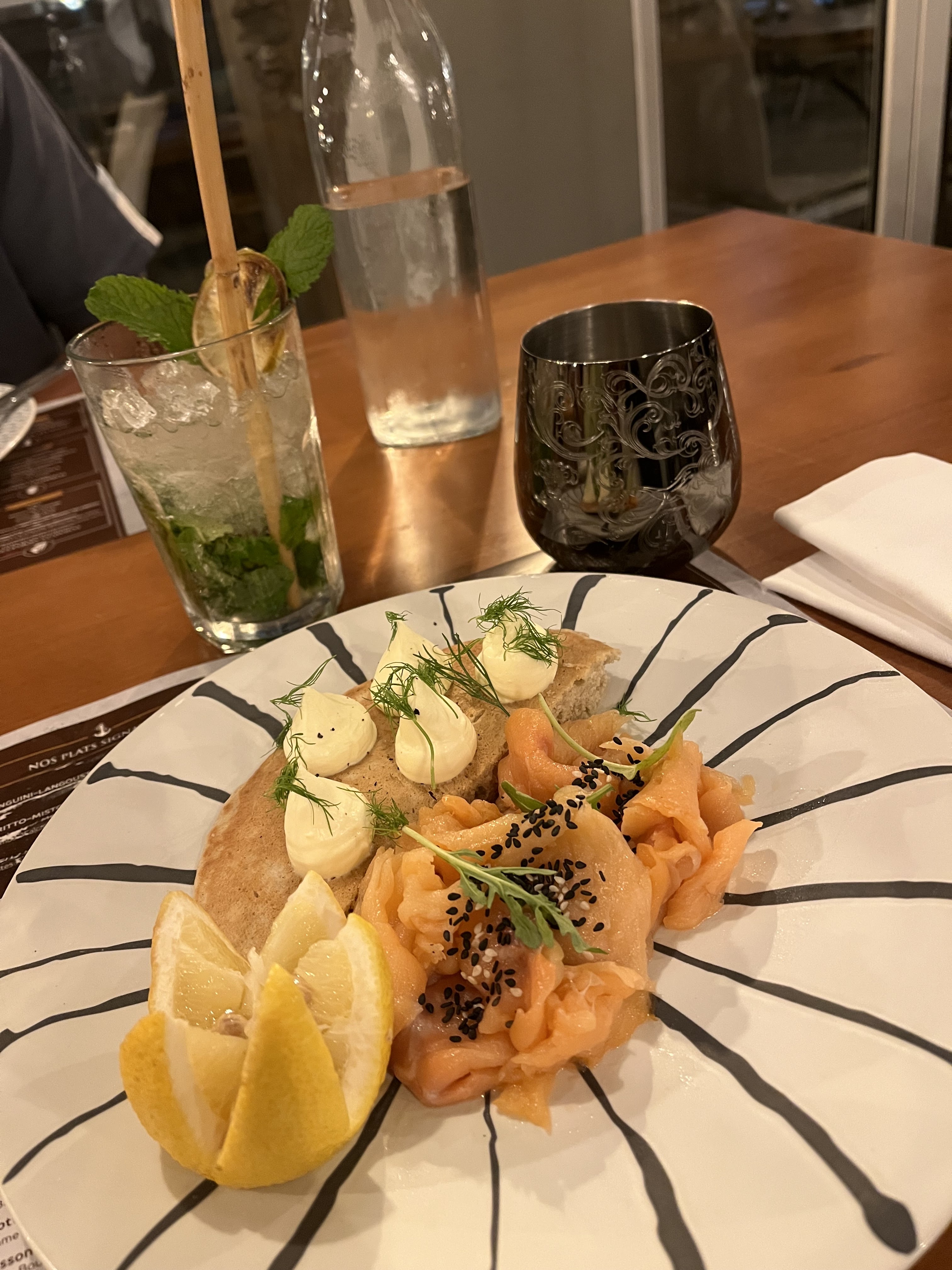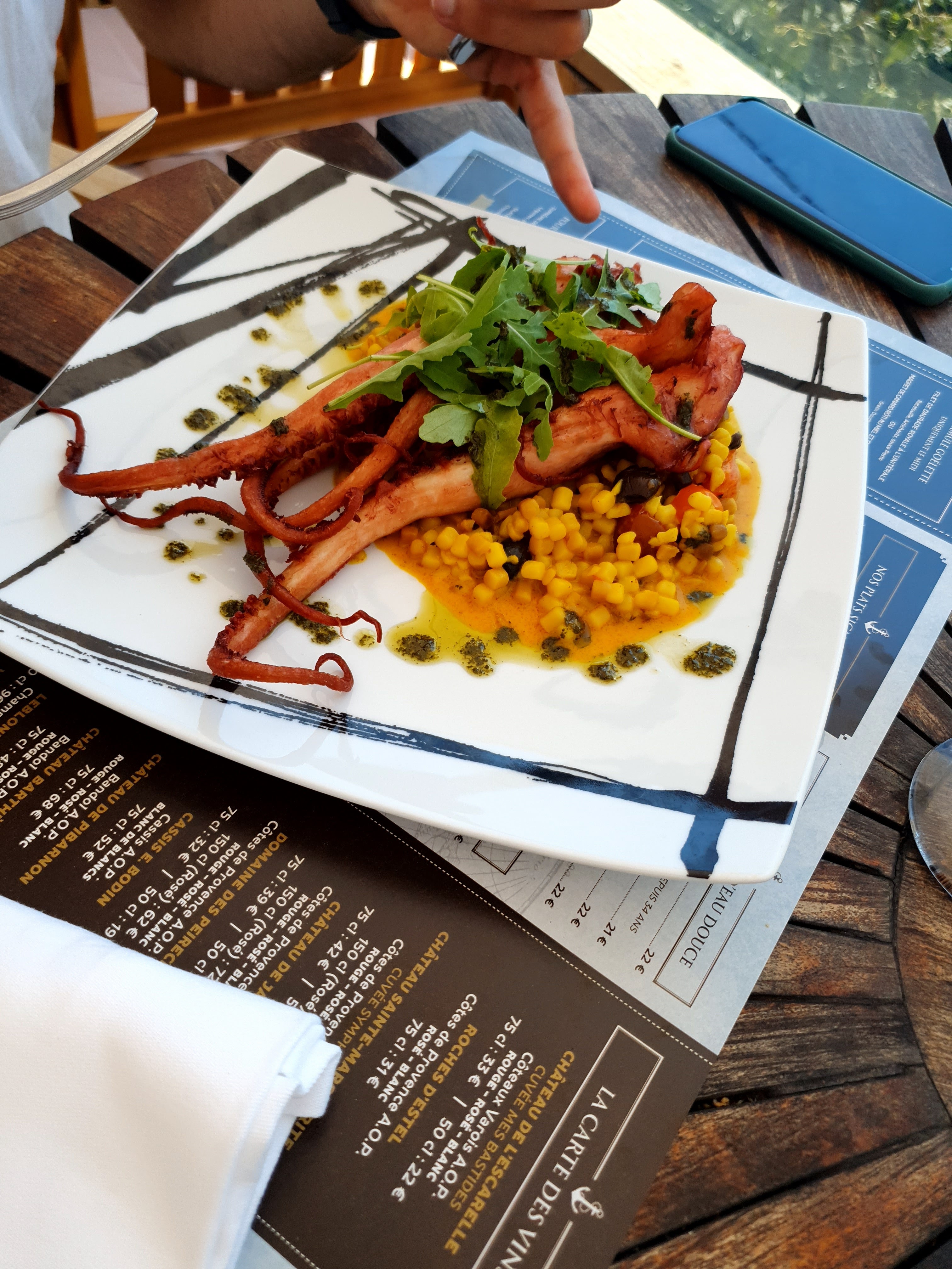 Tout était au top ! Je recommande fortement pour leurs produits de la mer, l'encornet géant était cuit à la perfection ! En plus de cela le personnel est très efficace et le service est très chic ! Pour manger de bons produits avec une belle vue je recommande a 100%