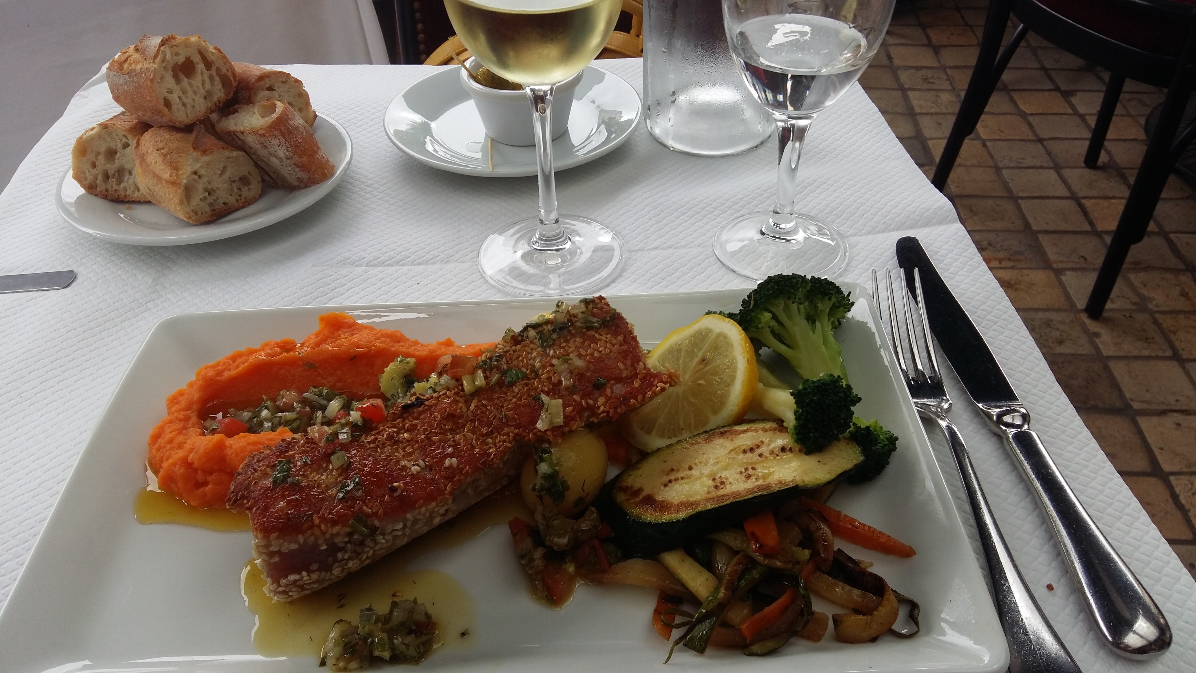 Une réussite du début à la fin. Tout était au top, les entrée, les plats et les desserts. De plus le personnel est AIMABLE, ça change de certains lieux ou c’est loin d’être le cas. Le saumon gravlax était vraiment bon et réussi, le poisson et la viande très bon et goûteux, les desserts originaux et réussis. Une tres bonne adresse à recommander.