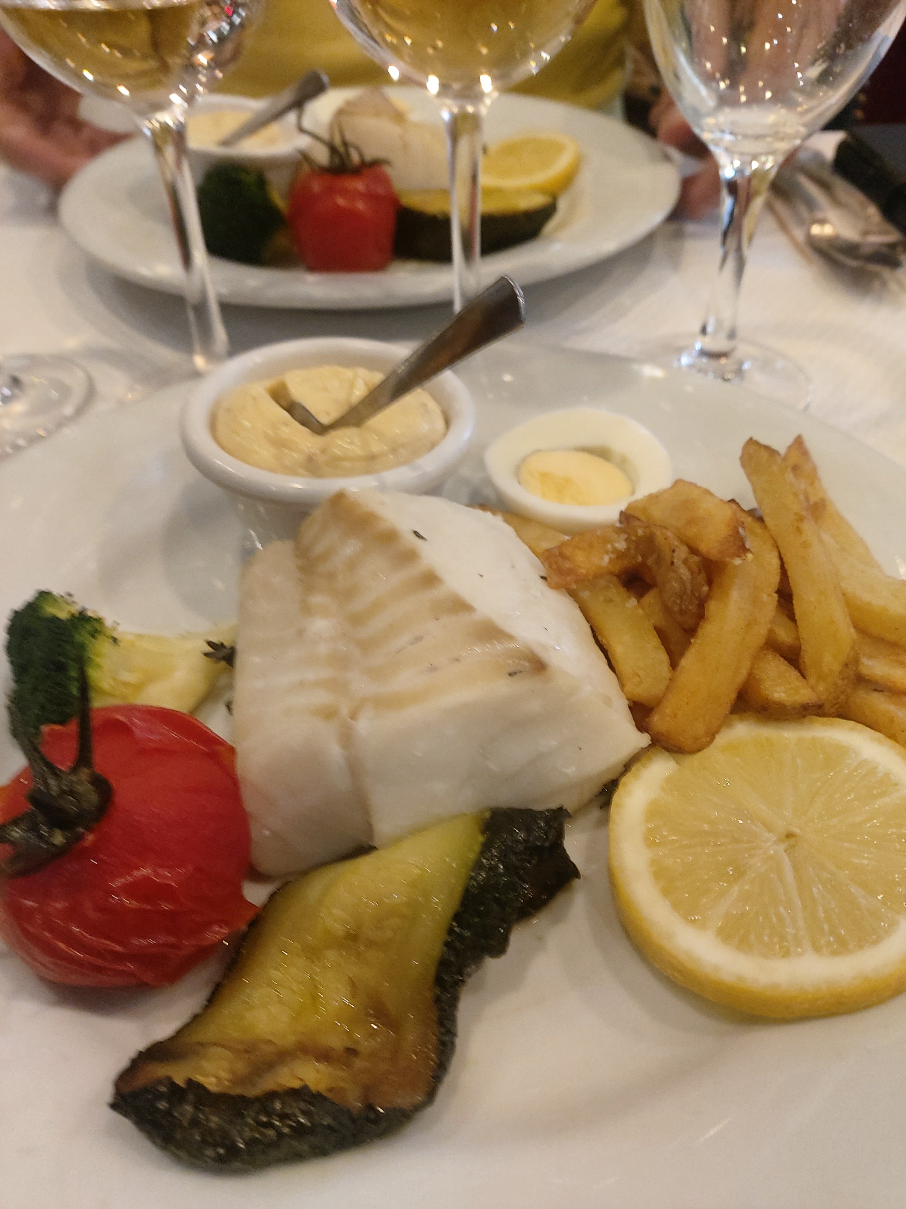 Très mauvais rapport qualité /prix Nous avons demandé à changer les verres, ils étaient sales. Nous avons payé très cher pour des plats mangeables mais sans plus. Le poisson était sans aucune saveur. Les cuisines sont sales, Ce restaurant fait le plein du fait de sa situation.