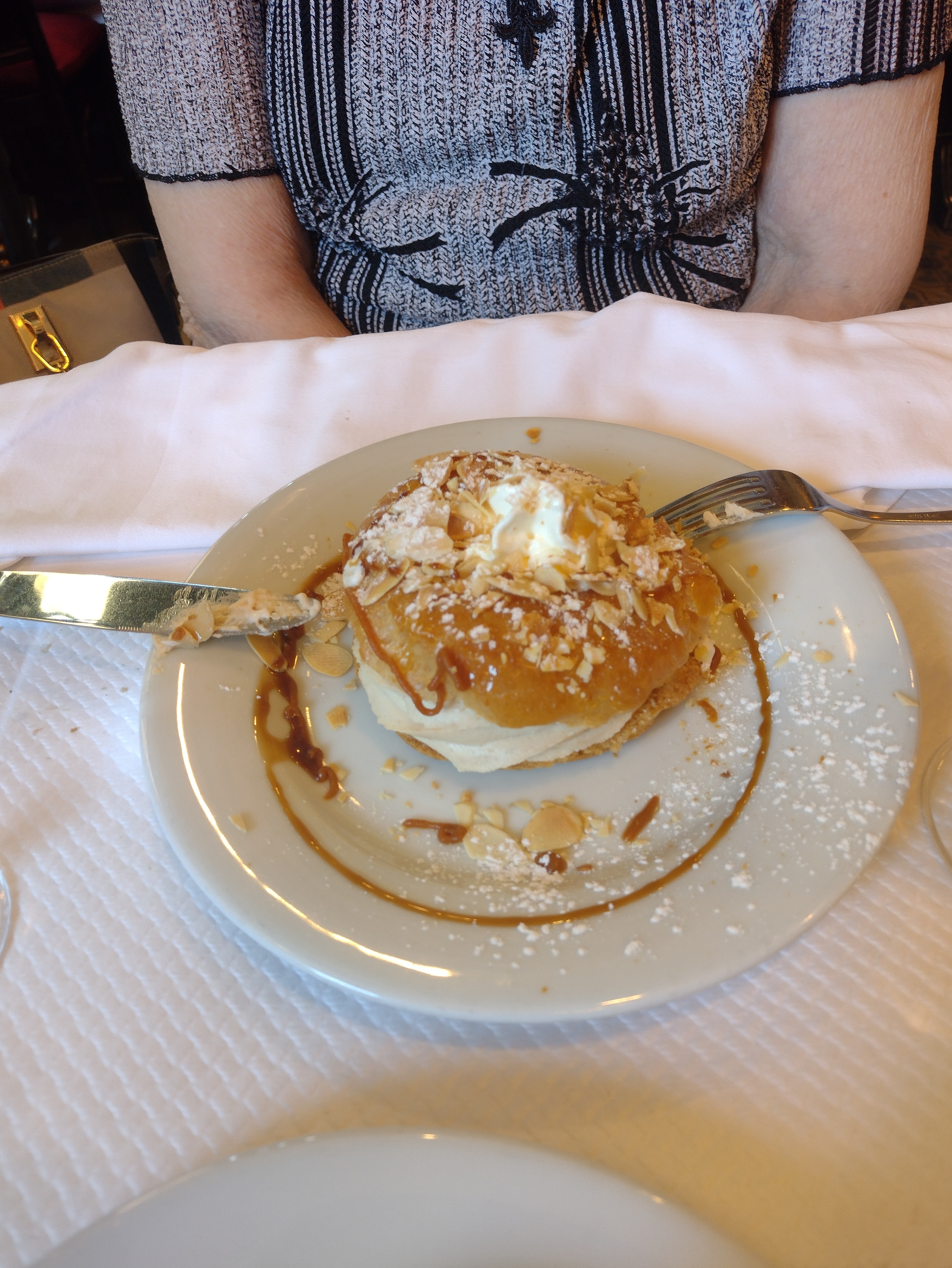Bien mal accueilli par la propriétaire parce-qu arrivés 15mn en avance et donc obligés d aller boire un verre ailleurs pour attendre.au retour 20mn après table qui venait juste de se libérer.. Superbe repas . escargots à la bordelaise et tournedos Rossini fabuleux. Serveur charmant et efficace.belle soirée