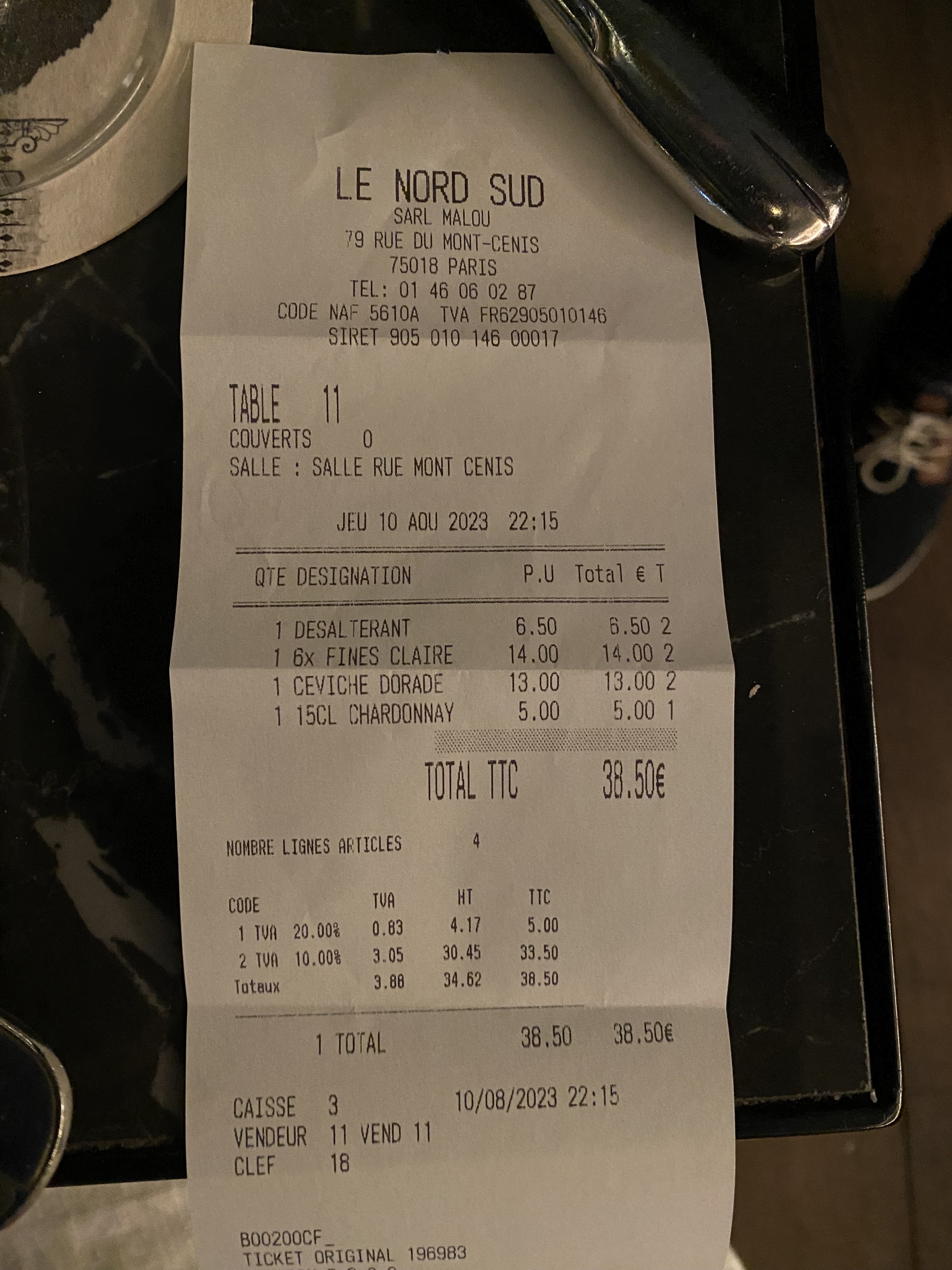 Endroit très agréable, c’était un plaisir d’être servi par Alice, très souriante et pleine de joie de vivre. Nous reviendrons très certainement au nord sud !