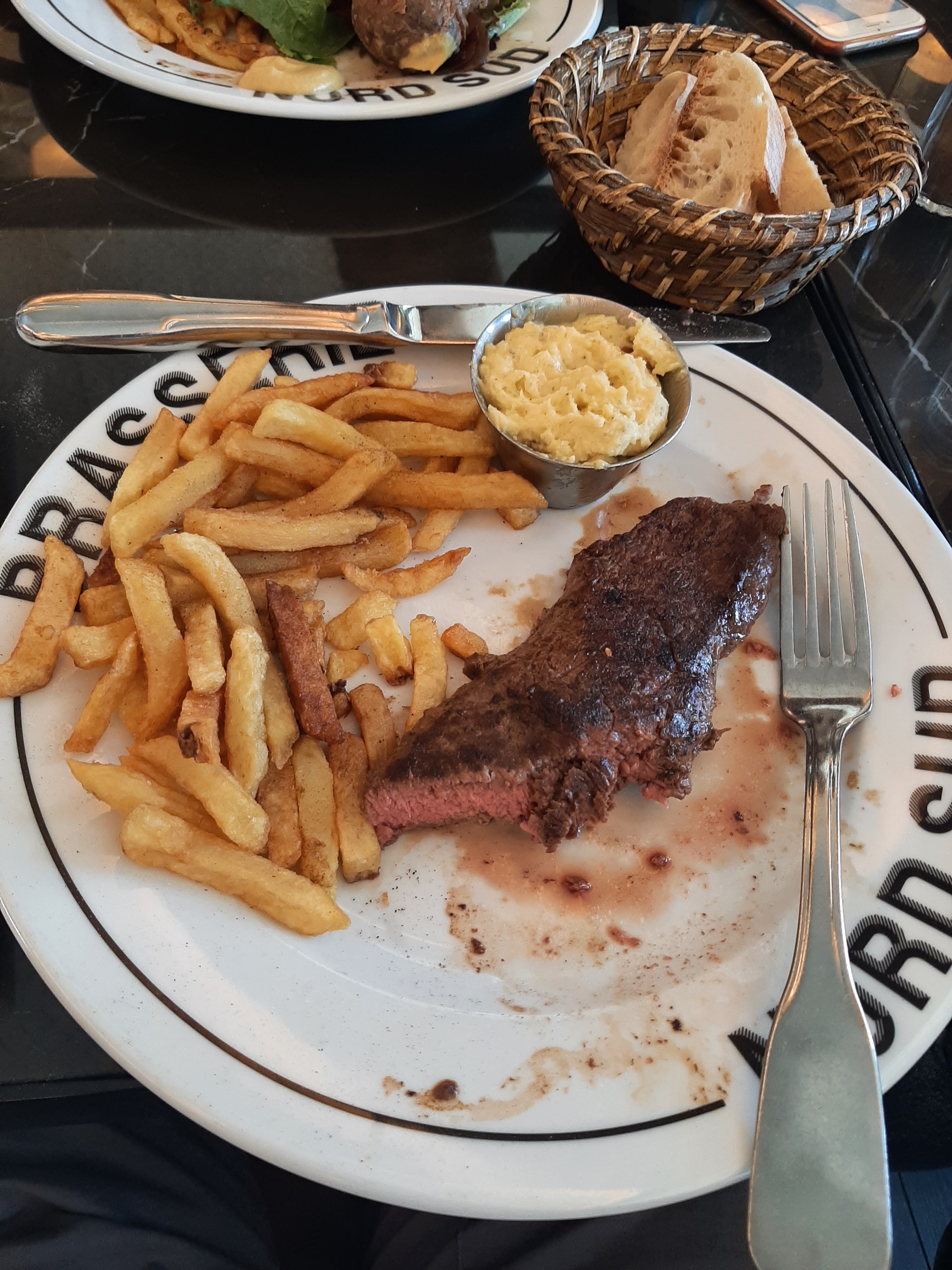 Aujourd'hui goûté l'axoa de porc accompagné de piments d'Espelette et de riz : succulent, sans oublier le service remarquable assuré par le sympathique Guilhèm. C'est toujours un plaisir de venir dans cette belle brasserie pour se restaurer ou se désaltérer sur la terrasse. Elle est bien à l'image de l'ancien Nord-Sud, Compagnie de Métro qui était synonyme de bon goût pour le décor de ses stations et la livrée de son matériel roulant.