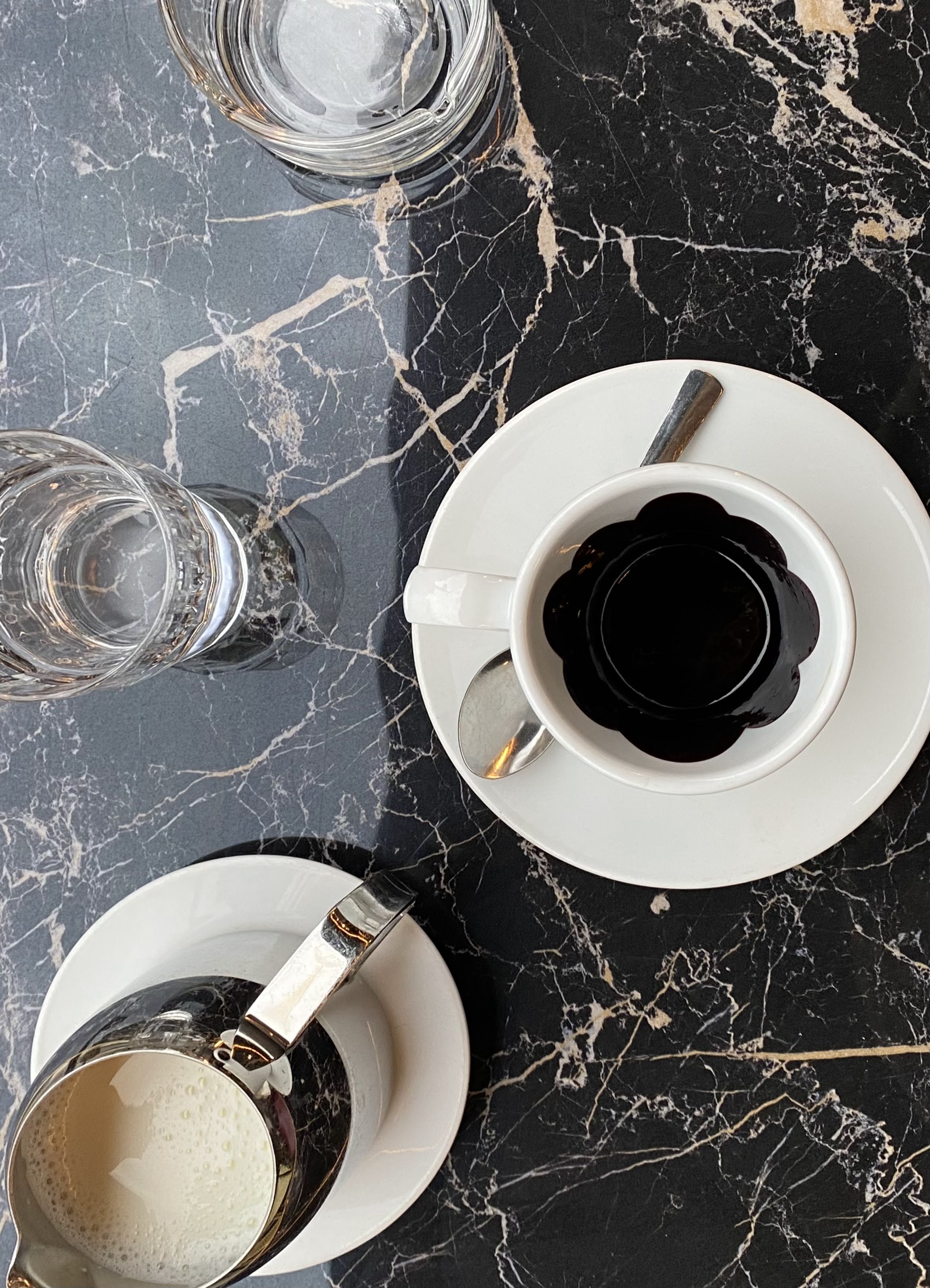 Le café est bon. J'apprécie l'ambiance du restaurant. Cela donne une ambiance à Manhattan. Endroit chic.