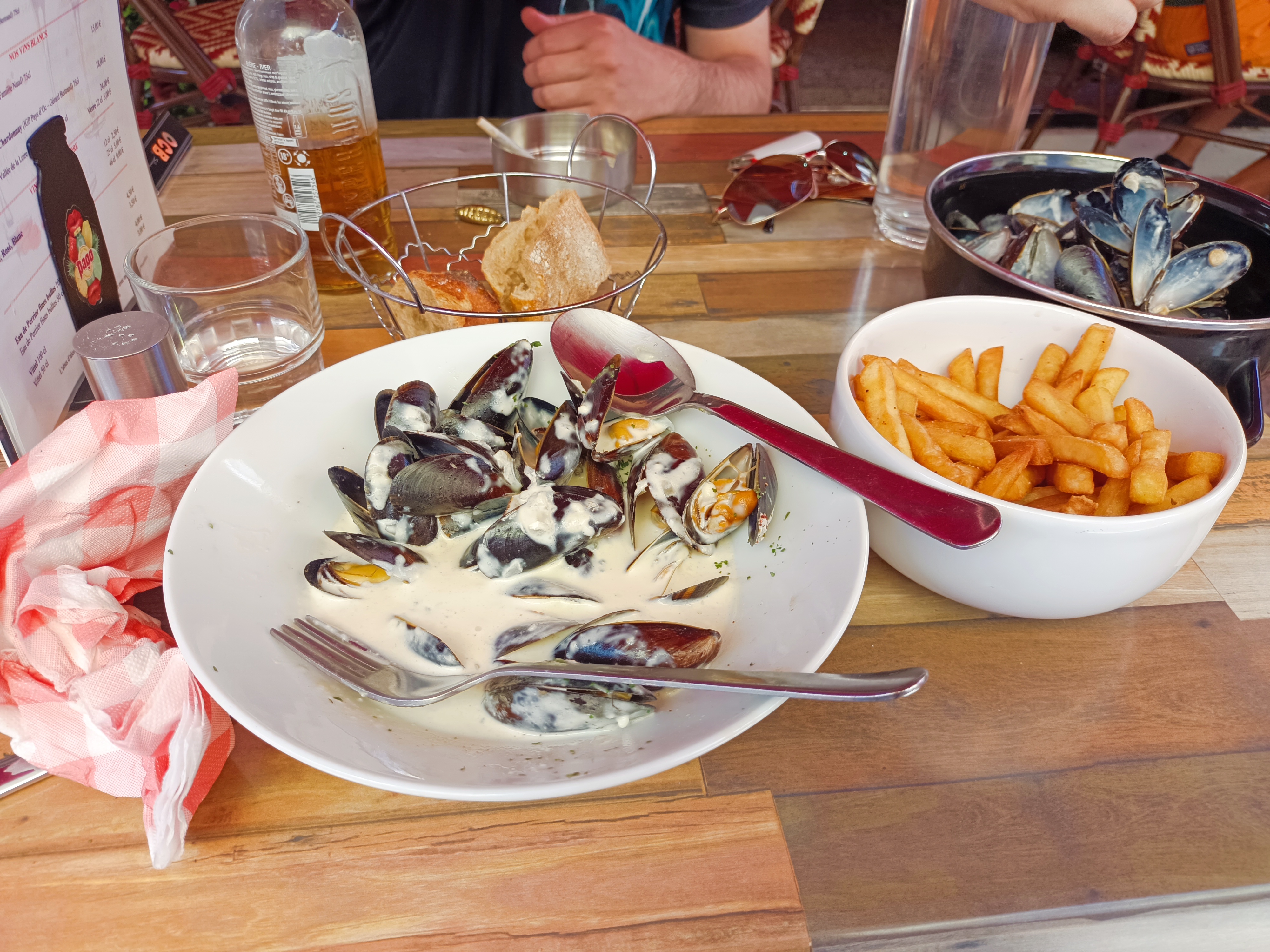 Repas à midi. Très bonnes moules, une vrai ambiance de petit bistrot. Merci beaucoup pour ce moment de convivialité