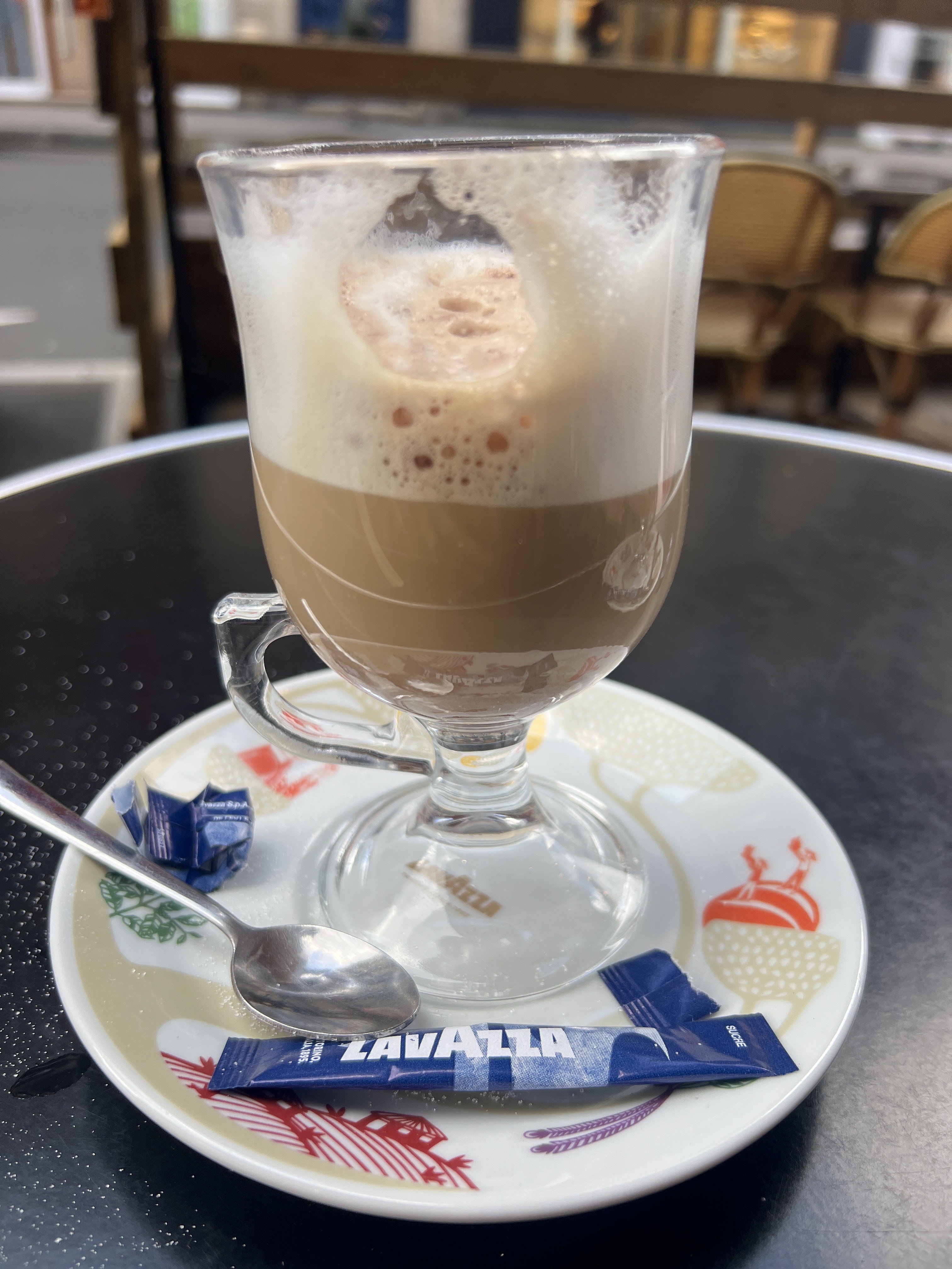 Serveur sympa et poli, j'ai demandé un mocha (pas courant en France) je lui ai décrit rapidement la recette et il a été très serviable et efficace. Café agréable et propre et situé idéalement dans le quartier de Sèvres. Et toilettes impeccables.
