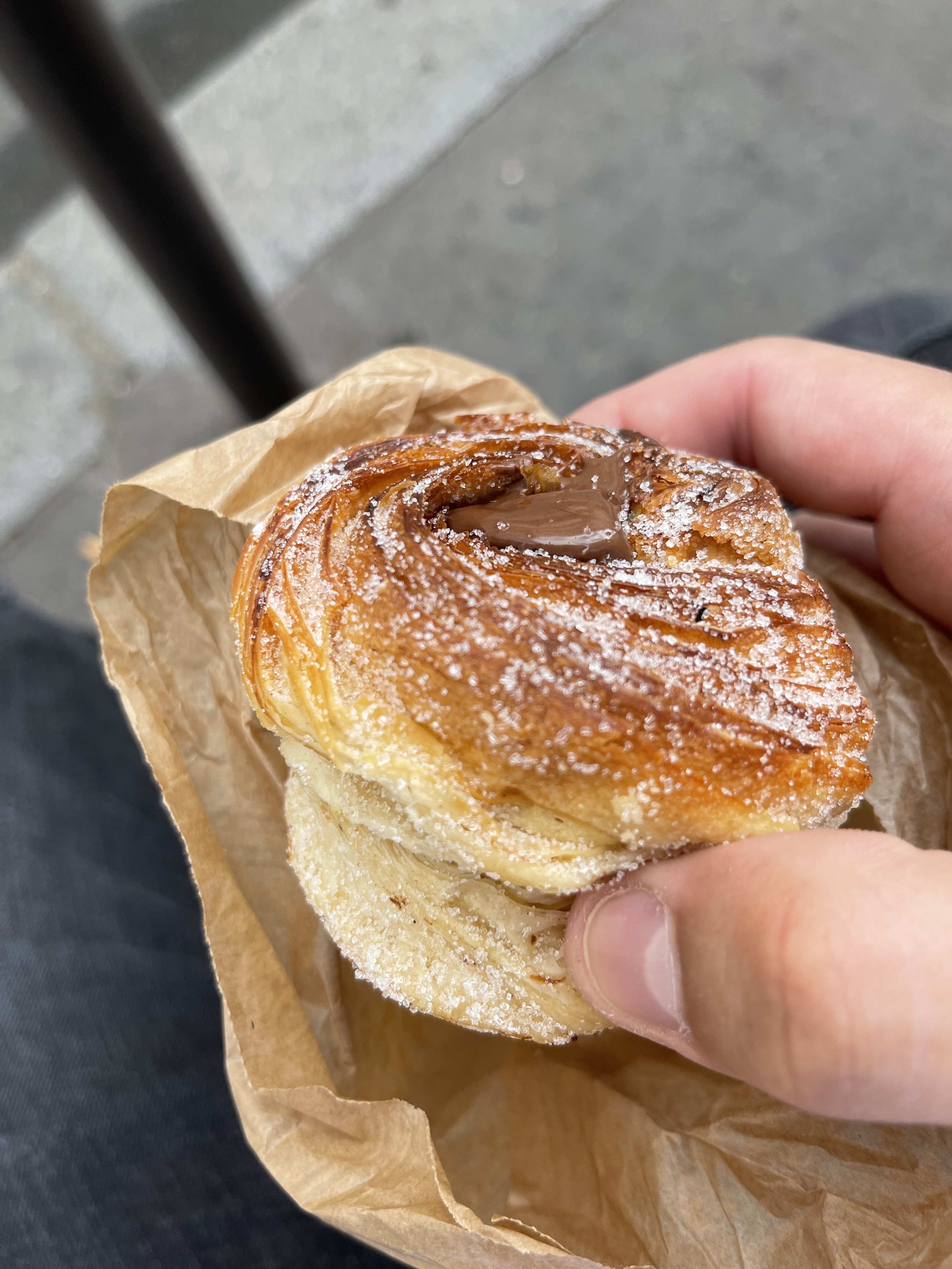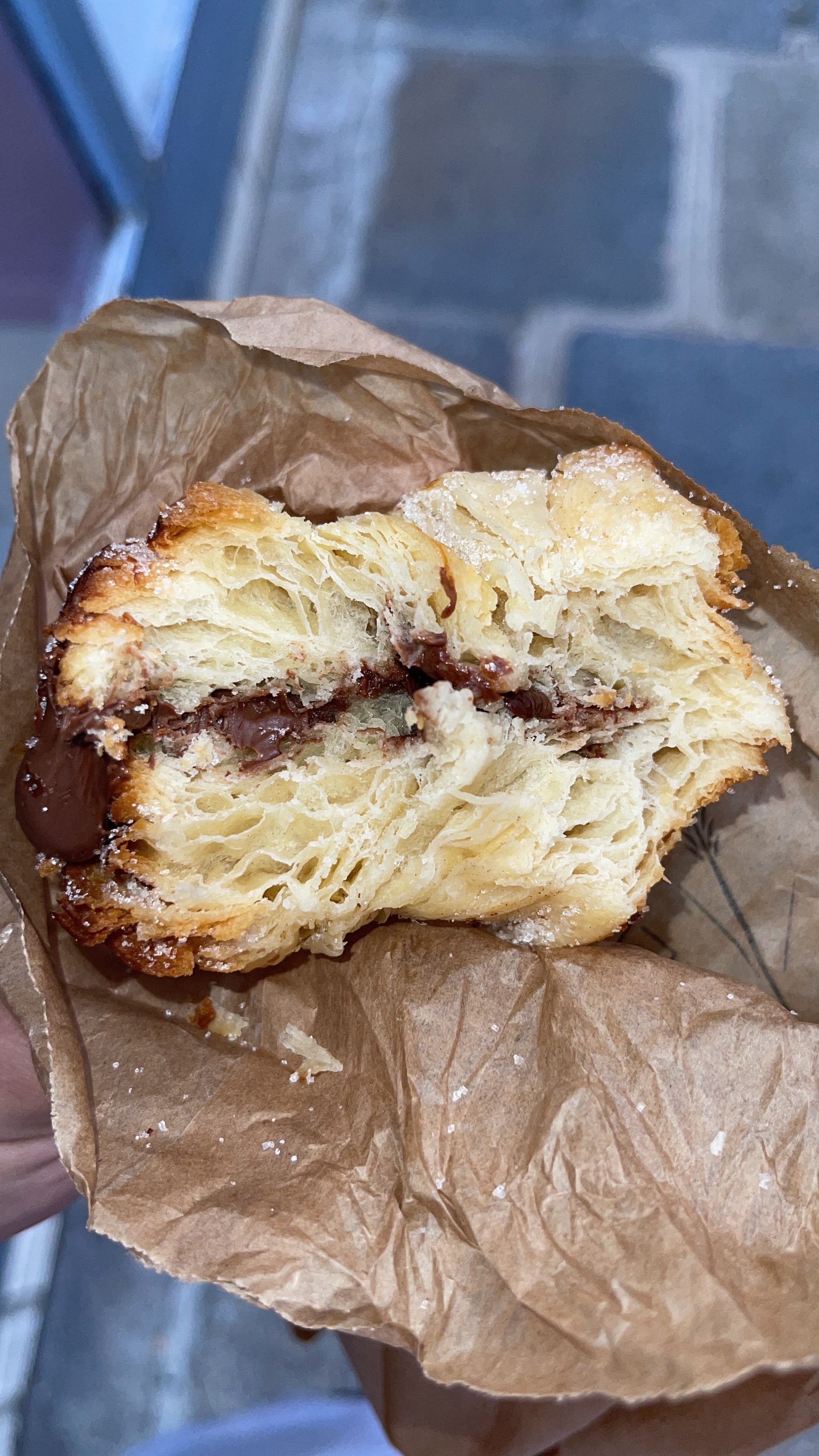 Dommage. Si ils n’ont plus de croissants à vendre ils vous interdiront d’aller à la boulangerie du coin. Tolérance et commerce à revoir selon moi. Capucino beau et bon.