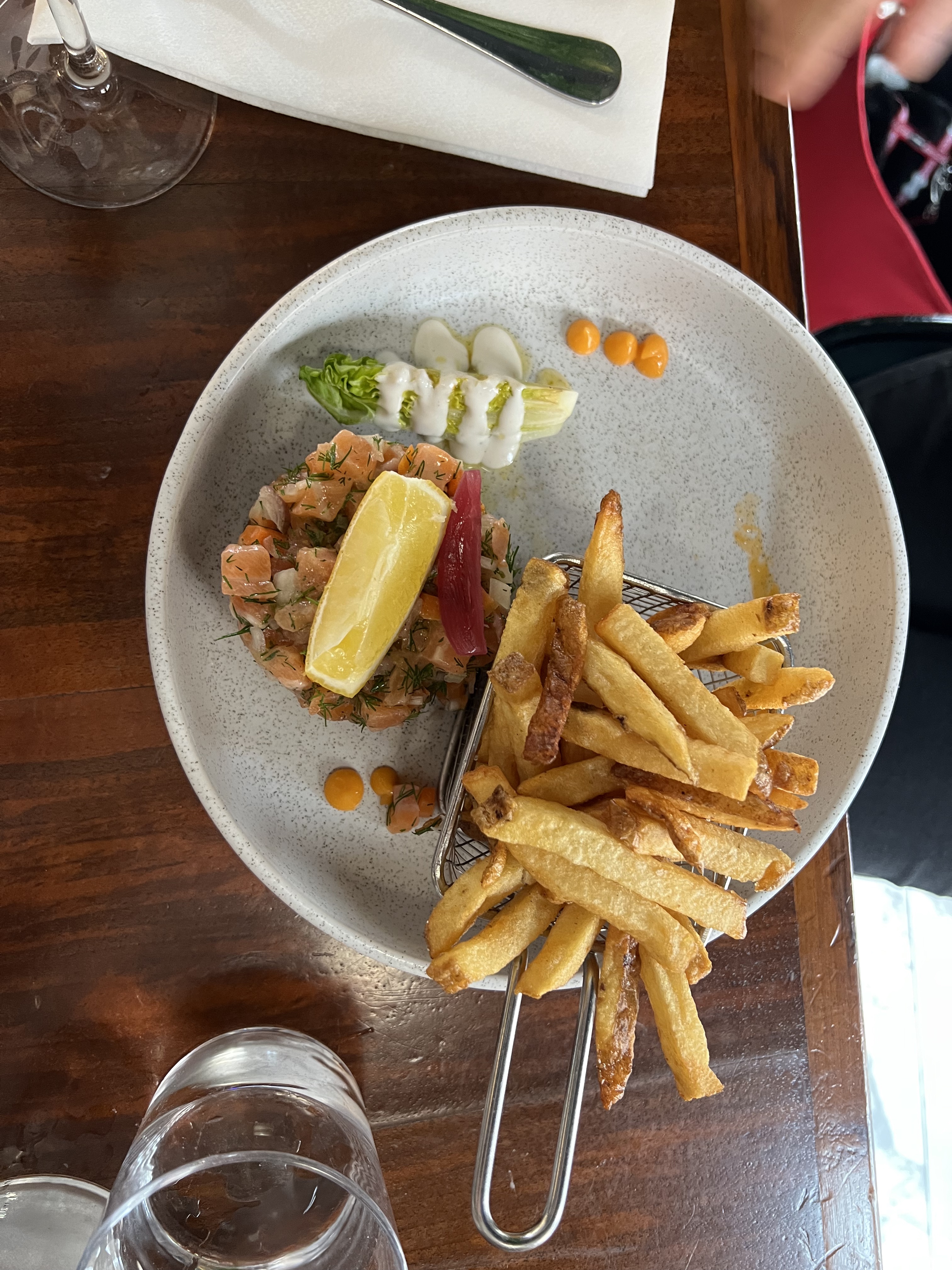 Étonnamment bonne. Normalement, je ne m'attends pas à une cuisine et à un service excellents dans un restaurant situé à proximité d'une gare, ce fut donc une découverte très agréable. Le menu est à un prix très raisonnable pour une excellente cuisine - ma femme a pris le tatar de thon et j'ai eu un pavé de saumon. Ils ont également été très accommodants lorsque nous leur avons dit que nous devions prendre un train. Nous avons complété le tout avec une sélection d'une bonne carte des vins.
