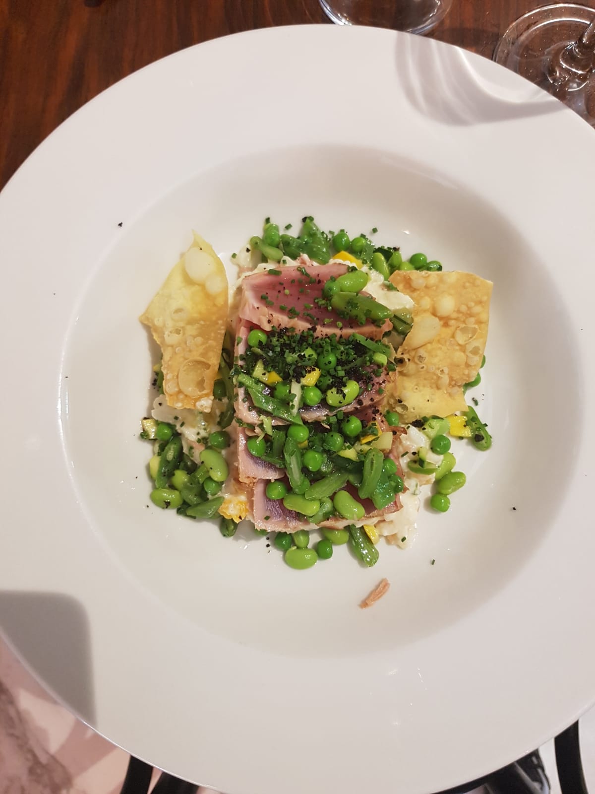 CHER , FRAIS , MAIS RIEN D'EXCEPTIONNEL les tables sont trop serrées , si vous réservez pour 3 vous avez 3 chaises , hahahah , difficile de mettre son manteau son sac a main car on est collé a l'autre table . c'est bon mais rien d 'exceptionnel , la déco est lambda ; le personnel est aseptisé comme le reste ; les prix sont trop élevés surtout pour le midi