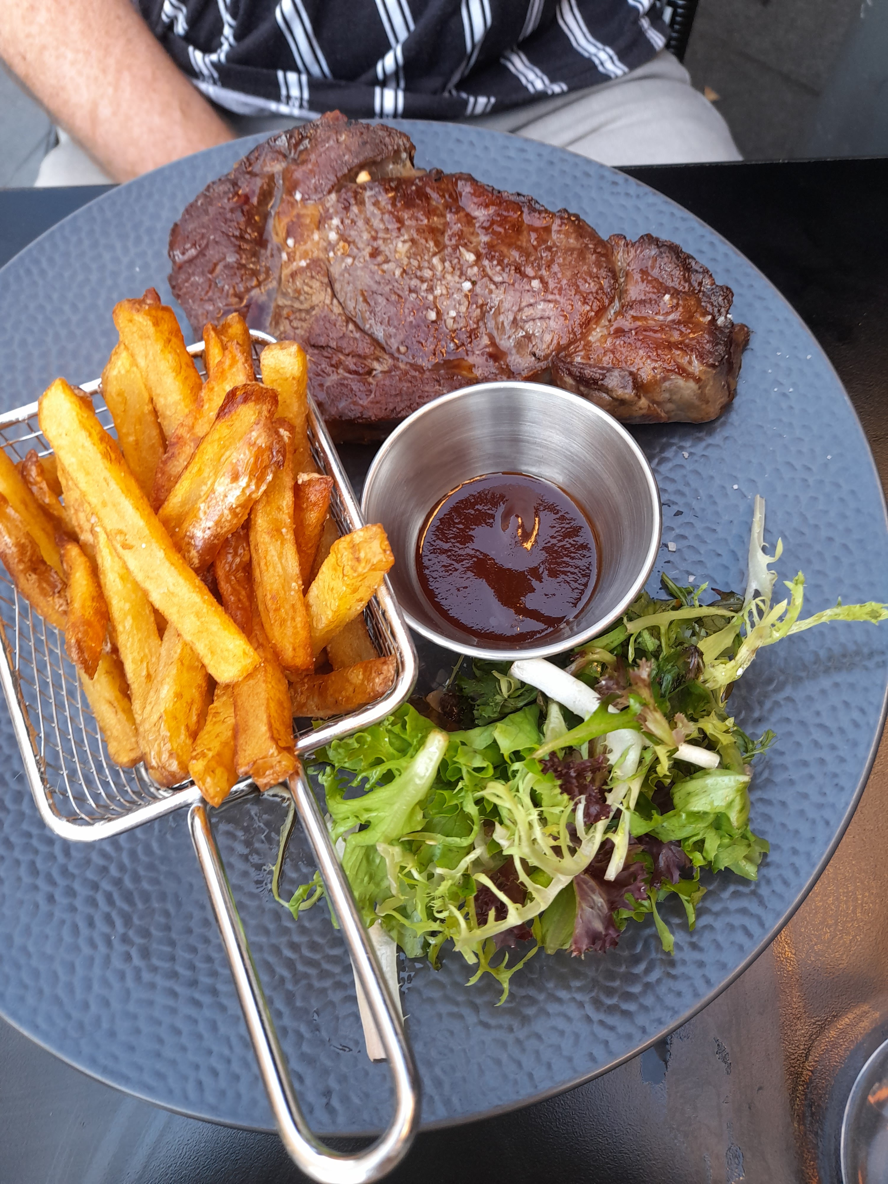 Bon restau, nous sommes venu sans réservation un samedi soir à 20h. Serveuse très gentille, souriante. Viande et salade très bonne. Dessert également. Merci à vous 👍