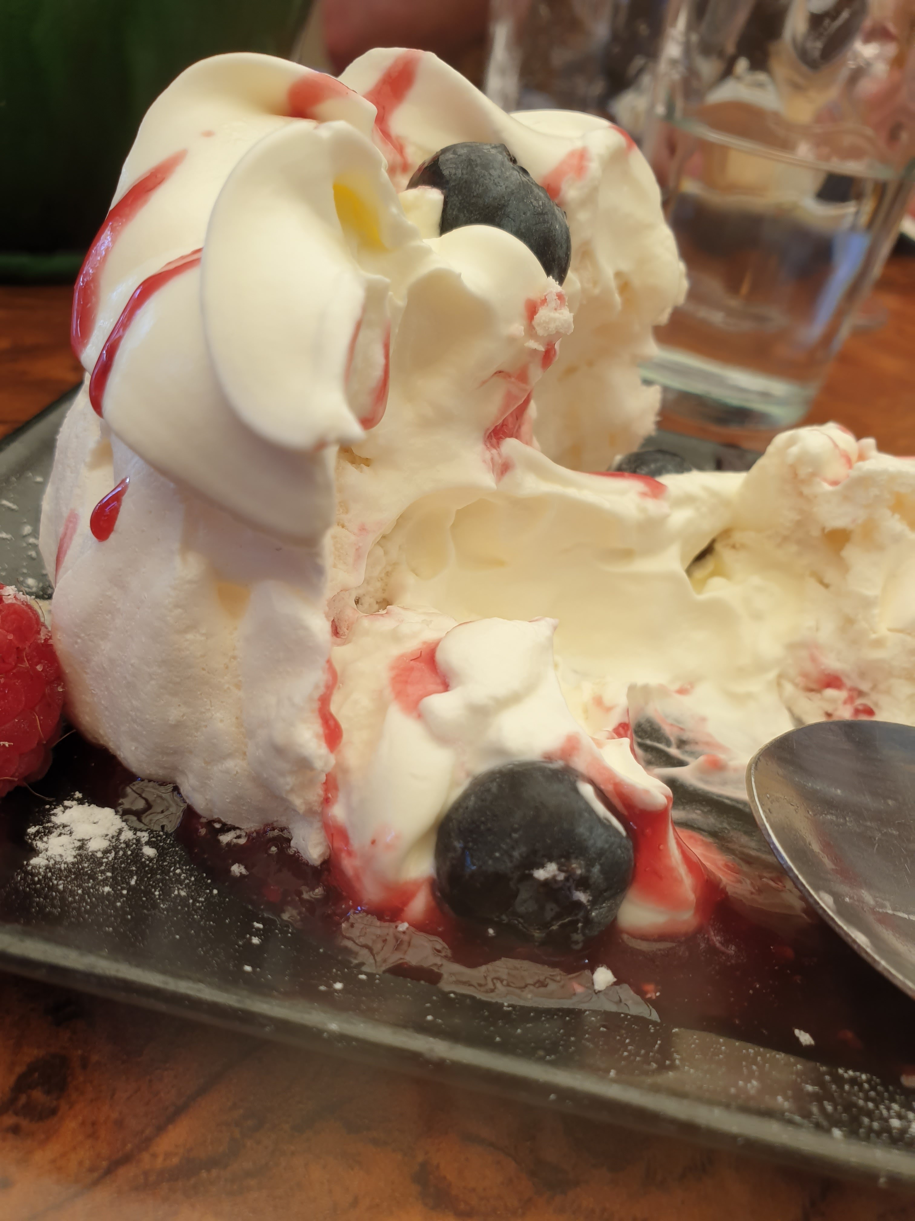 Un service d'une délicatesse extrême, nous avons pris une glace et la serveuse du nom exquis de Camille n'a pas eu la main morte sur la chantilly et ça, ÇA, ça fait zizir. Cependant, nosu avons été un peu chiffonné car la boule cœur de fraise n'a pas été accessible avant d'avoir fini la boule chocolat.