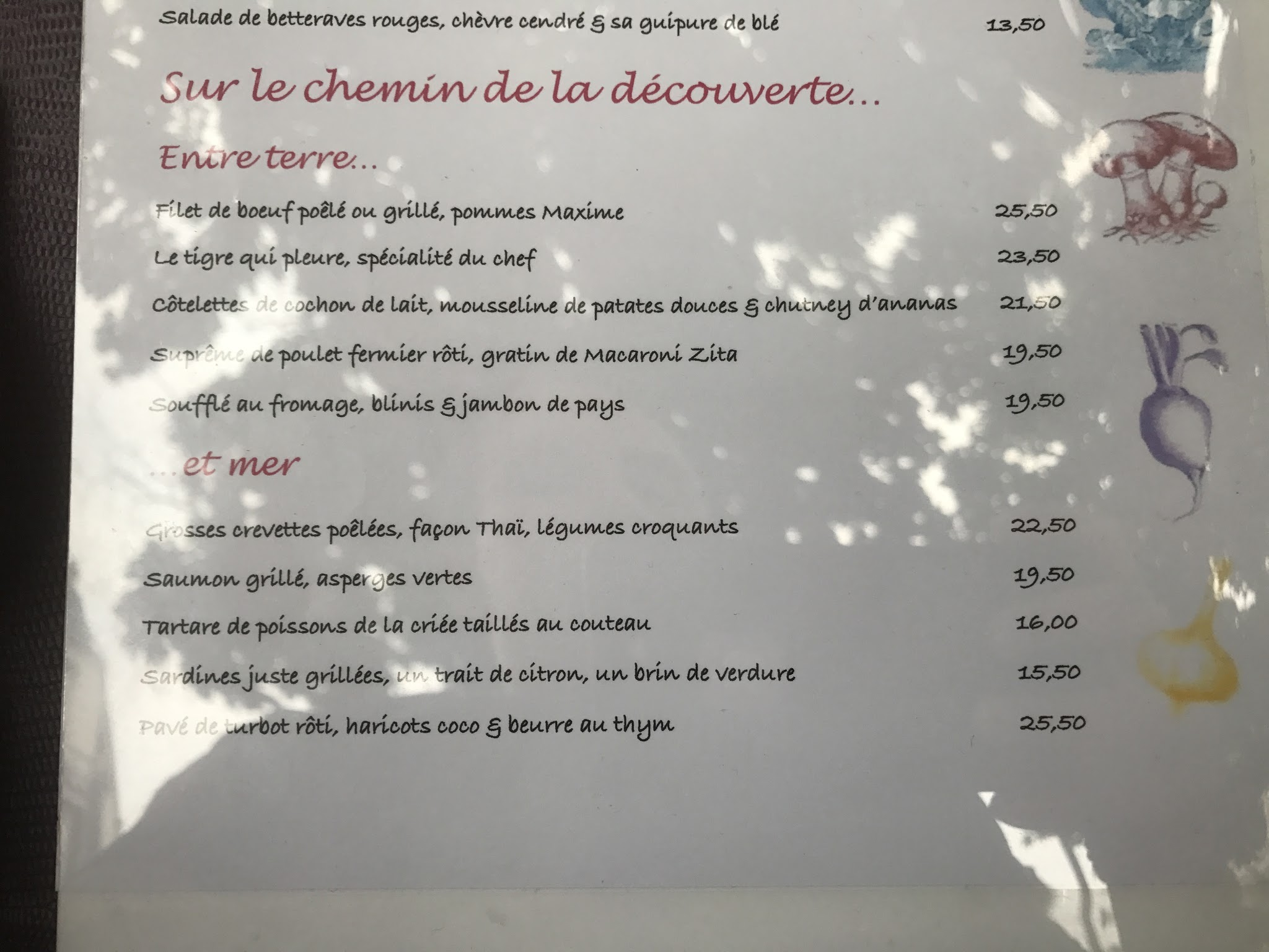 Un menu du jour à 23,50€ que ce soit en semaine ou le week-end. C'est un prix imbattable au regard de la qualité proposée. Un accueil chaleureux. Rien à dire de plus, sinon que nous y reviendrons pour essayer les plats à la carte cette fois !