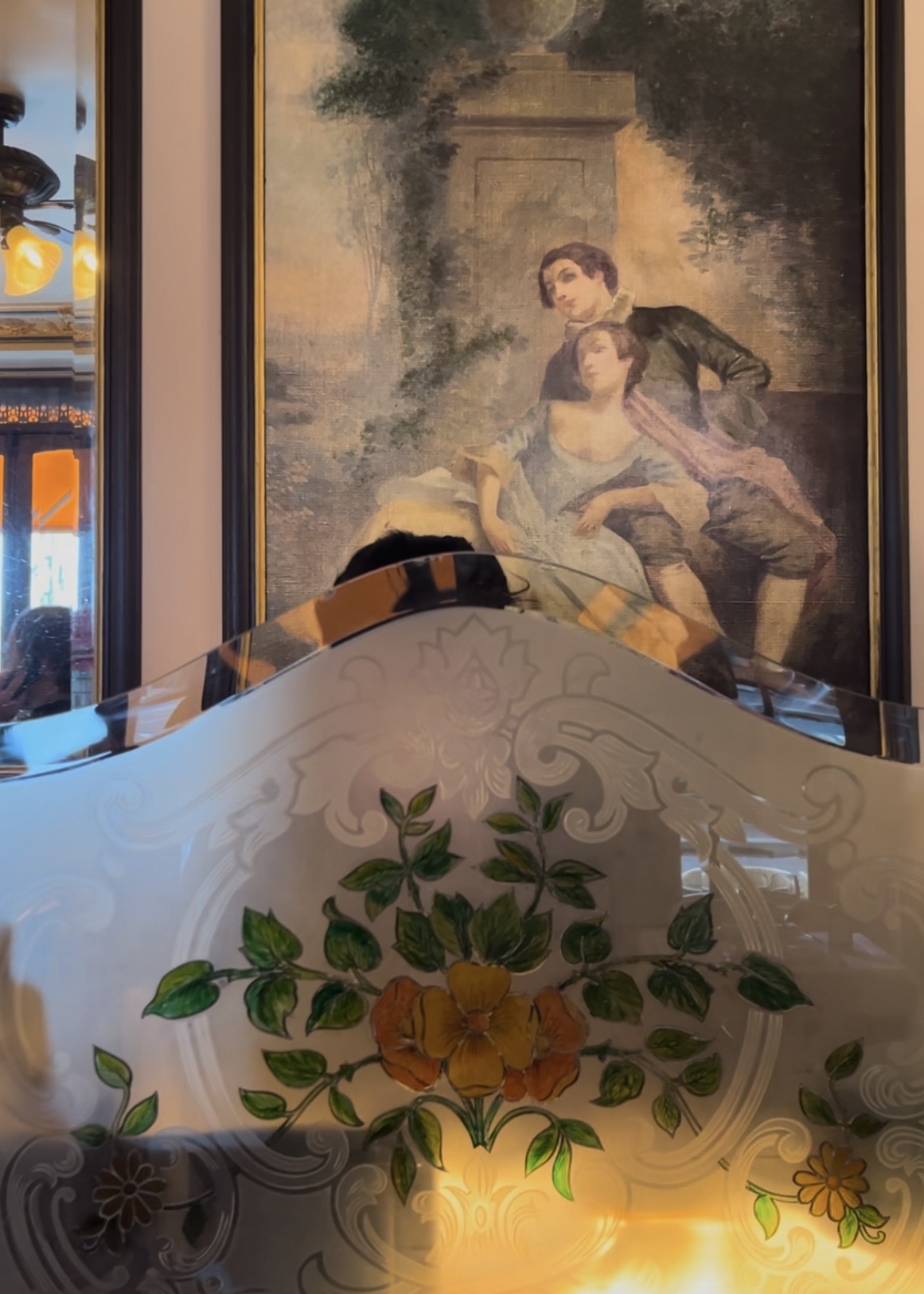 Les fresques pastorales et les moulures dorées à la feuille d'or sont restées inchangées depuis plus de 40 ans. Il est pourtant devenu l'un des lieux les plus branchés de la Rive Gauche avec sa clientèle d'habitués, drainée par les magasins de luxe ou les sièges sociaux des entreprises voisines. Dans une ambiance feutrée, vous pourrez déguster une cuisine française généreuse et légère, travaillée avec de bons produits. Les tables sont bien dressées, le service impeccable. On vient ici pour se faire plaisir sans limites et redécouvrir les vraies valeurs de la gastronomie française dans une cuisine de partage. Autour de grandes tables conviviales, on discute de mode, de politique ou de finances. Les styles se mélangent facilement, l'ambiance est toujours à la bonne humeur.
