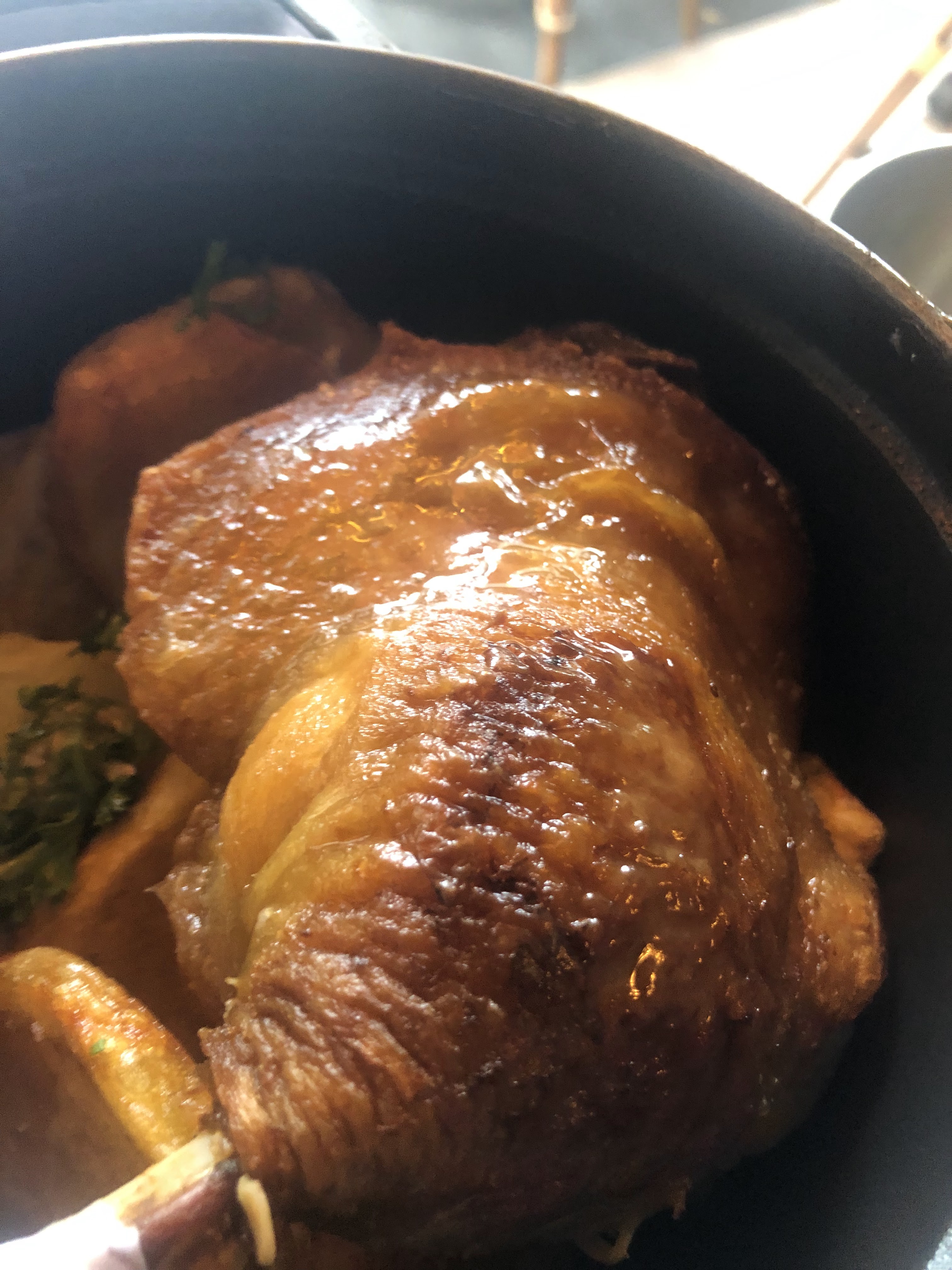 Service agréable avec un sourire chaleureux tout autour surtout quand on ne parle pas français 7/10 Pain + beurre, comme toujours en France - 10/10 Confit de canard - très bien cuit 7/10 Pommes de terre sautées - très croustillantes et non grasses - même si l'ail cru était accablant 6/10 vin 7/10 Je reviendrai comme étant mon restaurant de quartier