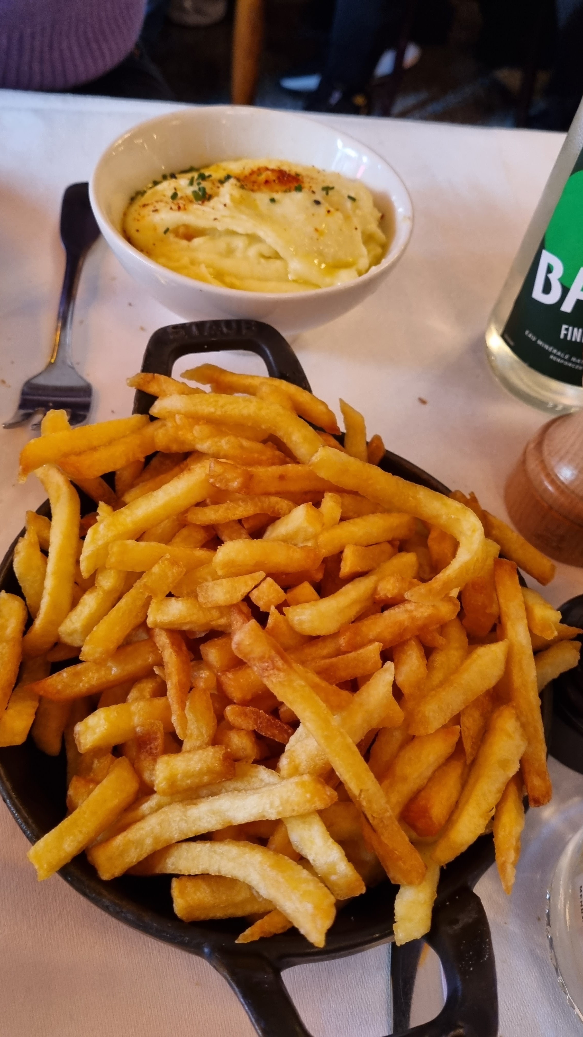 J'adore l'ambiance et le service! Le personnel est sympathique et pour la nourriture, vous avez le choix entre une variété de plats savoureux ! Mes préférés jusqu'à présent étaient : Escargots en entrée (8,5/10) Cuisses de grenouille (elles sont très farcies donc super savoureuses : 9/10) Rigatoni aux morilles (cuit aldente à la perfection : 9/10) Confit de canard (très tendre : 8/10) Pour le dessert nous avons eu la tarte au citron et la mousse au chocolat qui était 🤤
