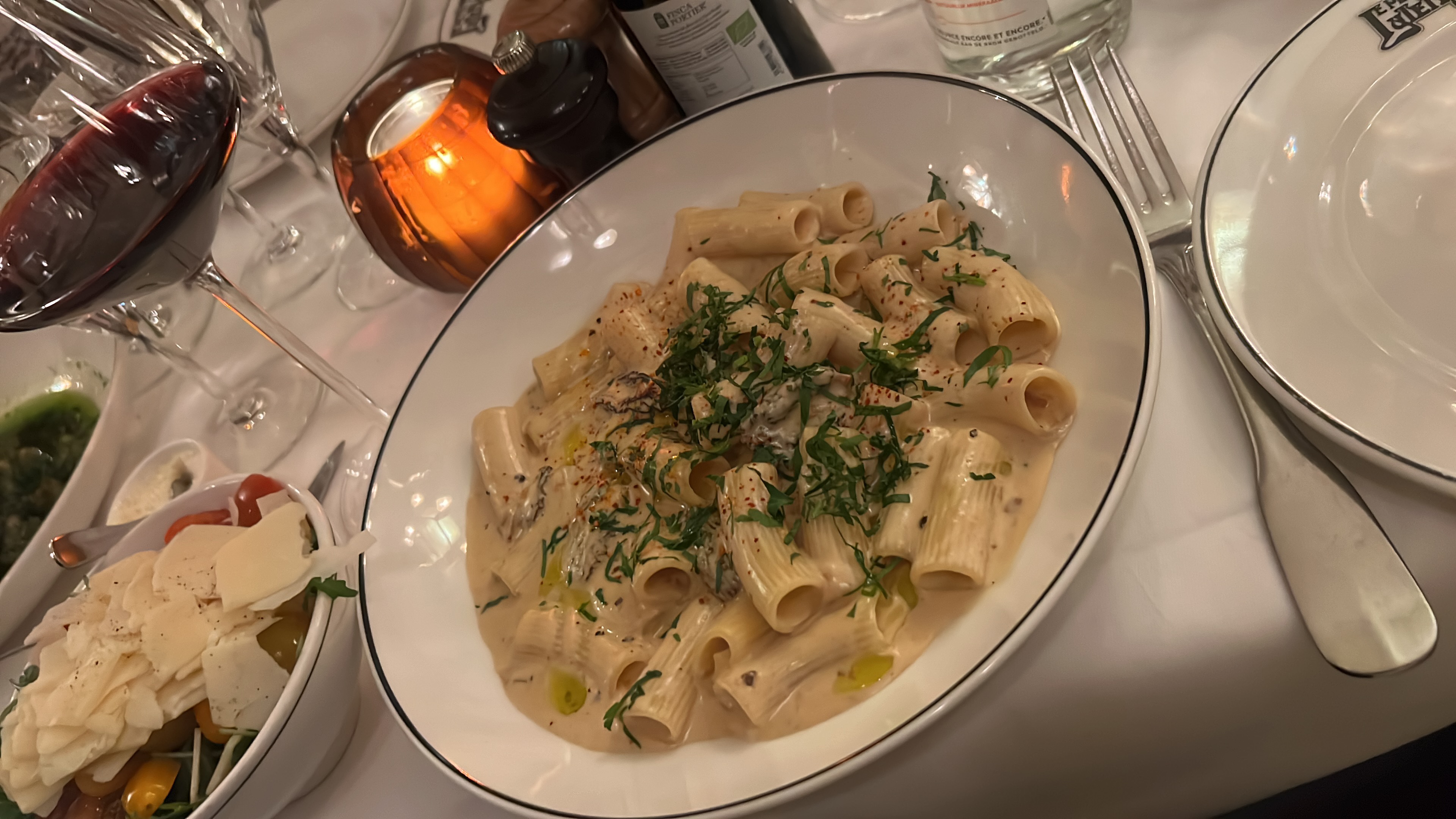 J'ai visité le restaurant sur la base des recommandations d'un ami local. C'était l'un des meilleurs repas que j'ai pris pendant mon séjour à Paris. J'ai commencé avec du tartare de bœuf, de la moelle osseuse et des poireaux. Pour mon plat principal j'ai commandé les rigatoni, c'était parfait et crémeux. Terminé avec des desserts incroyables, le Paris Brest était incroyable et la mousse au chocolat était très grosse, assez pour être partagée avec un grand groupe.