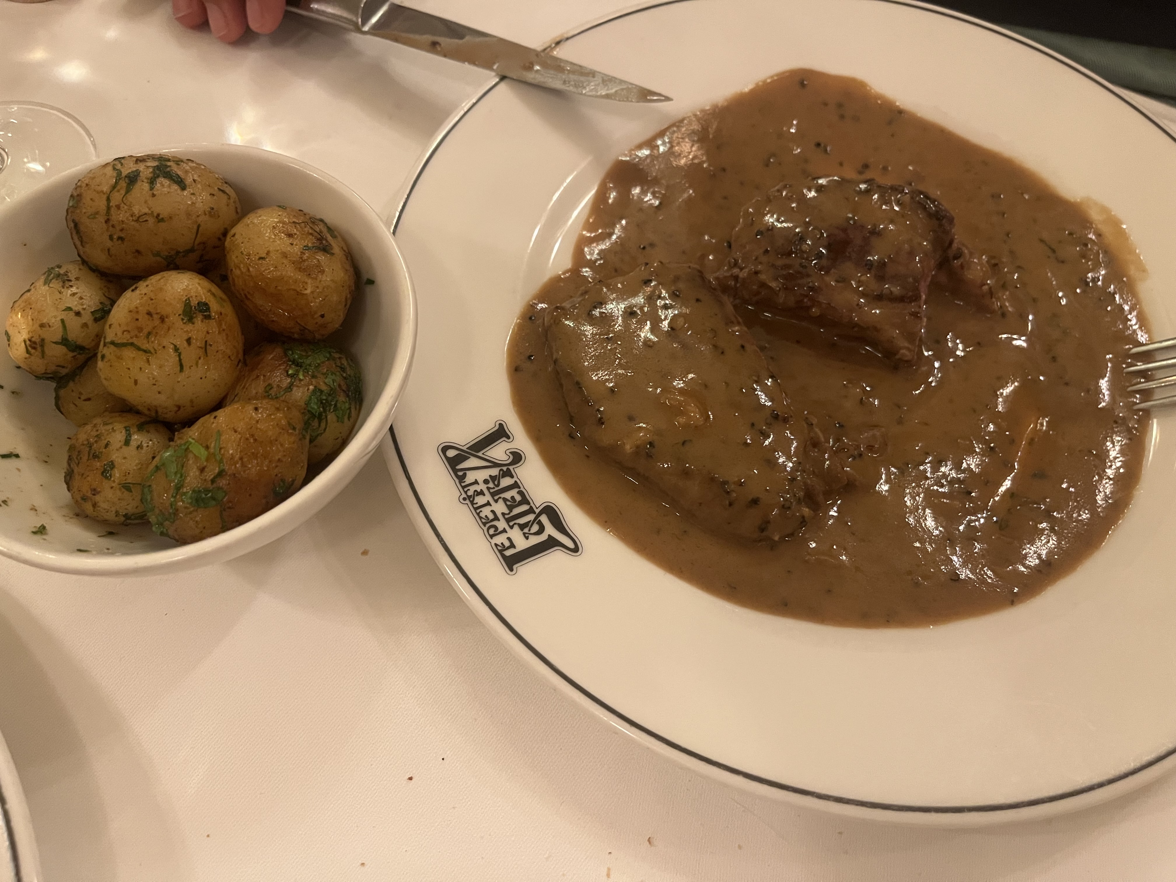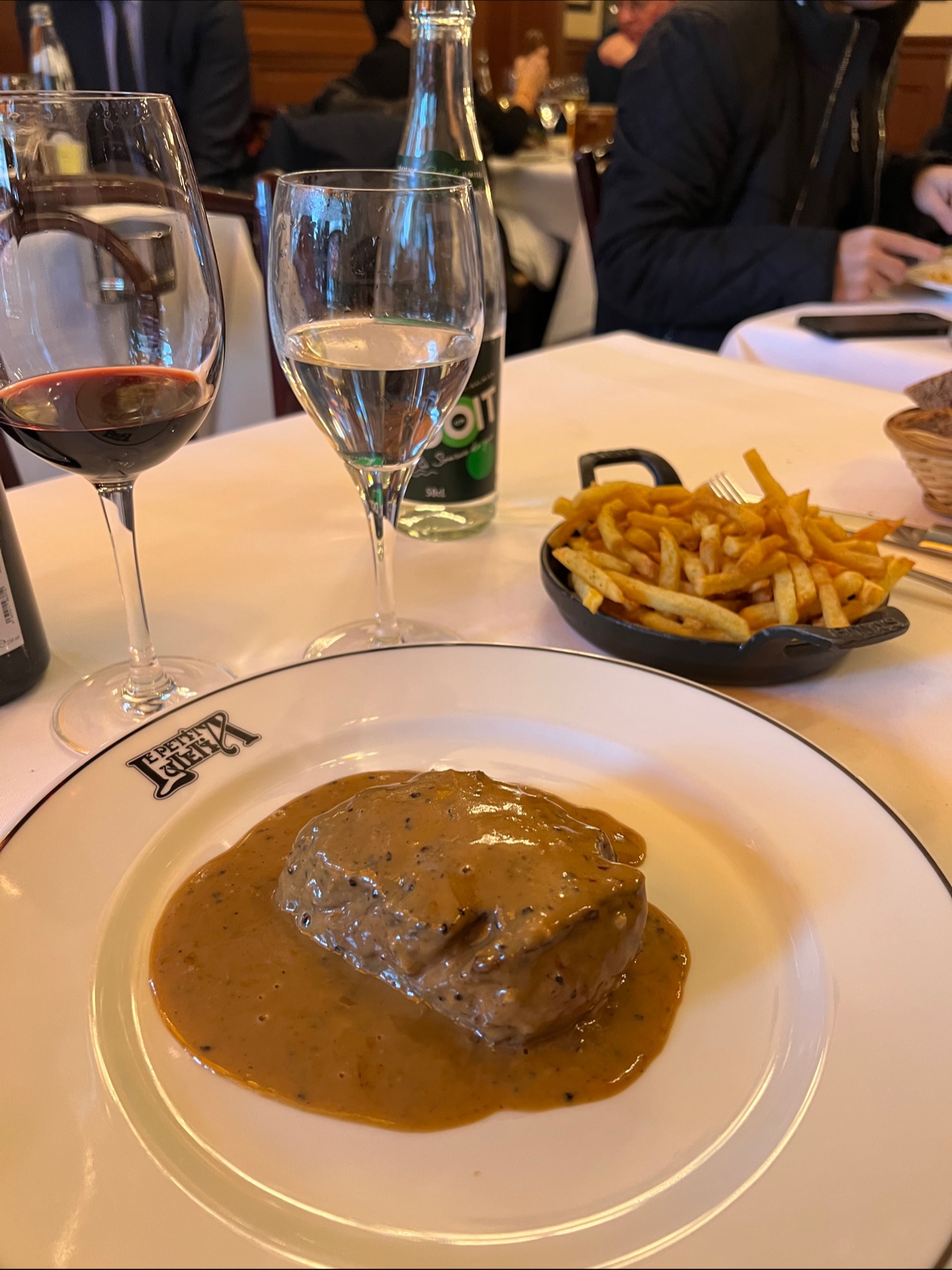 Cela fait quelques années que je voulais essayer ce restaurant mais il me manque toujours lors de mes voyages à Paris. J'ai décidé d'en faire une priorité cette fois-ci et cela n'a certainement pas déçu. C’est agréable qu’ils proposent de délicieux vins et champagnes au verre, et la nourriture est exceptionnelle. Je penserai longtemps au filet mignon au poivre ! Du début à la fin, tout était exceptionnel, y compris le service, la nourriture et l'ambiance. Recommande fortement!