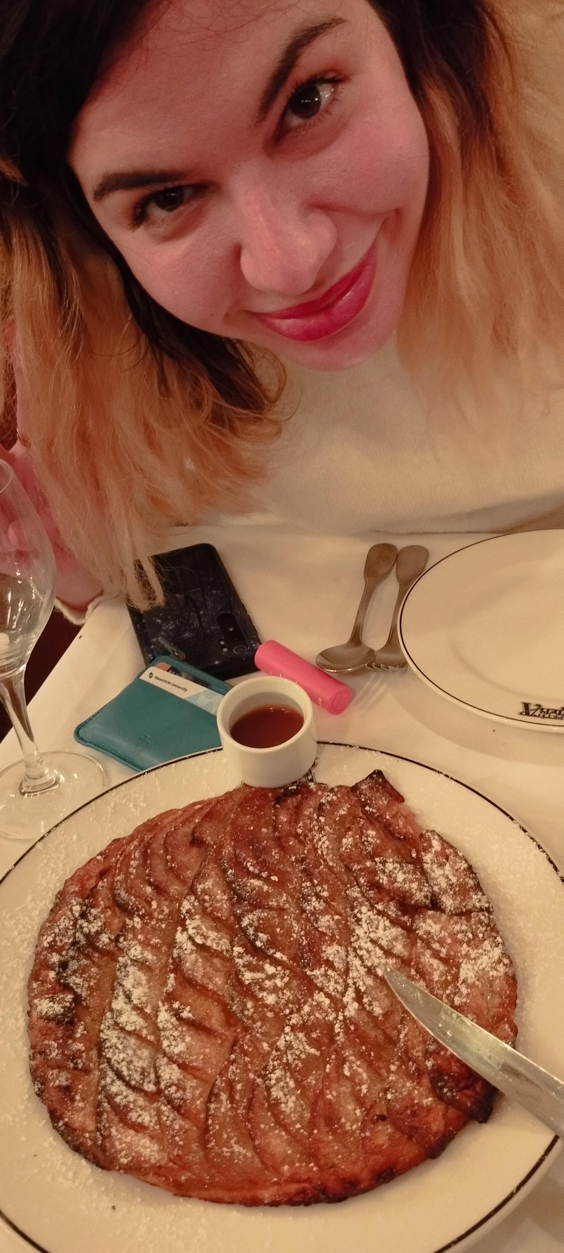 Endroit très exquis et cher mais avec une nourriture et un service de très haute qualité. Réservation à l'avance recommandée. Nous avions une réservation pour 5 personnes à 21h30 mais on nous a attribué une table seulement à 22h00. Nourriture : Absolument incroyable. Il n’y a pas une seule chose négative à dire. Mes escargots étaient délicieux mais je suis resté sans voix devant les cuisses de grenouilles qui activaient des récepteurs de saveurs que je ne connaissais pas. En dessert j'ai demandé la « tarte aux pommes très fine » m'attendant à ce qu'elle soit légère et petite, mais elle était immense mais tellement bonne (voir photo). Service : Prestation de très haute qualité. La meilleure qualité possible. Les serveurs sont extrêmement bien préparés et sont très gentils et efficaces. Ambiance : Ceci est mon opinion personnelle qui est subjective. Je trouve l’ambiance très bruyante au point qu’il est impossible d’avoir une conversation, ce que je n’aime pas. De plus, il est typiquement français que tout le monde mange assez près de la table voisine, mais ce restaurant passe au niveau supérieur et dresse des tables pour 2 ou 3 personnes dans de très petits espaces assez proches les uns des autres. Encore une fois, c’est un peu un choc culturel pour moi et si c’est quelque chose qui ne vous dérange pas, tout ira bien. Dans l’ensemble, c’est une expérience gastronomique avec une cuisine exquise et un service de haute qualité avec une cuisine typiquement française que vous ne regretterez pas.