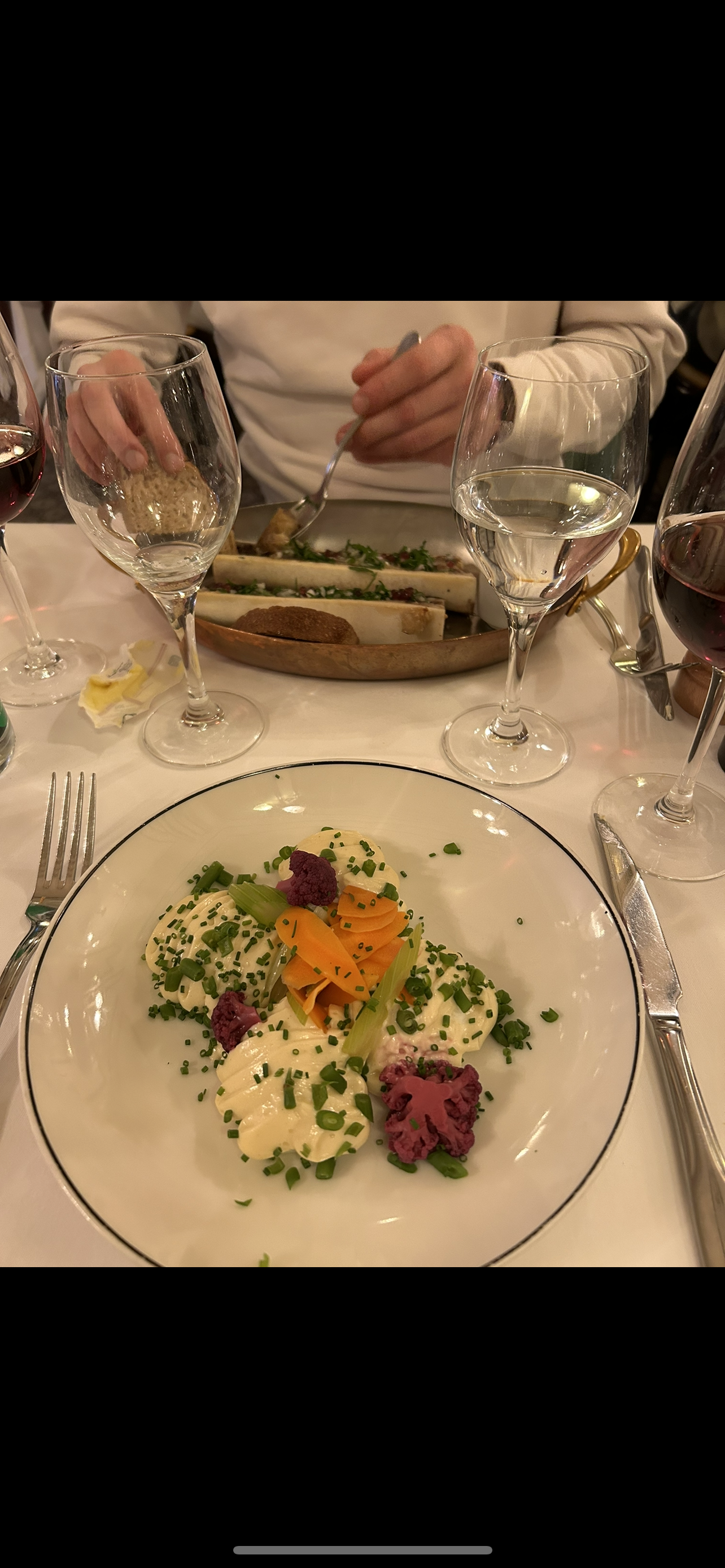 Notre expérience ici était tout sauf bonne. J'ai trouvé des cheveux dans l'entrée de la burrata, le foie gras maison était horrible et j'ai dû renvoyer mon faux-filet car il nageait littéralement dans le sang dans l'assiette. Le personnel faisait de son mieux pour nous éviter, semblait-il, plus attentif aux habitants et extrêmement désagréable. Nous avons attendu plus de 40 minutes pour les plats après nos entrées. Toute l'expérience a été terrible et a gâché notre dernière nuit à Paris. Je ne recommanderais ni ne reviendrais jamais !!!!